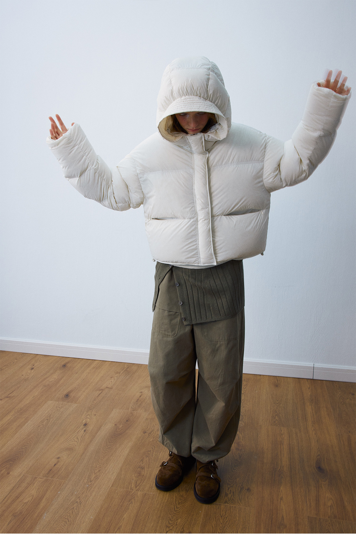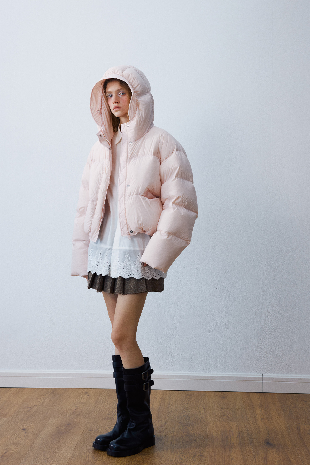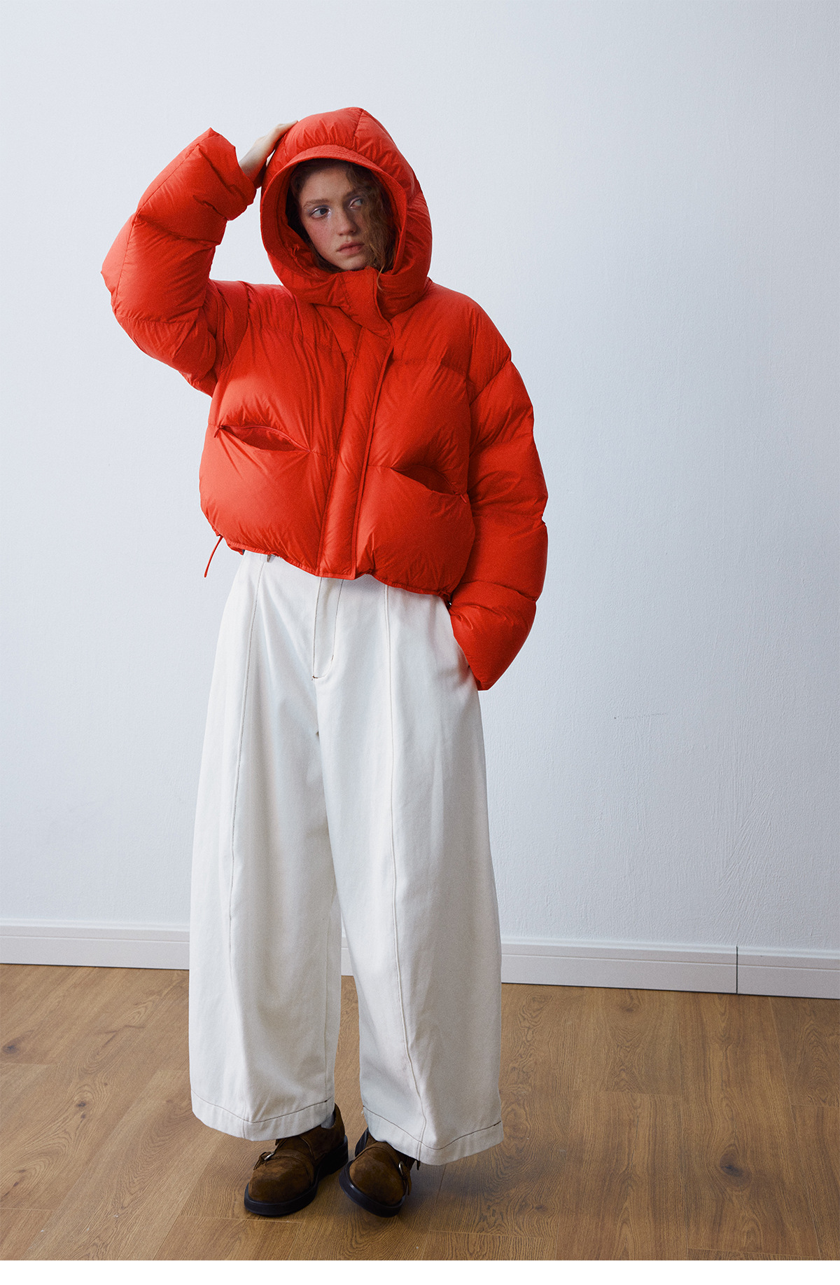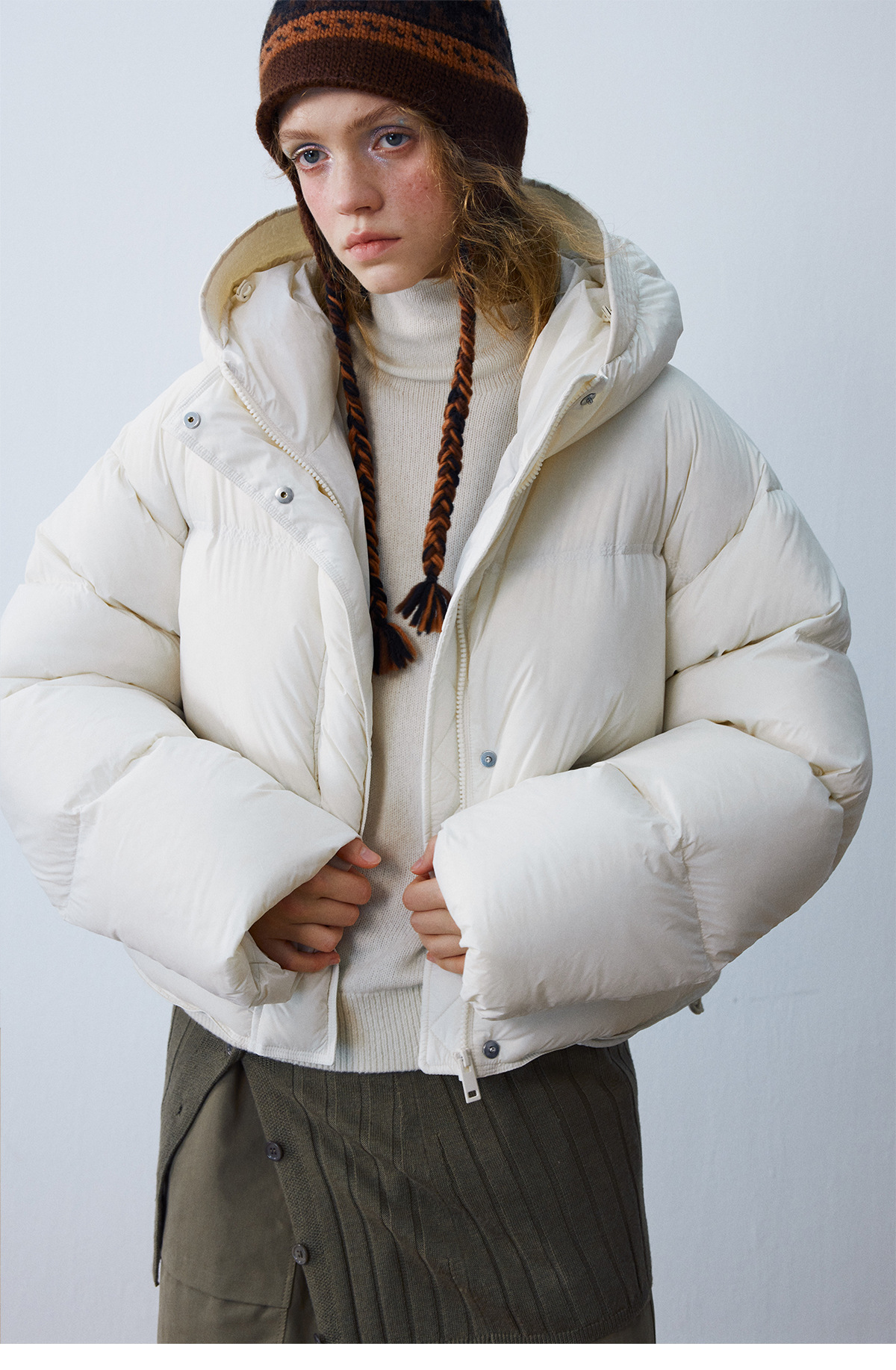 【玳禾】冬季新款休闲连帽花苞RDS可溯源90白鸭绒泡芙羽绒服H9357