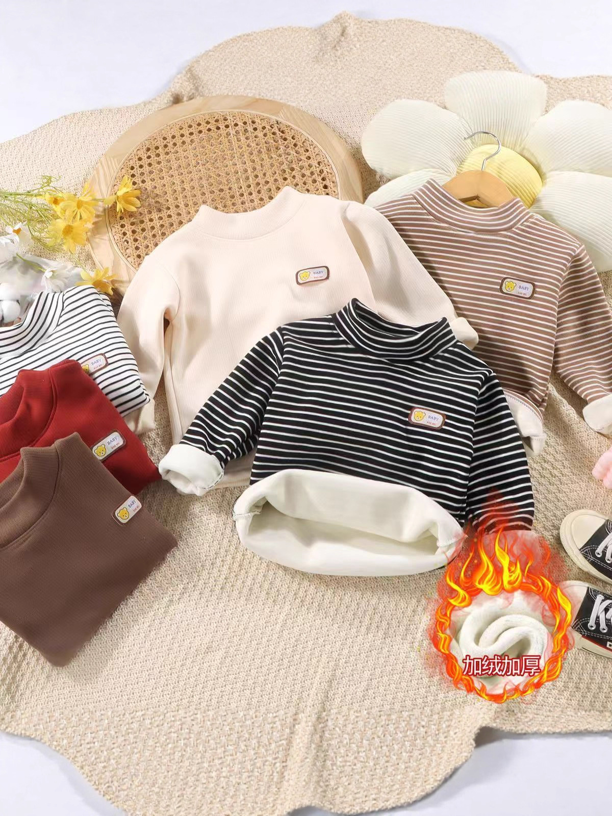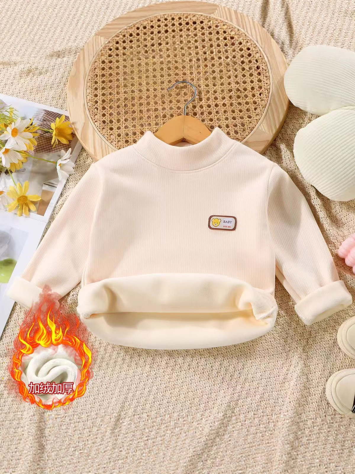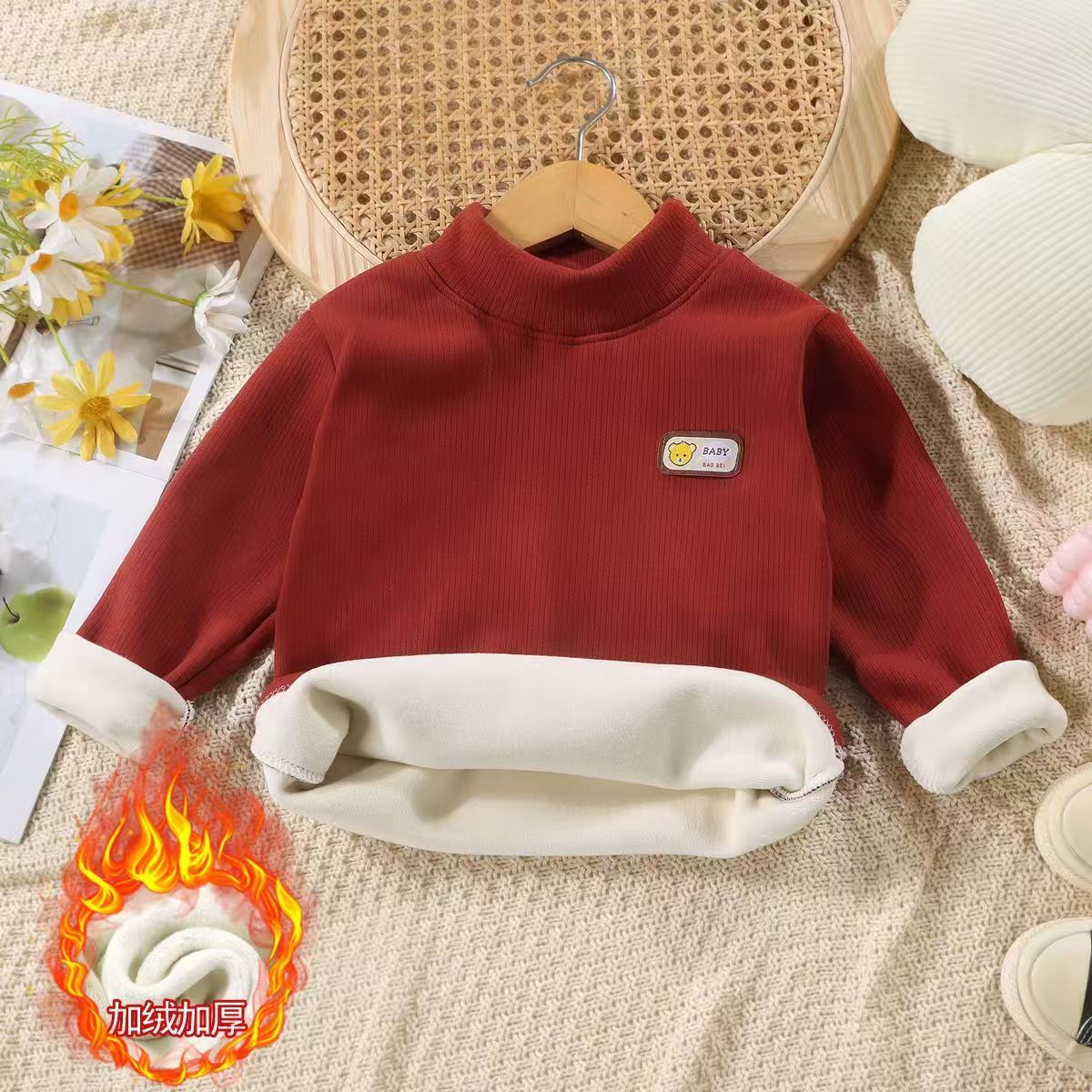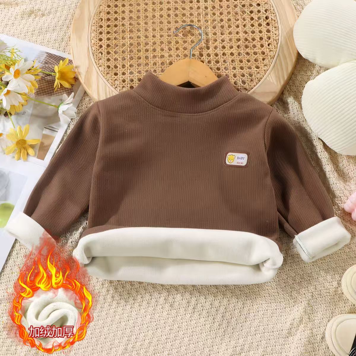 [Утолщенный теплый бархат Mus] 500 г детская рубашка с полугольфом для мальчиков и девочек, универсальный бархатный термотоп