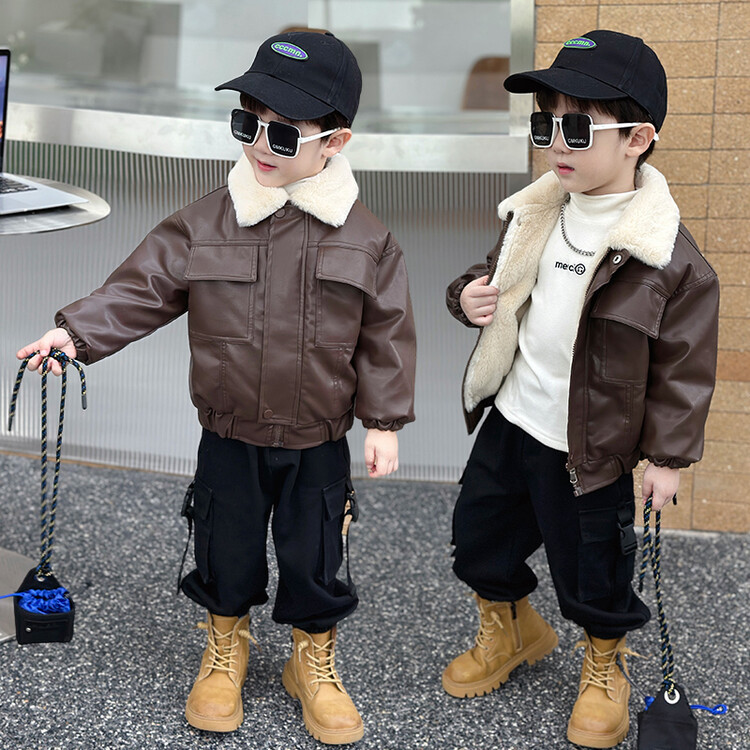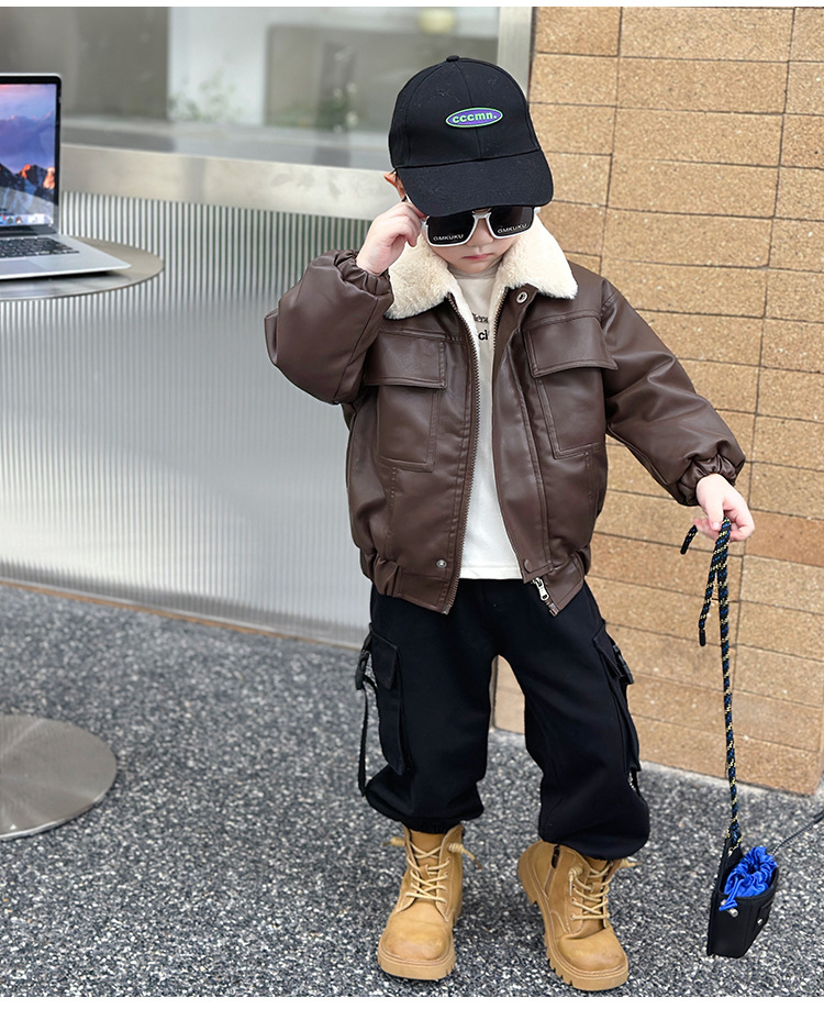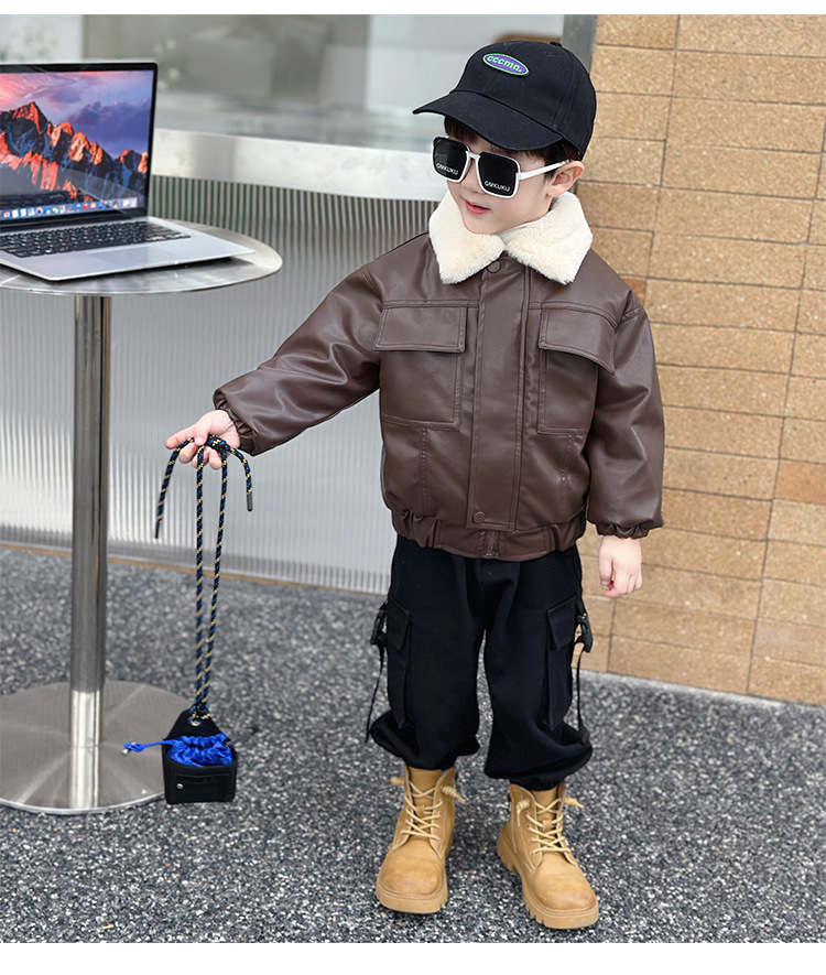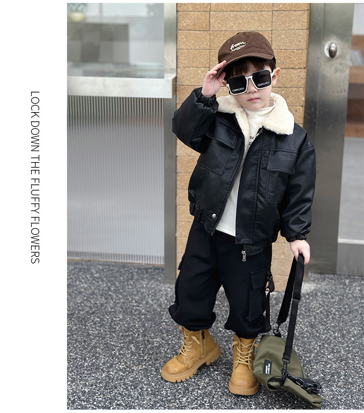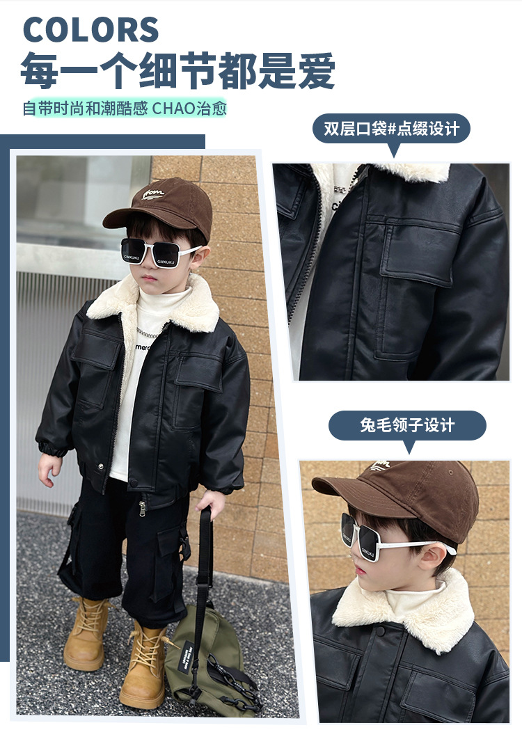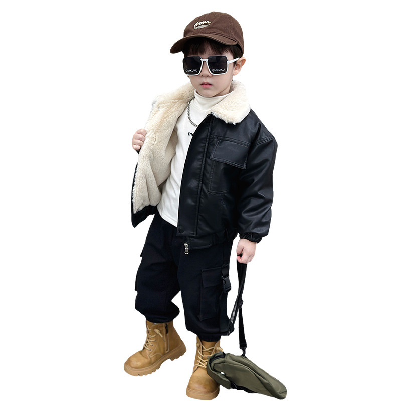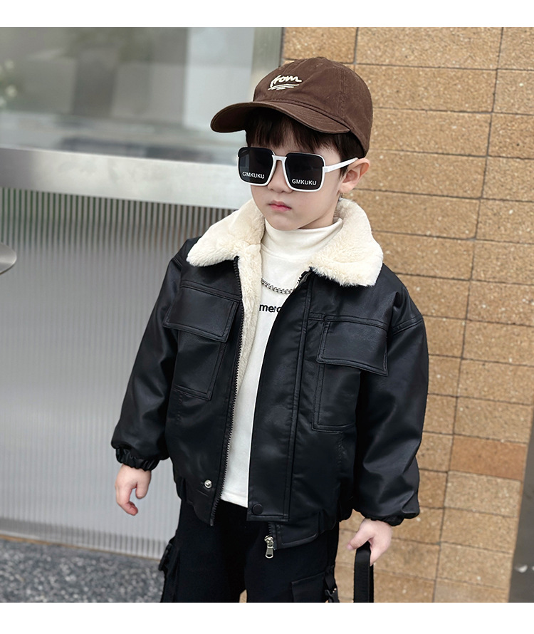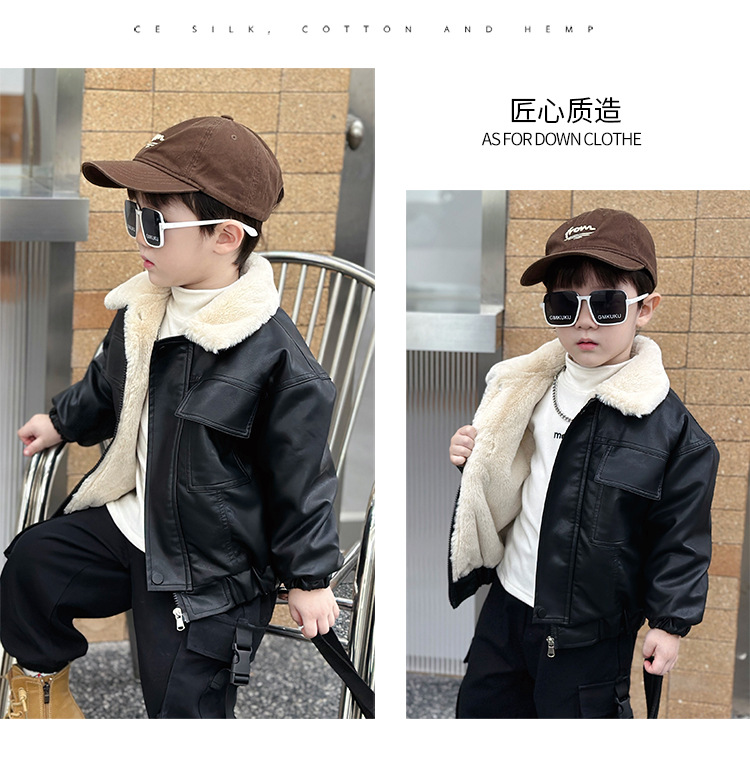 男童冬装夹克加厚皮衣冬季儿童加绒潮酷痞帅夹克中小童洋气外套