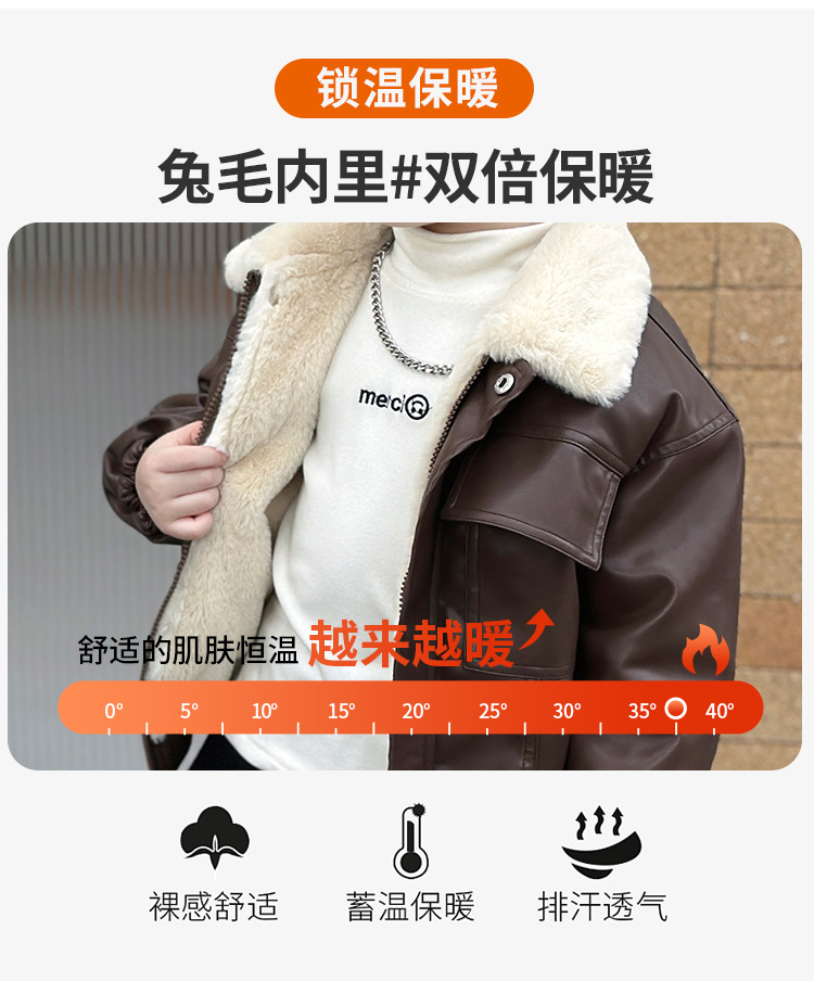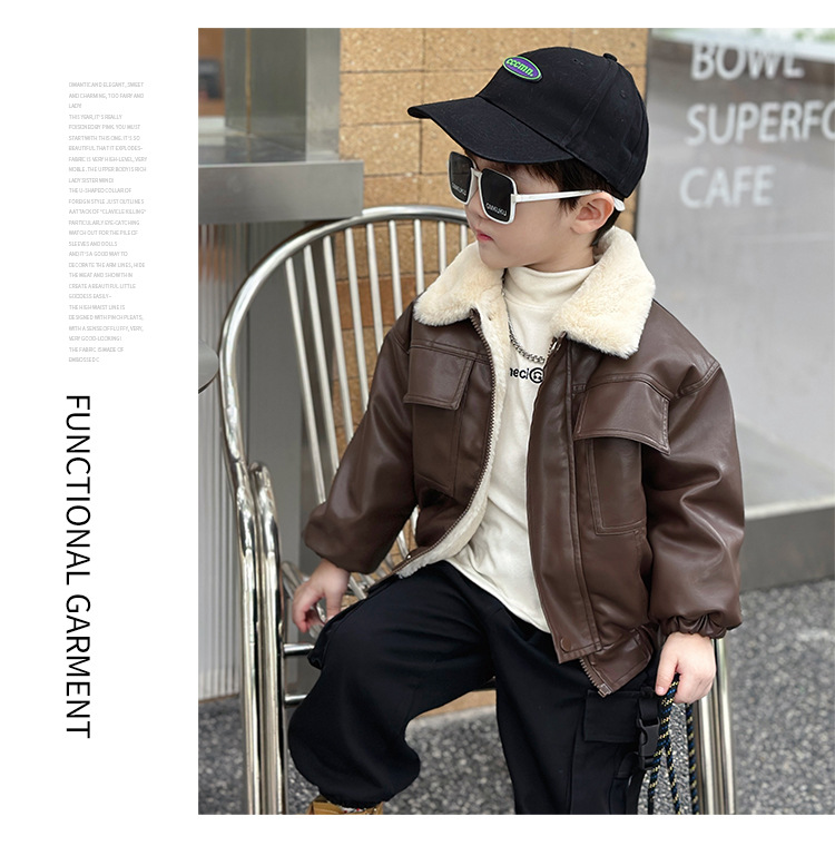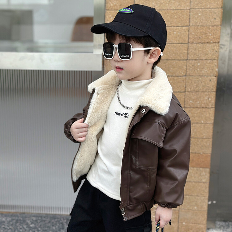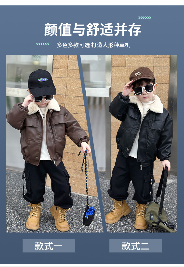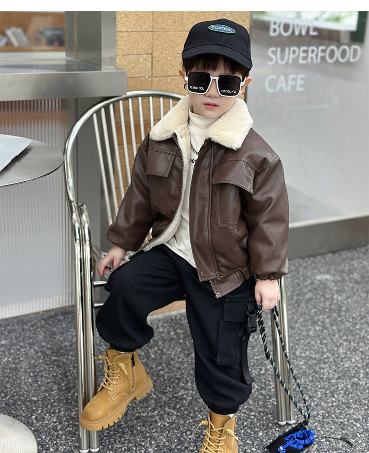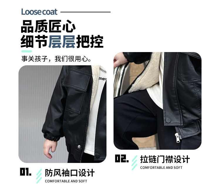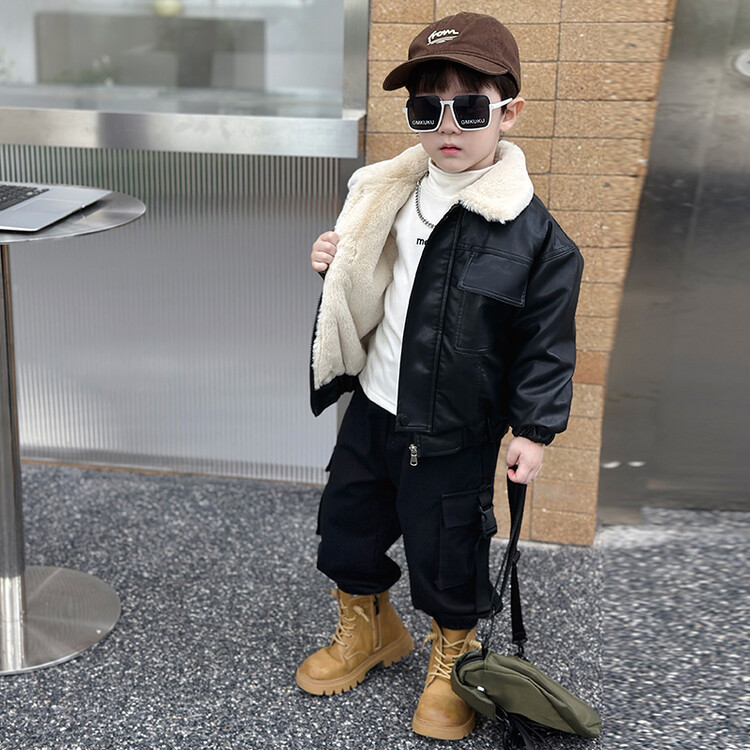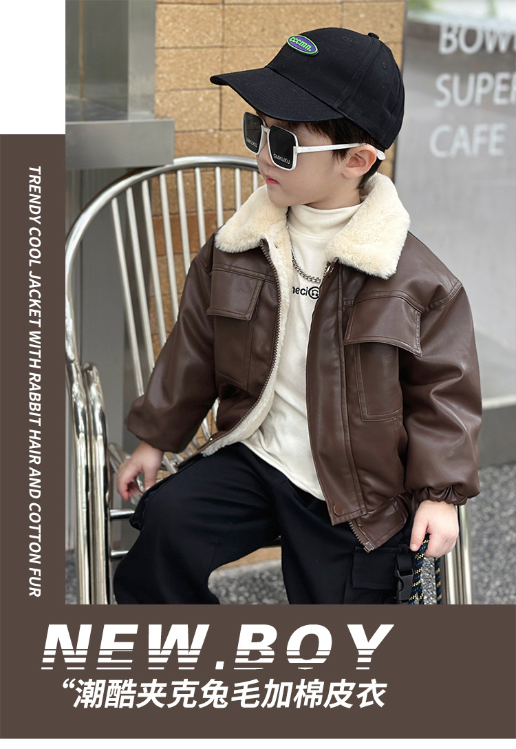 男童冬装夹克加厚皮衣冬季儿童加绒潮酷痞帅夹克中小童洋气外套