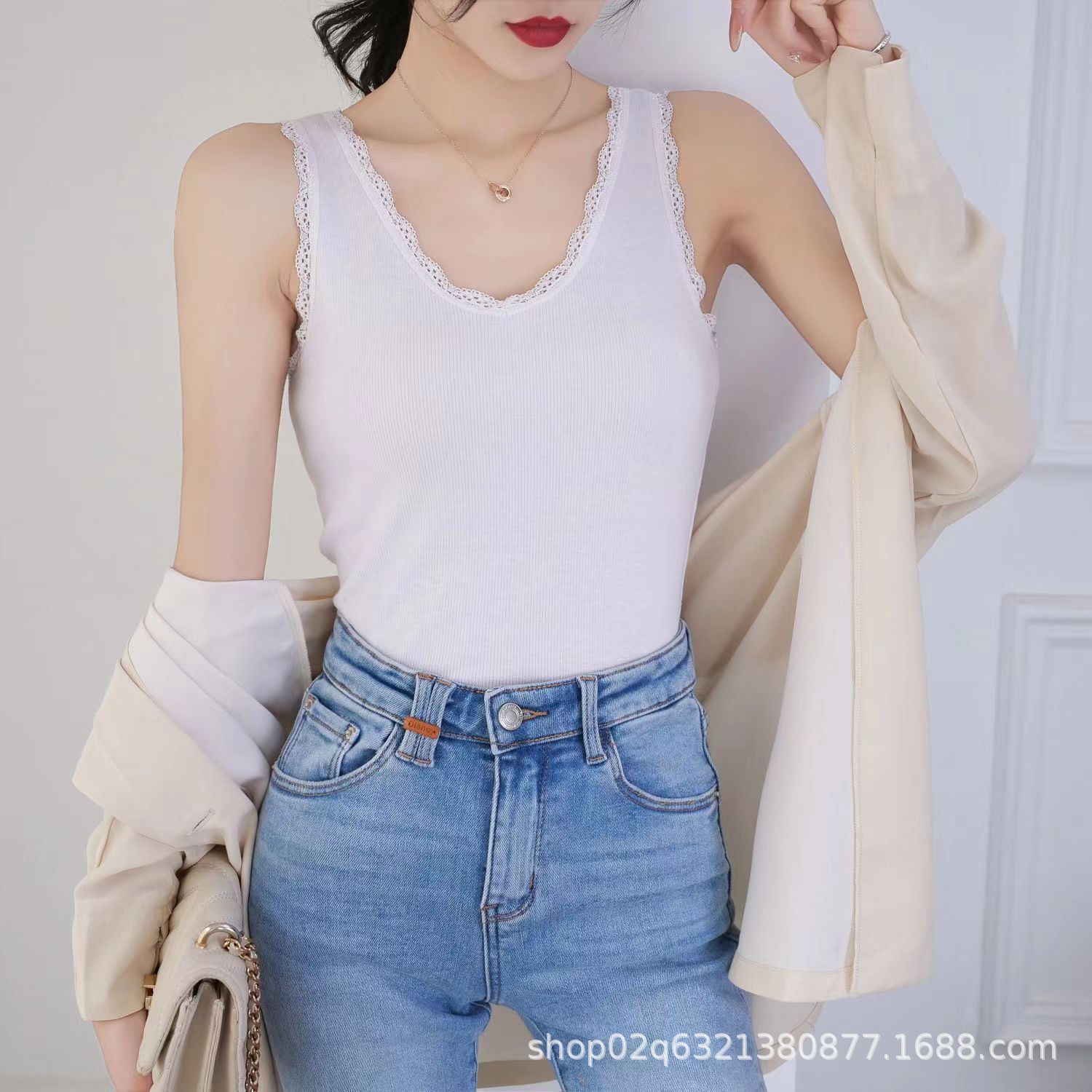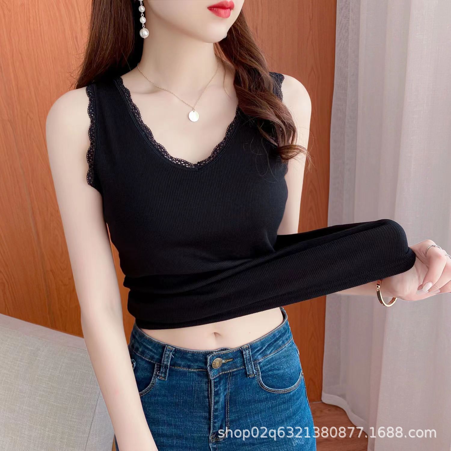 444 белый [высококачественный кружевной жилет]; 444 черный [высококачественный кружевной жилет]