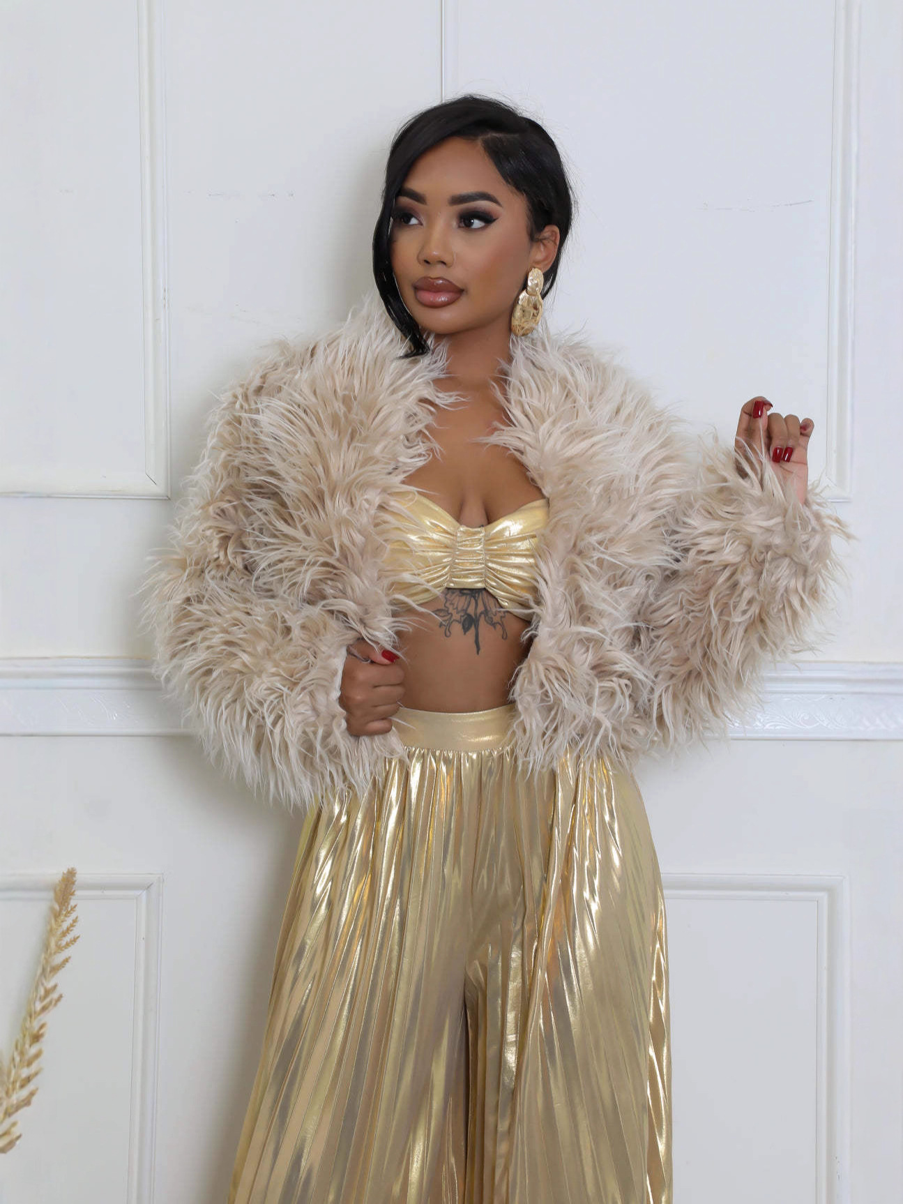 Женская новая укороченная куртка M81016, свободный кардиган из искусственного меха, короткая плюшевая куртка