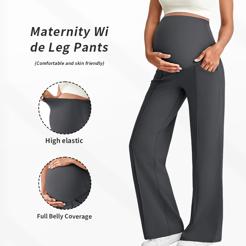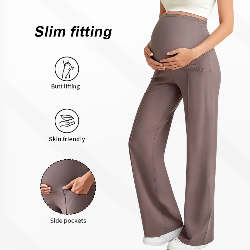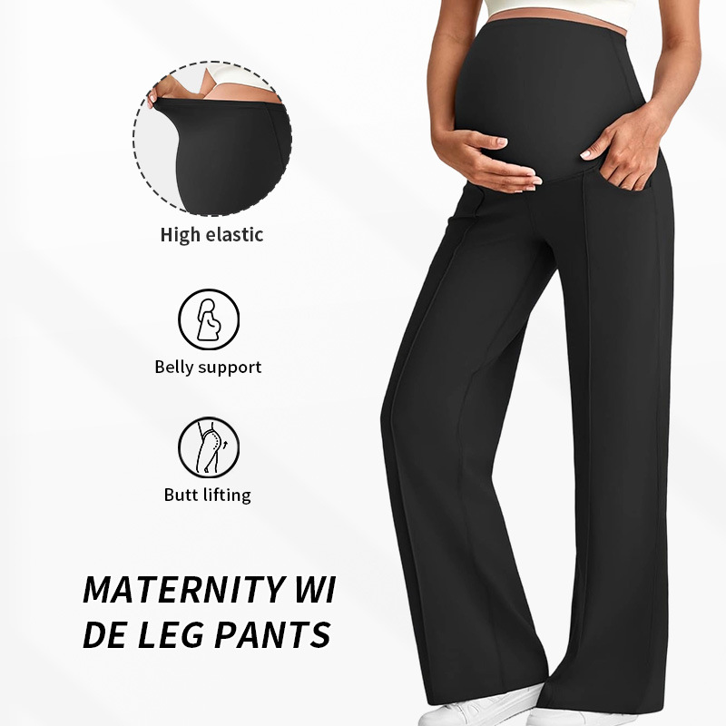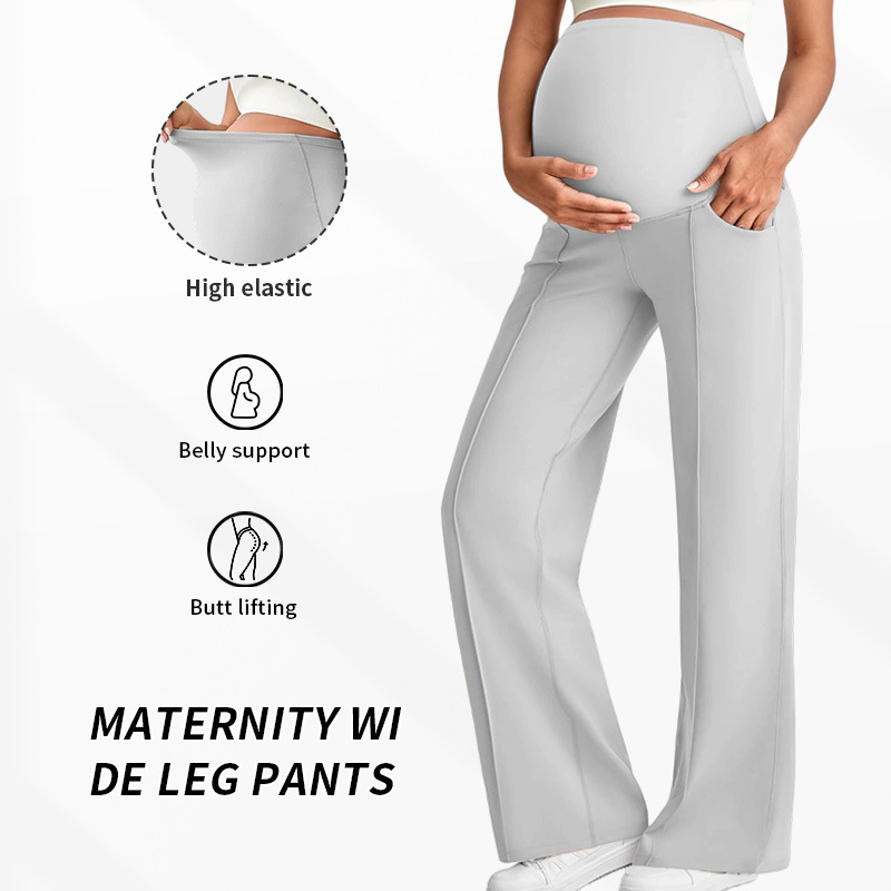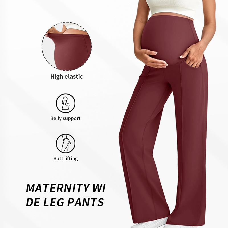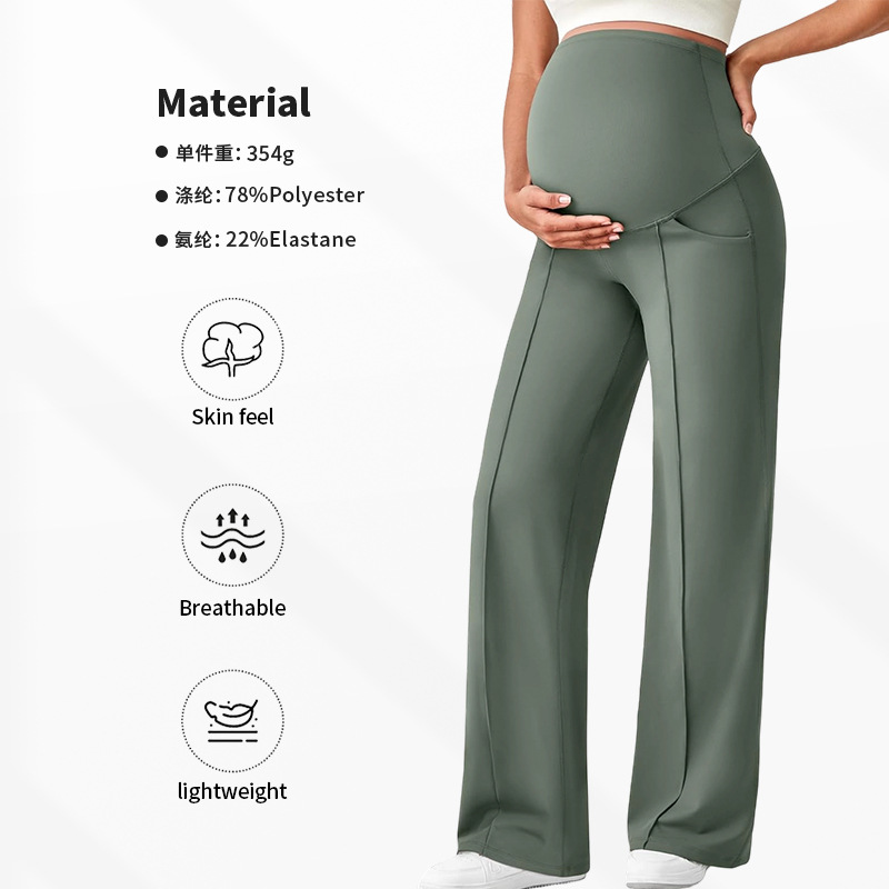 Европейские и американские брюки для беременных на осень и зиму, длинные, поддерживающие живот, не обтягивающие, с широкими штанинами, с высокой талией, высокоэластичные, дышащие, прямые брюки для беременных.