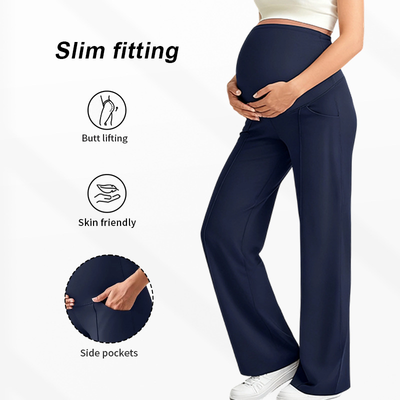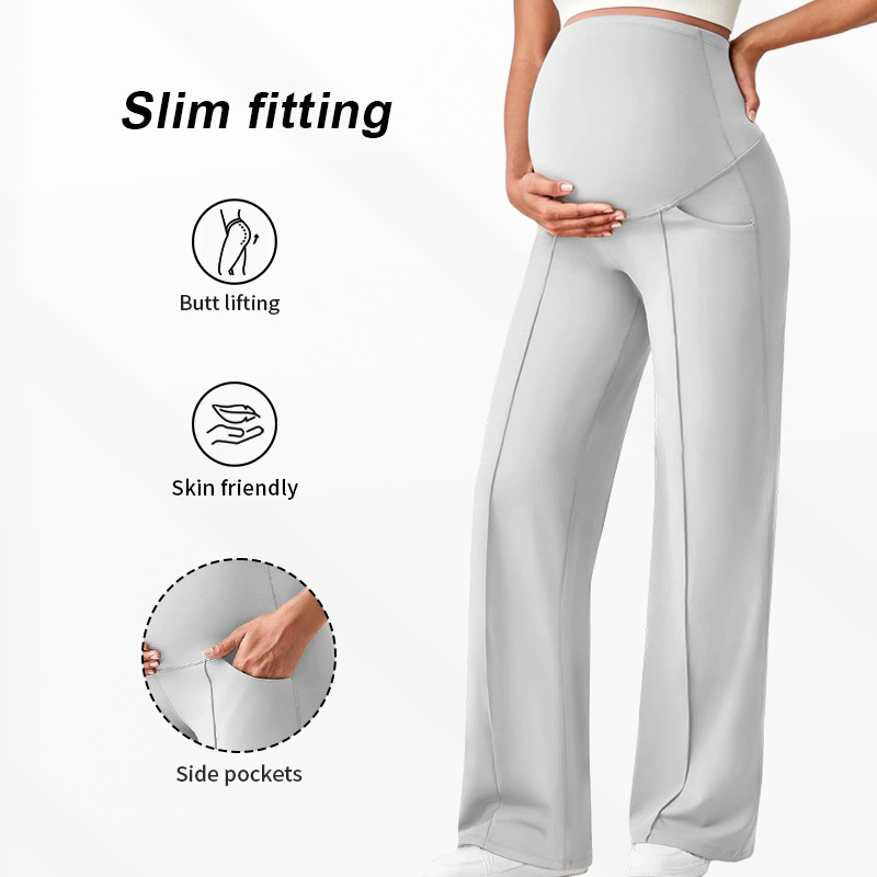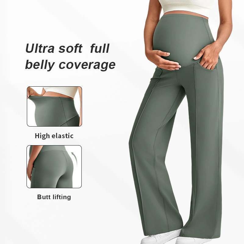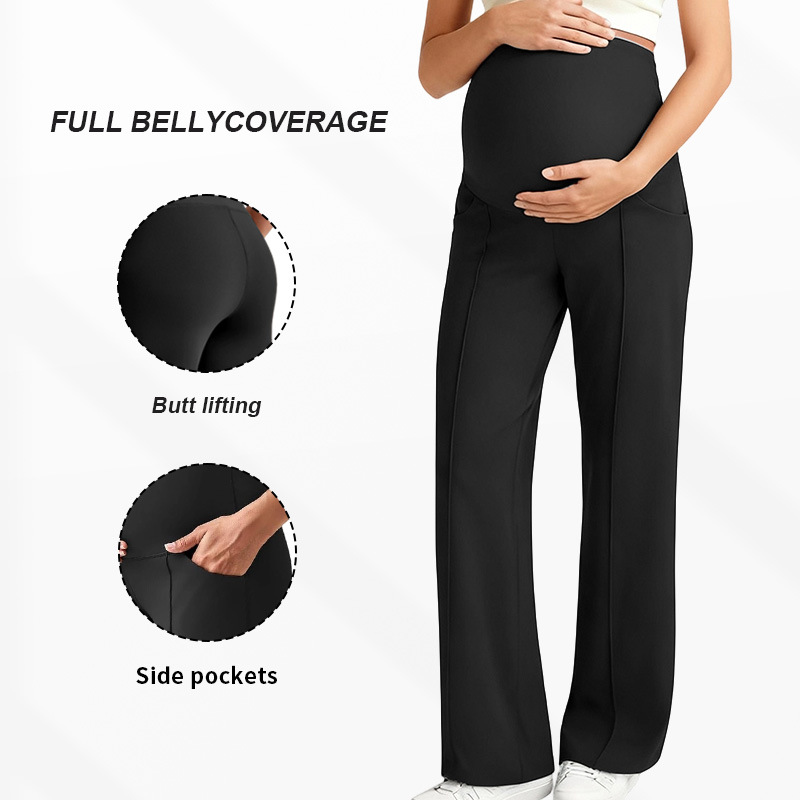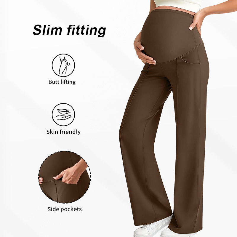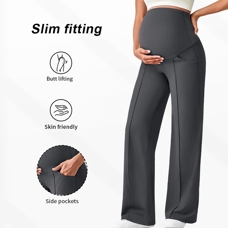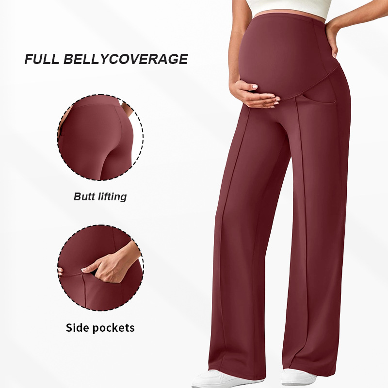 Европейские и американские брюки для беременных на осень и зиму, длинные, поддерживающие живот, не обтягивающие, с широкими штанинами, с высокой талией, высокоэластичные, дышащие, прямые брюки для беременных.