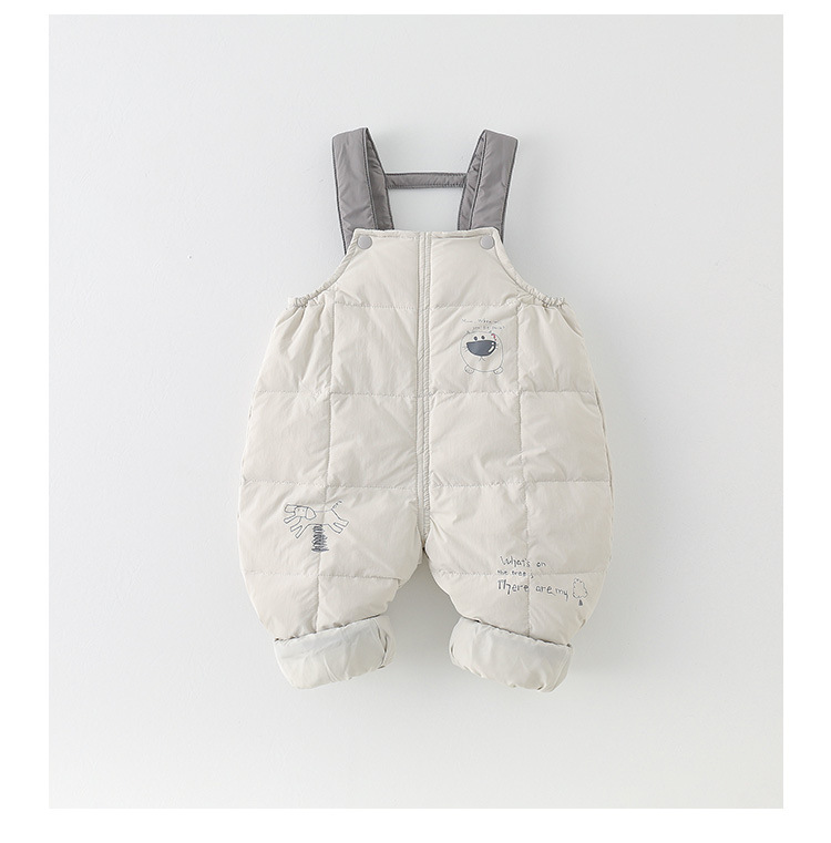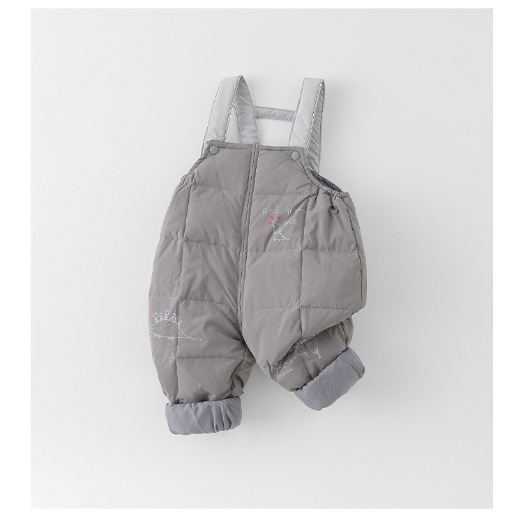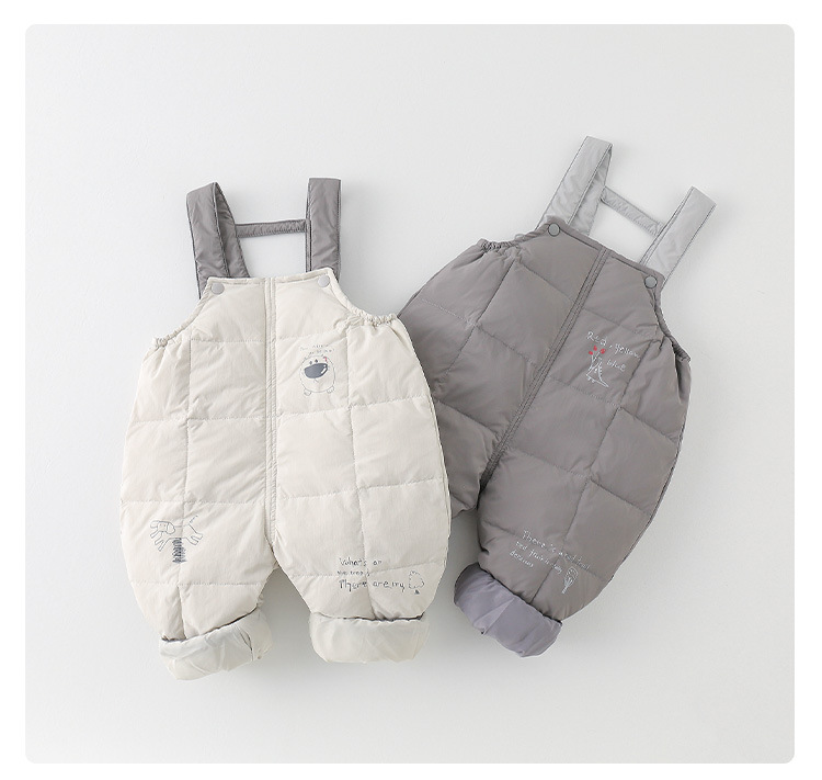 Детские пуховые штаны для мальчиков, зима 2026, новая модель, теплые комбинезоны с мультяшным принтом, утолщенные штаны на подтяжках, класс А