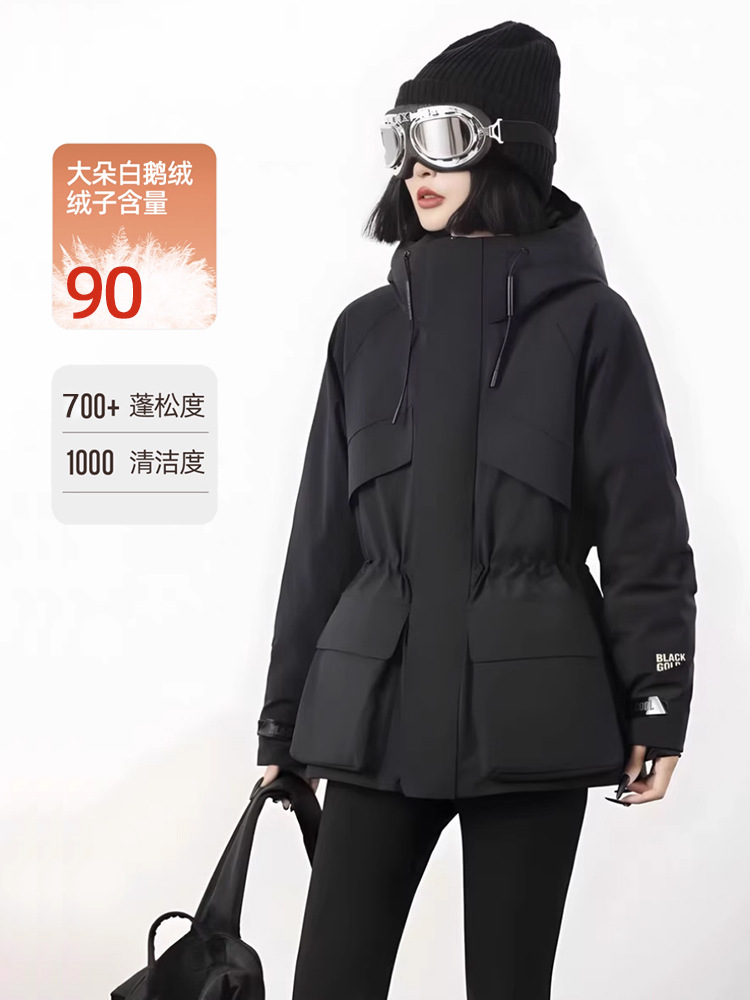 杨幂同款黑金鹅绒羽绒服女短款秋冬新款户外登山收腰羽绒服外套
