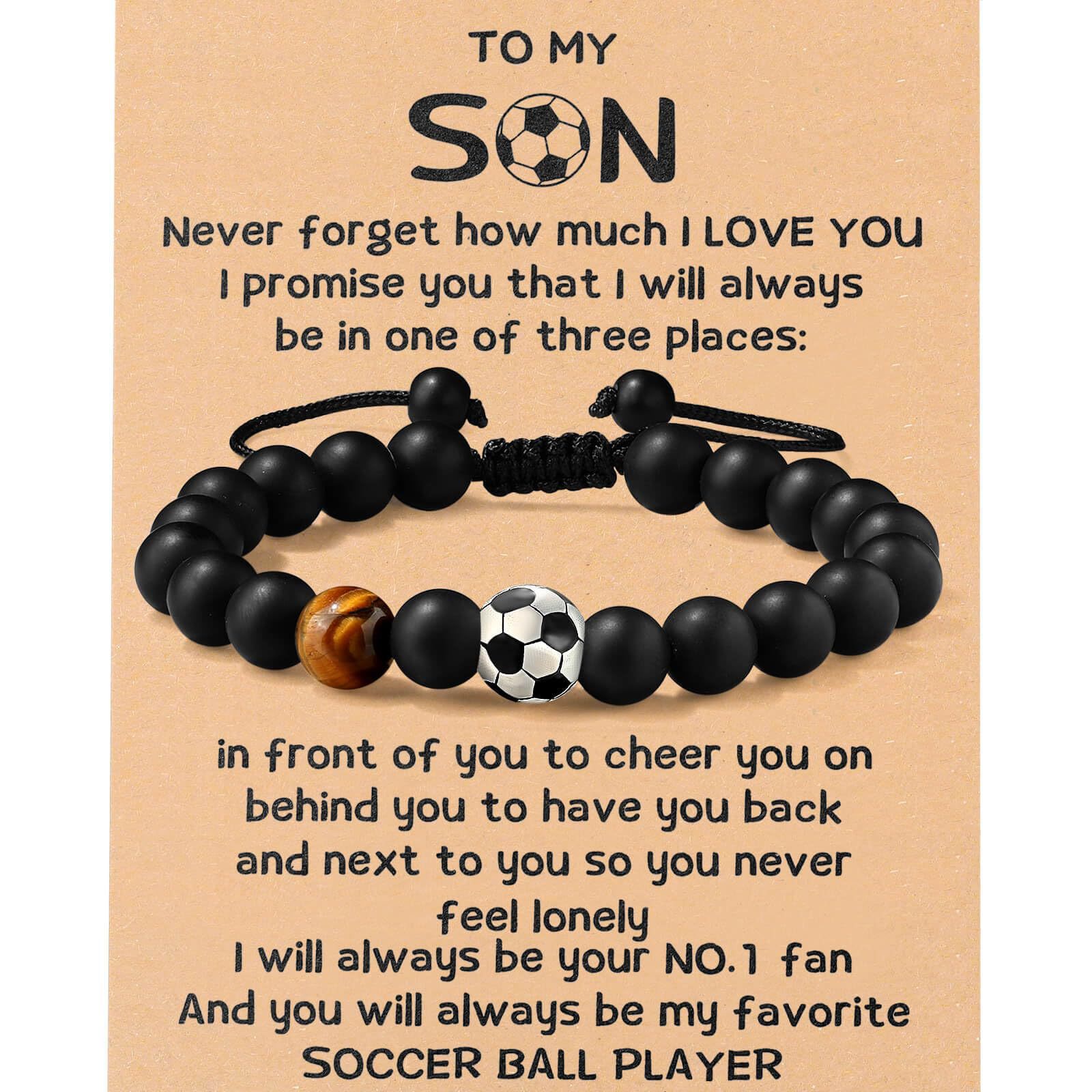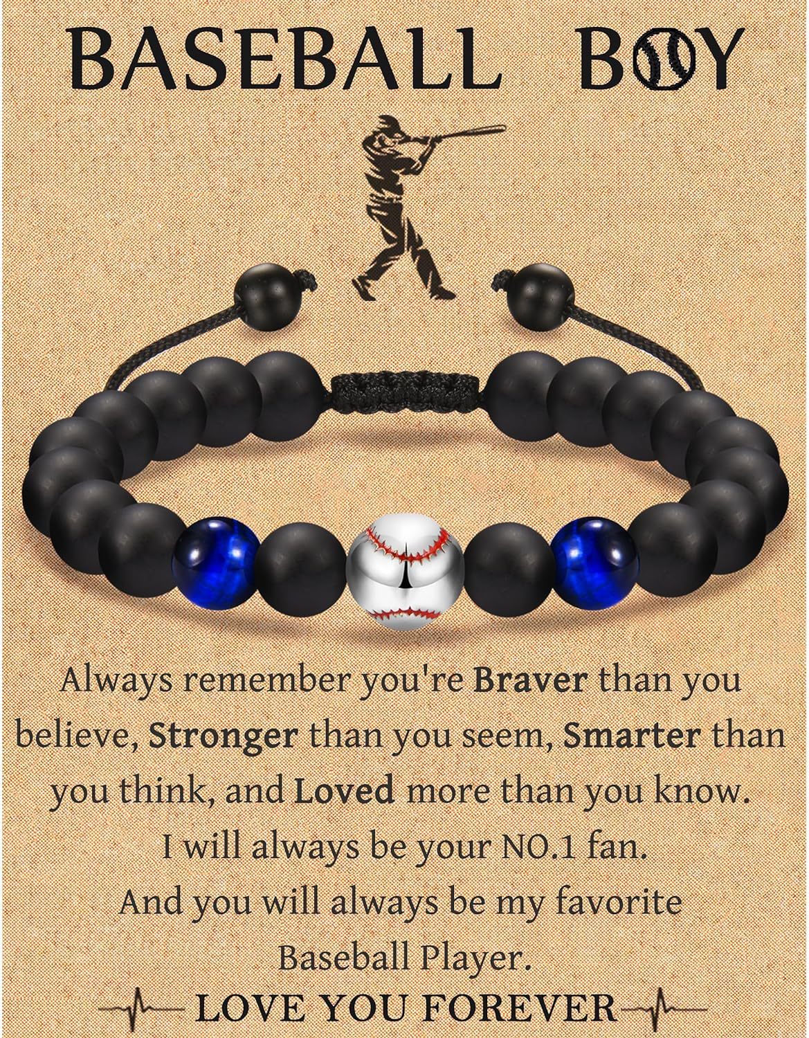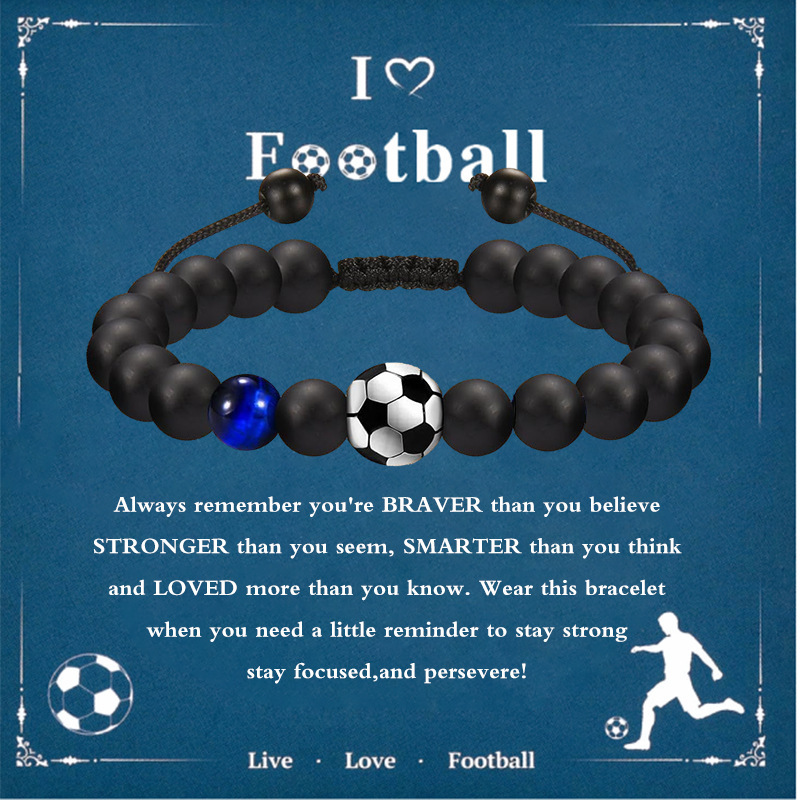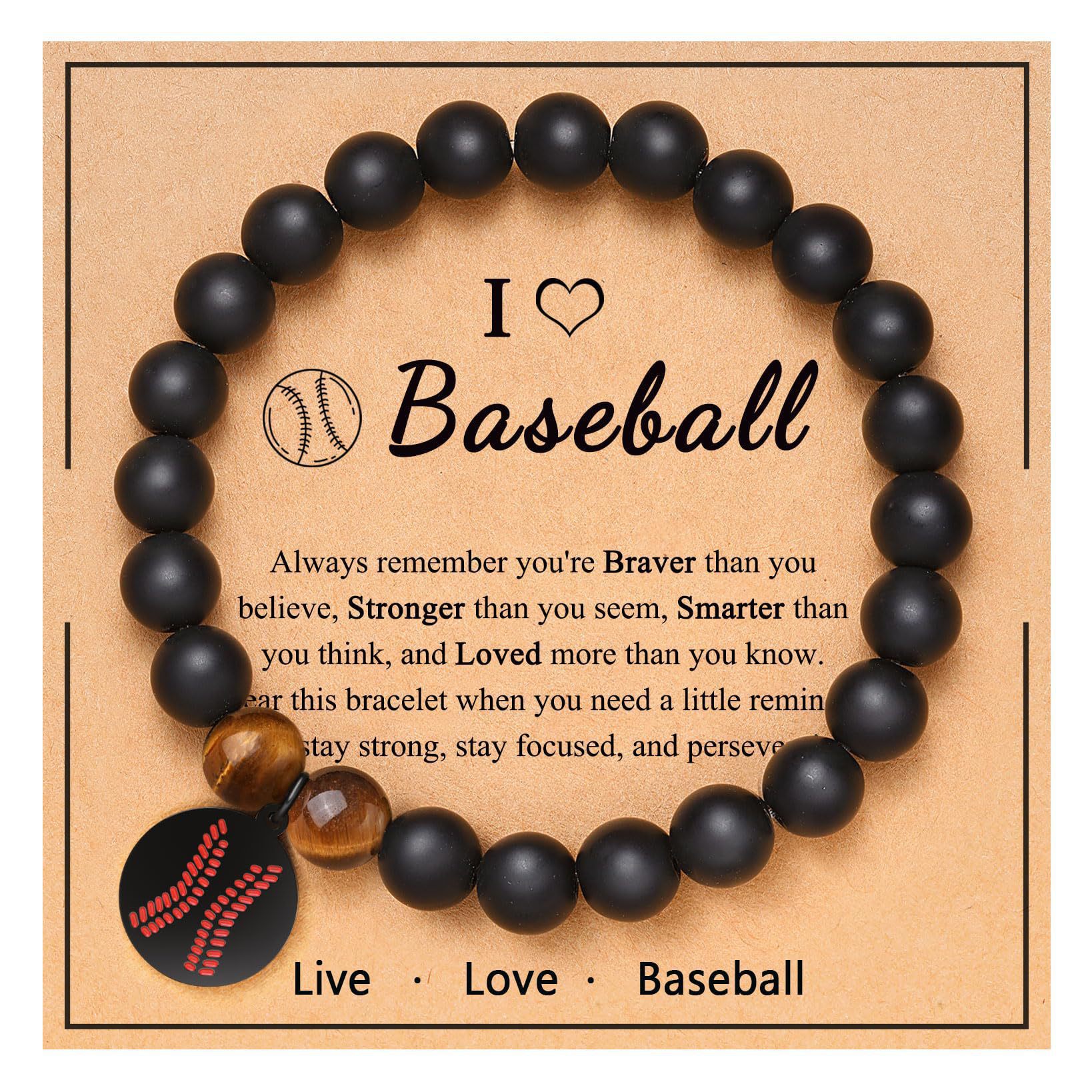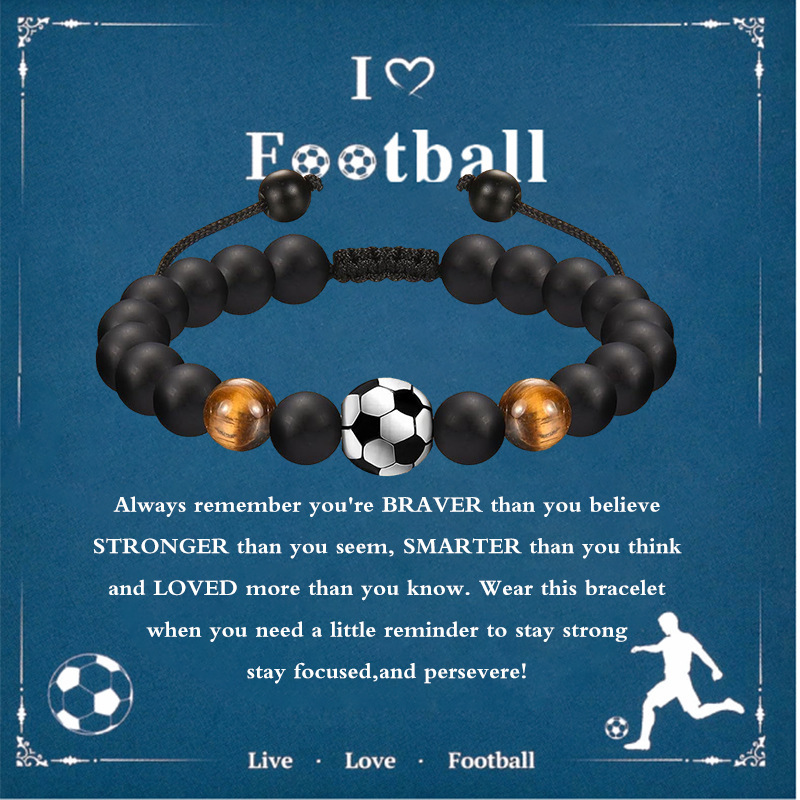 Футбольный браслет из бисера для моего сына, подарок, черный матовый футбольный баскетбольный браслет, браслет с тигровым глазом, бейсбольный браслет