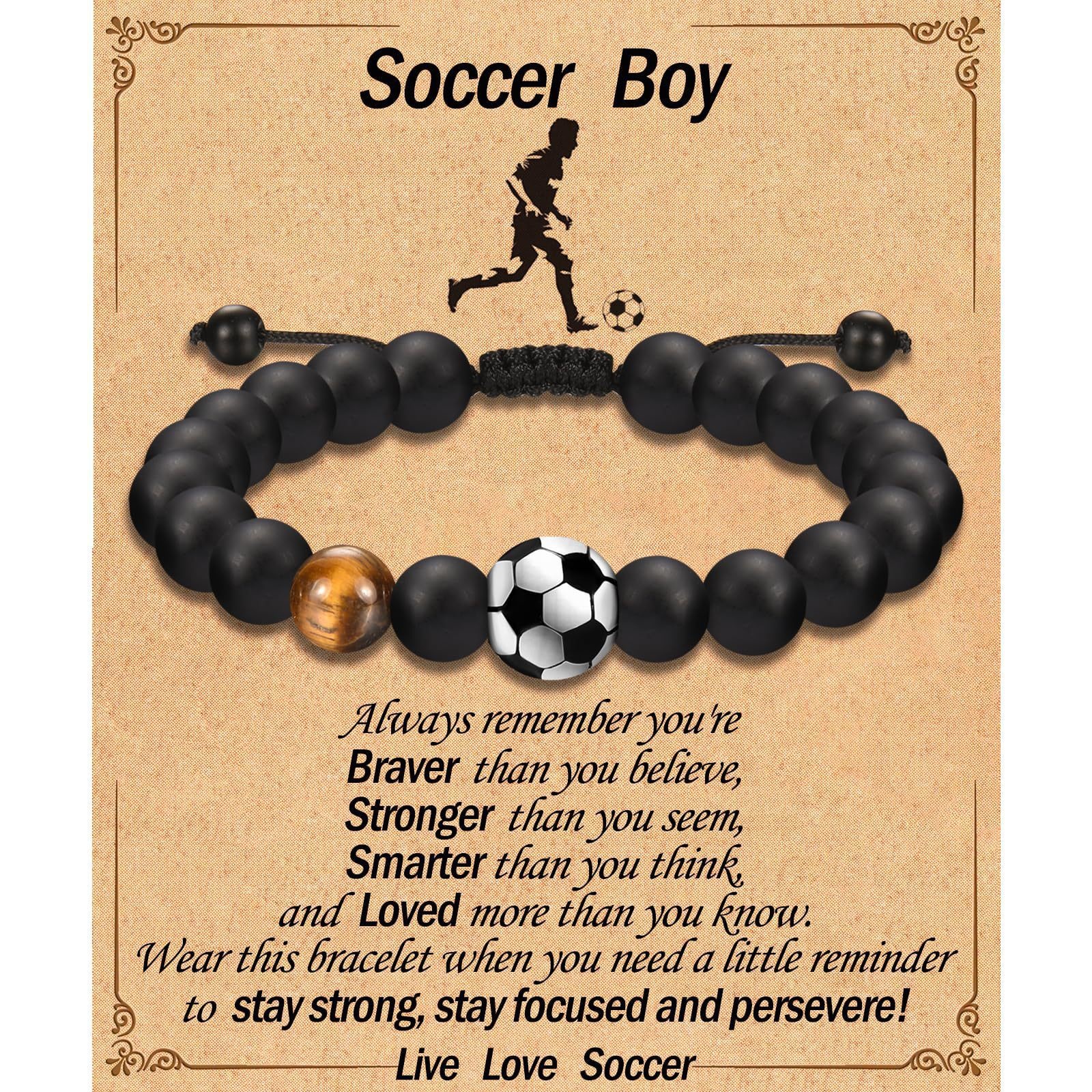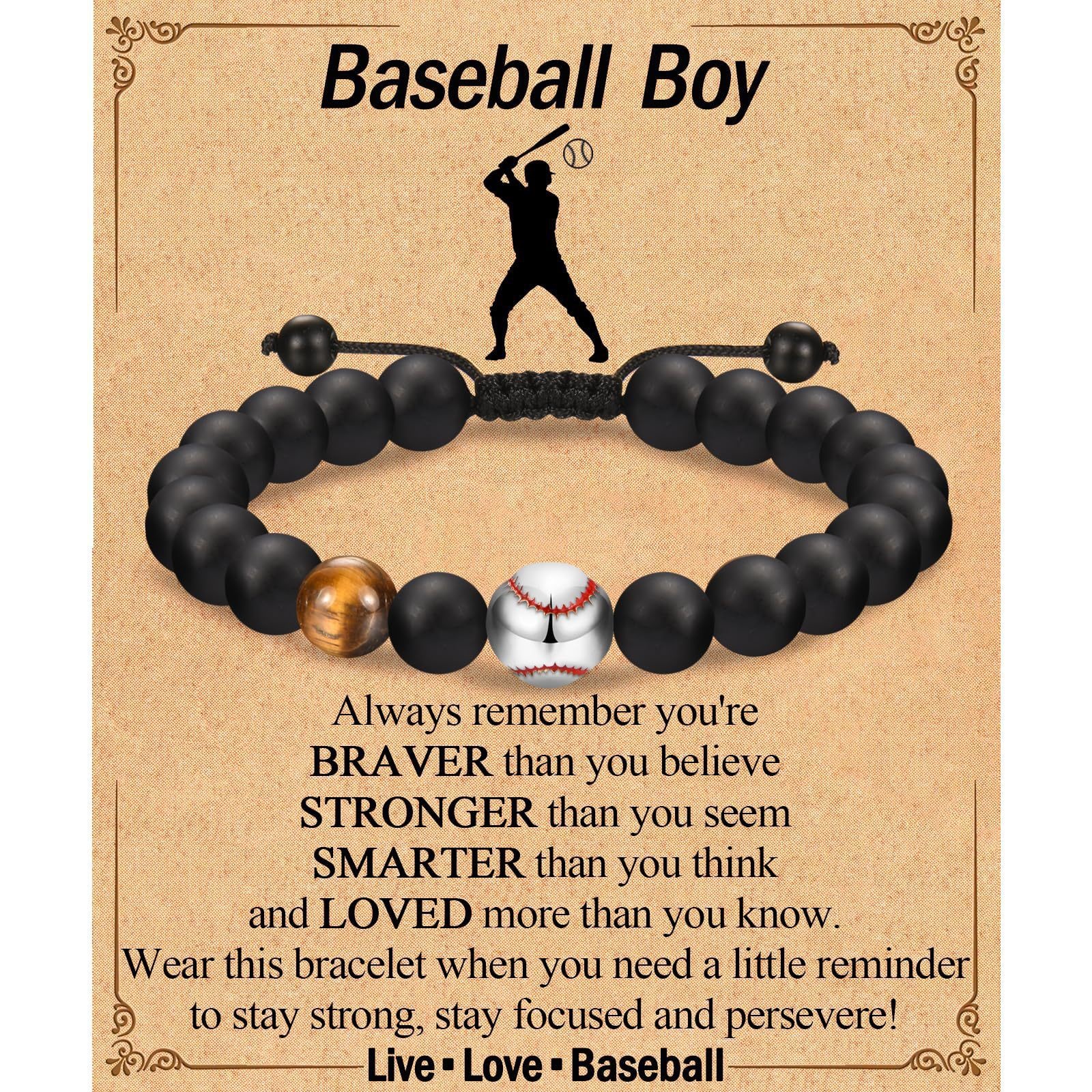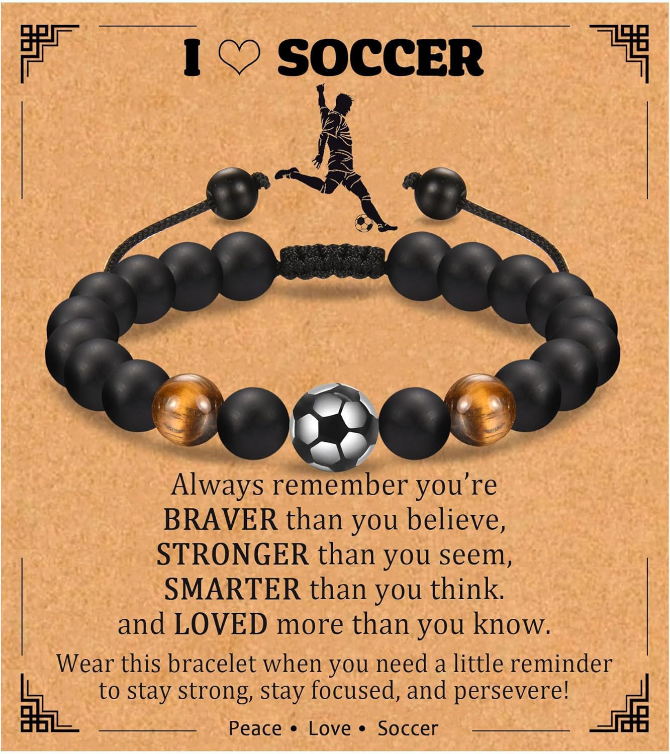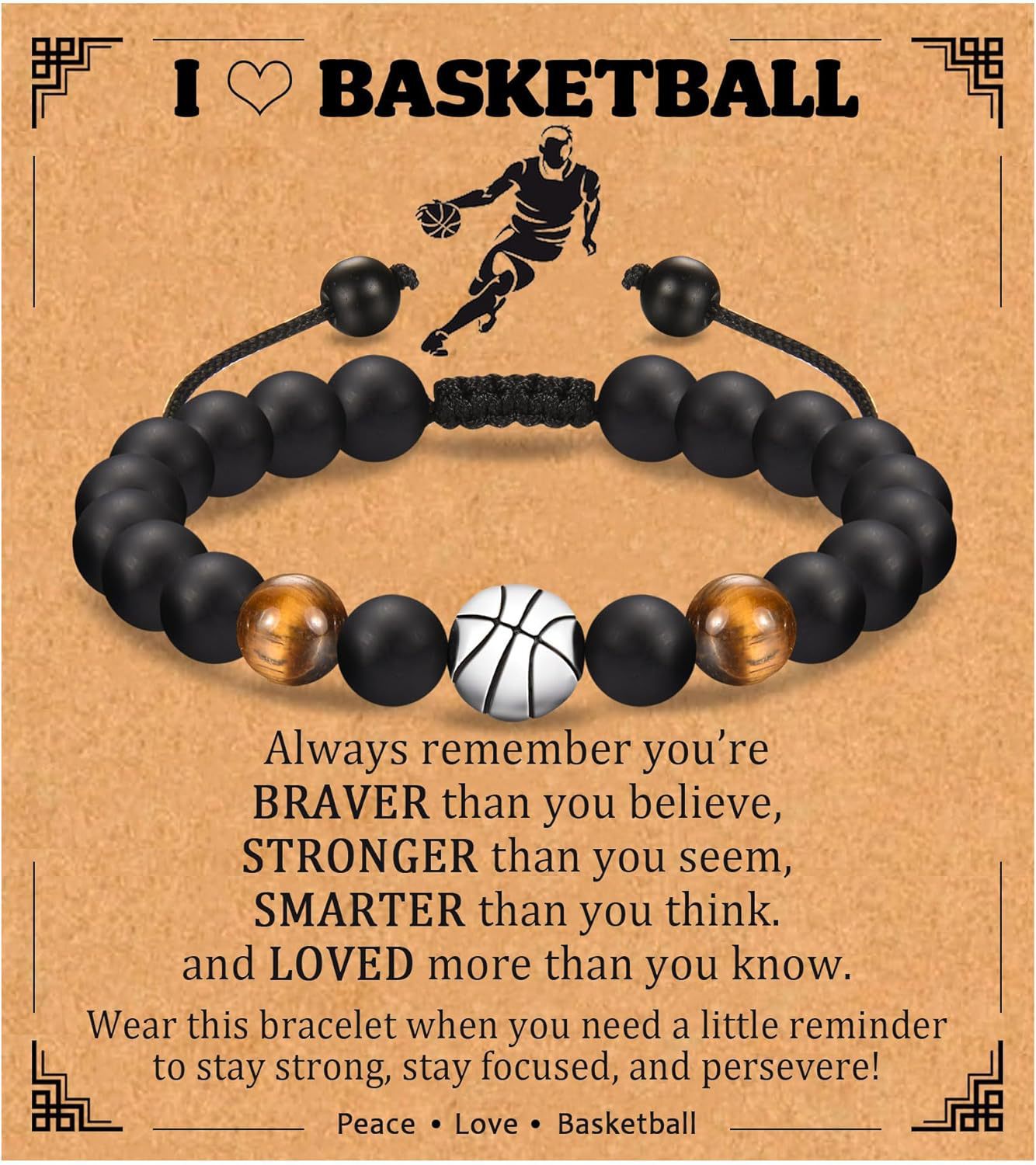 Футбольный браслет из бисера для моего сына, подарок, черный матовый футбольный баскетбольный браслет, браслет с тигровым глазом, бейсбольный браслет