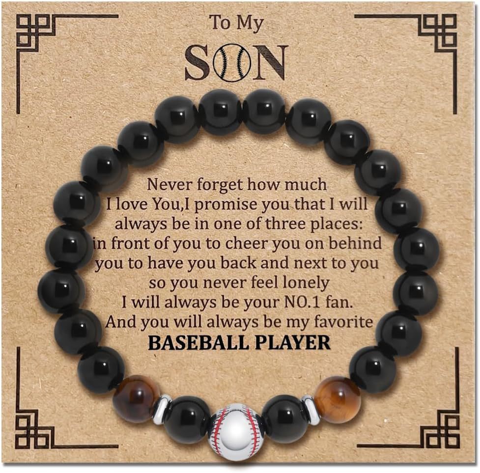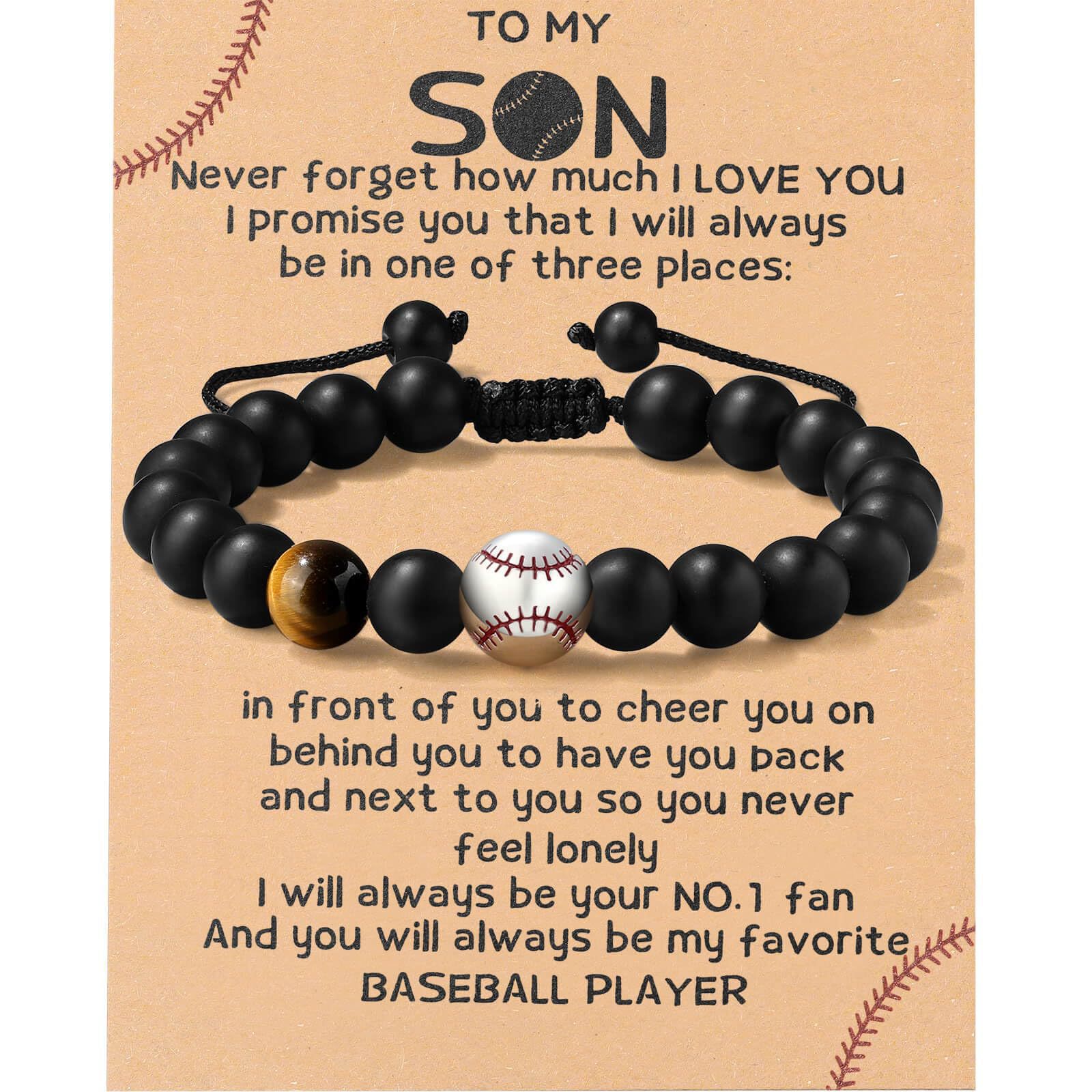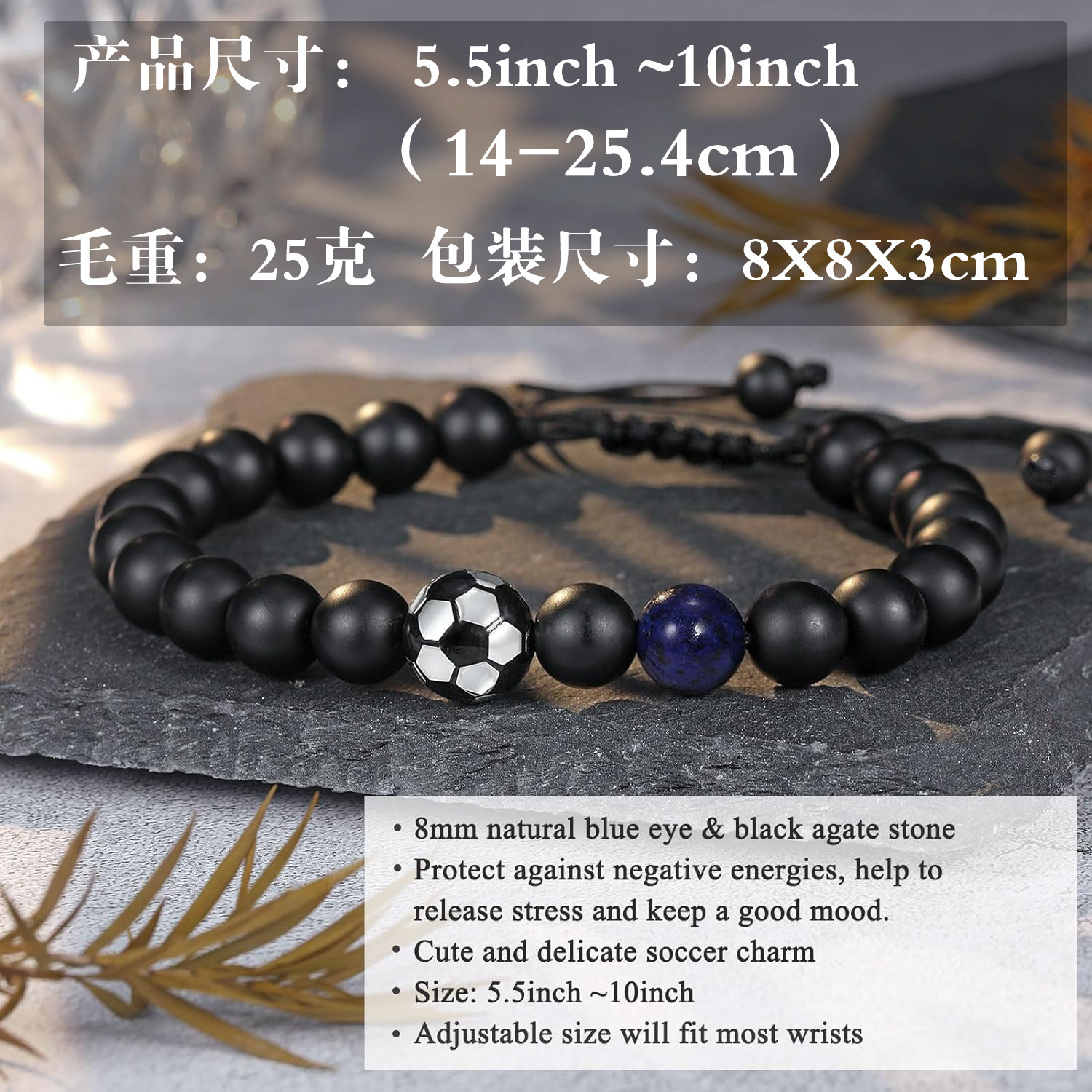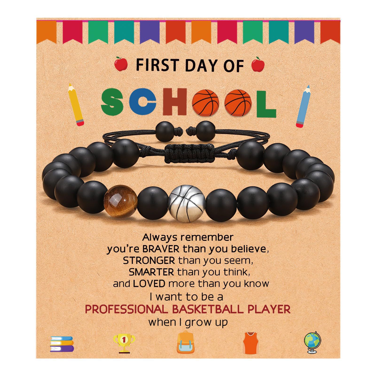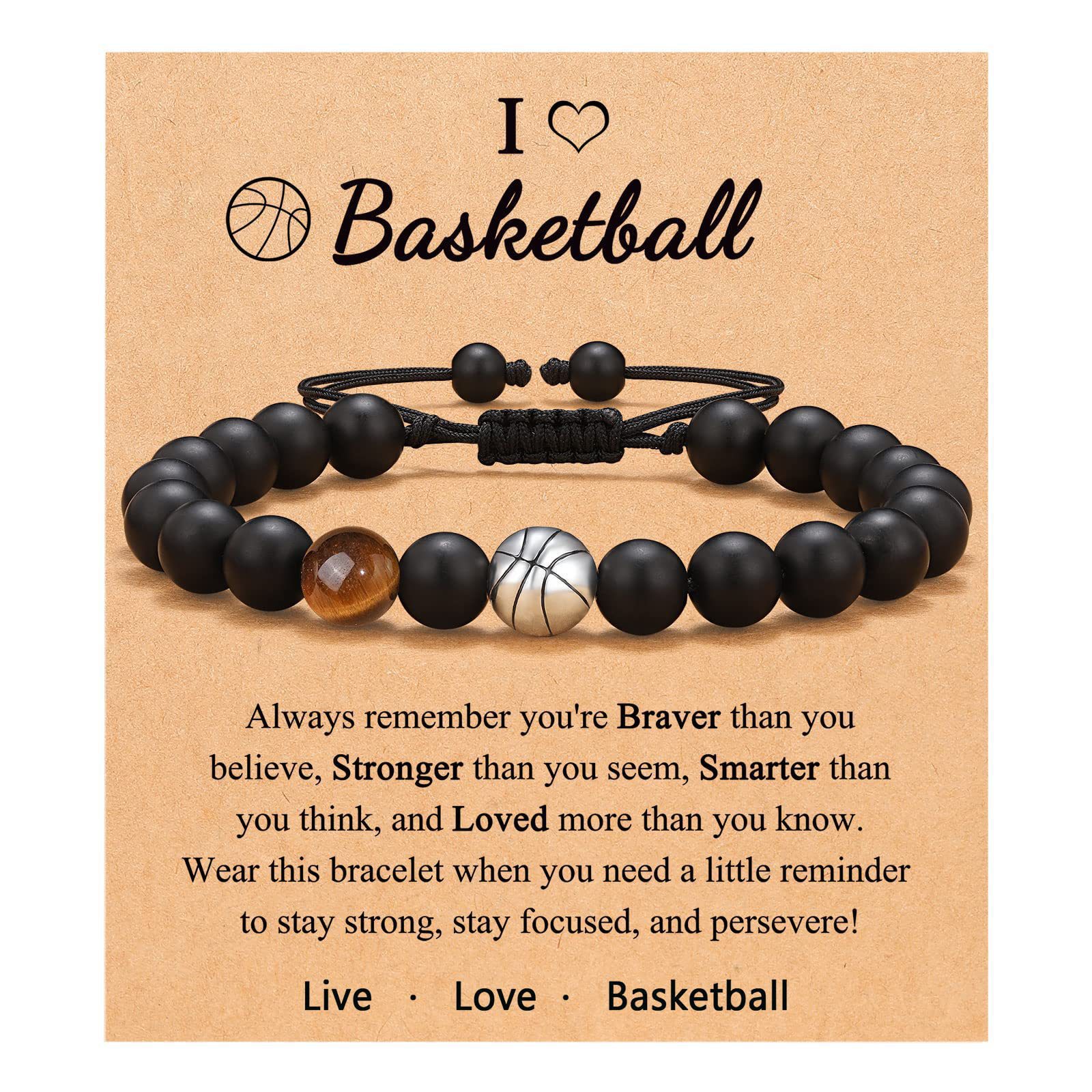 Футбольный браслет из бисера для моего сына, подарок, черный матовый футбольный баскетбольный браслет, браслет с тигровым глазом, бейсбольный браслет