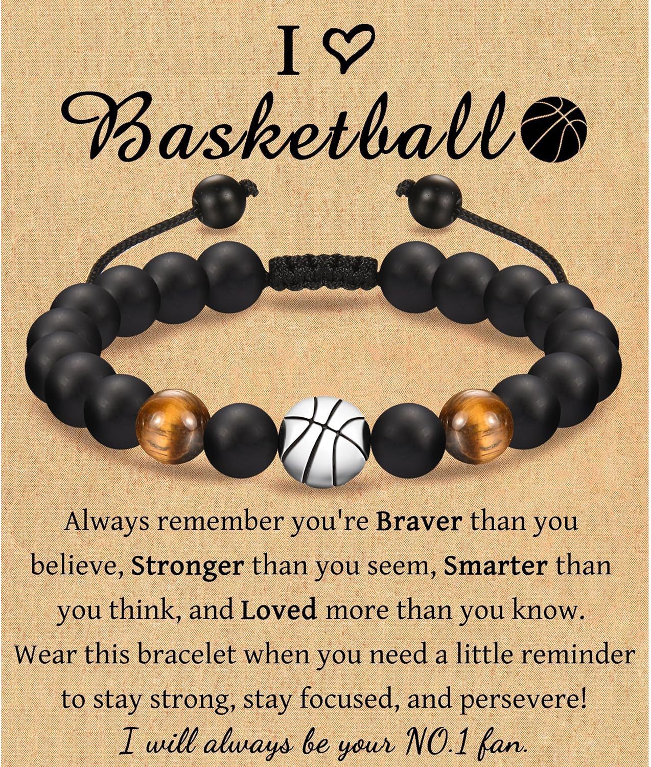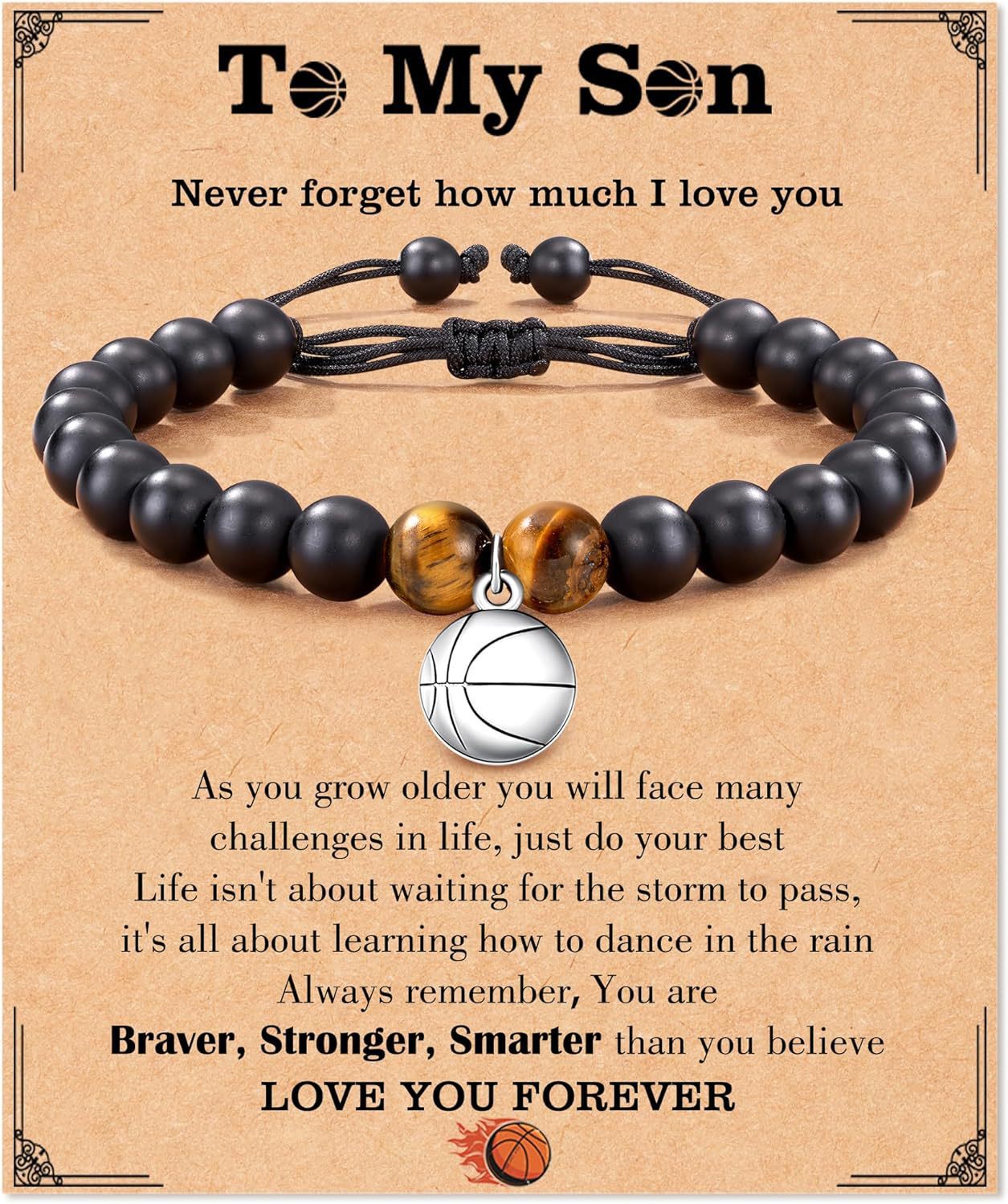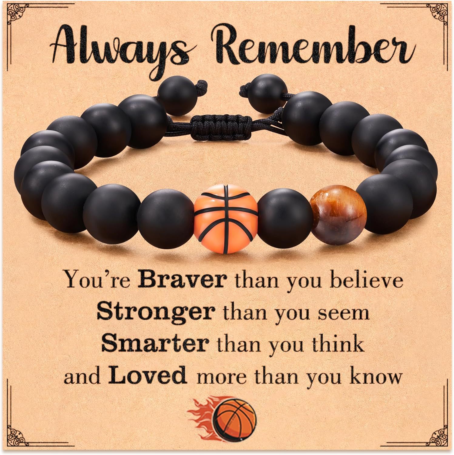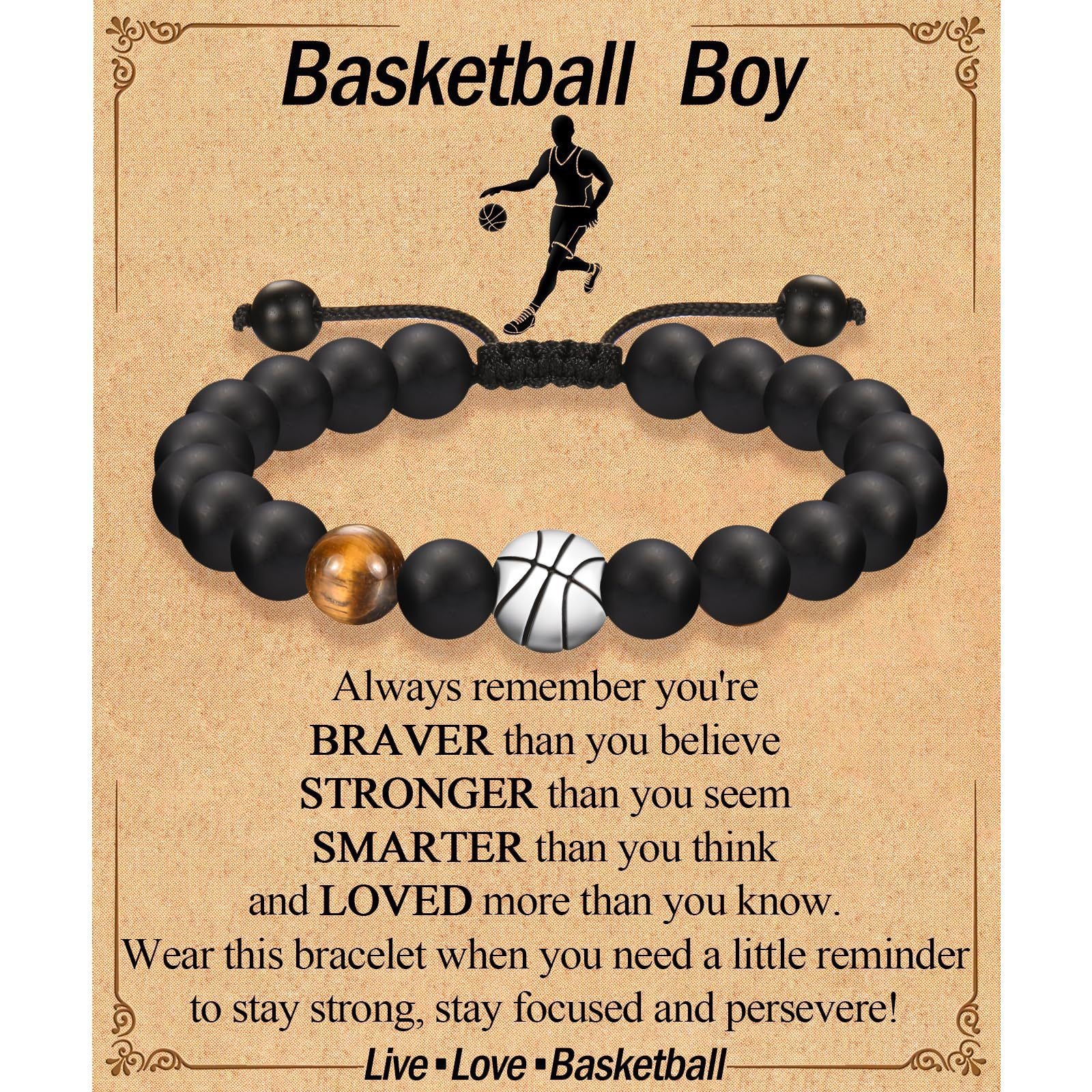 Футбольный браслет из бисера для моего сына, подарок, черный матовый футбольный баскетбольный браслет, браслет с тигровым глазом, бейсбольный браслет
