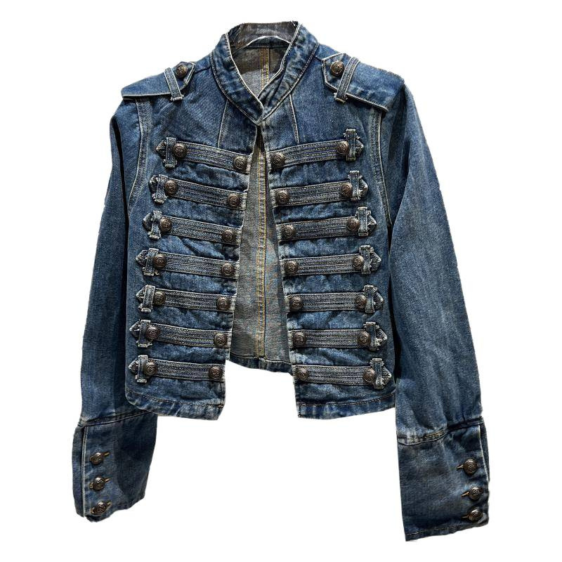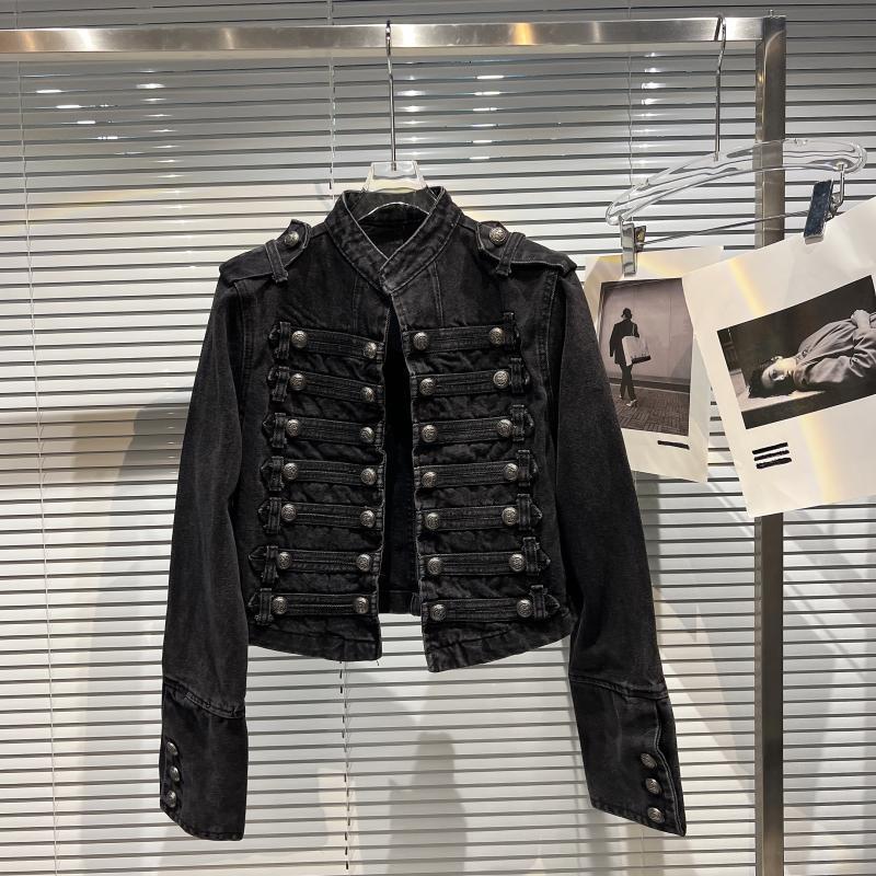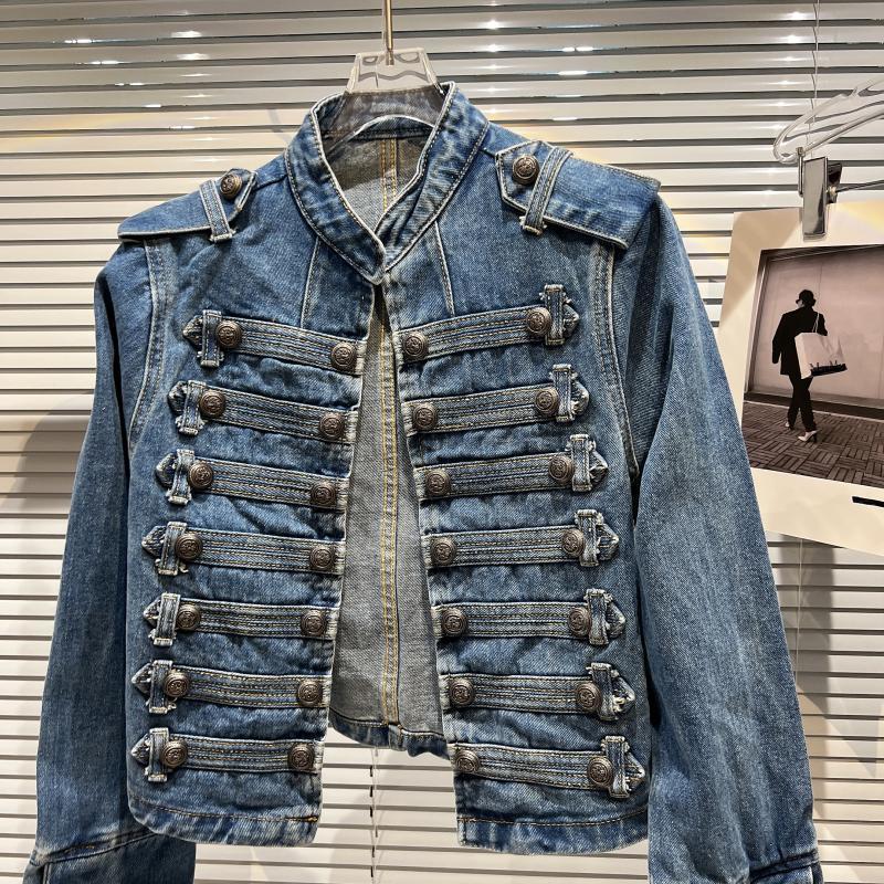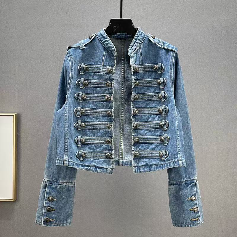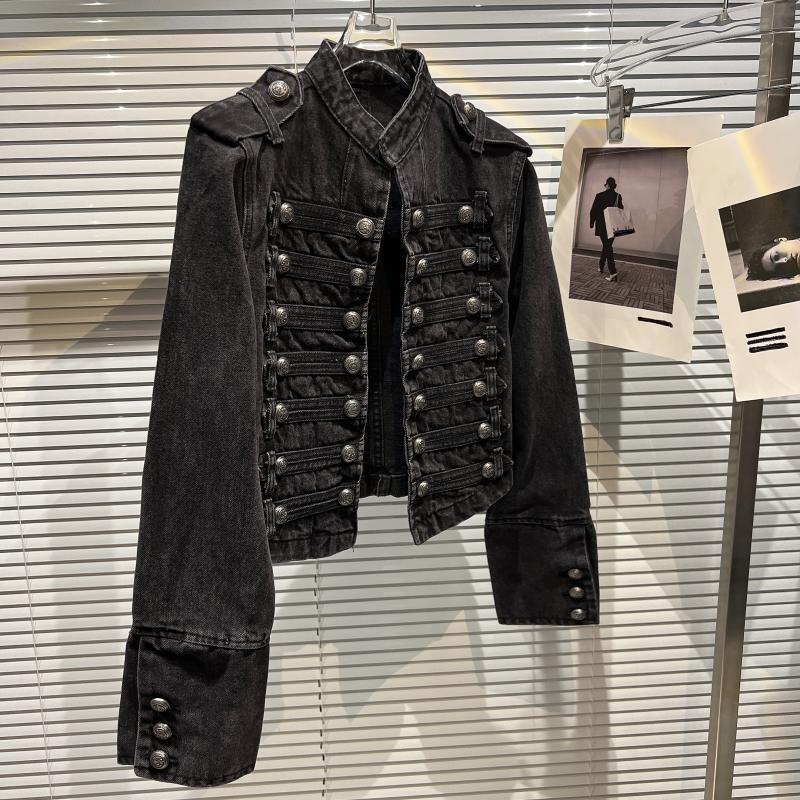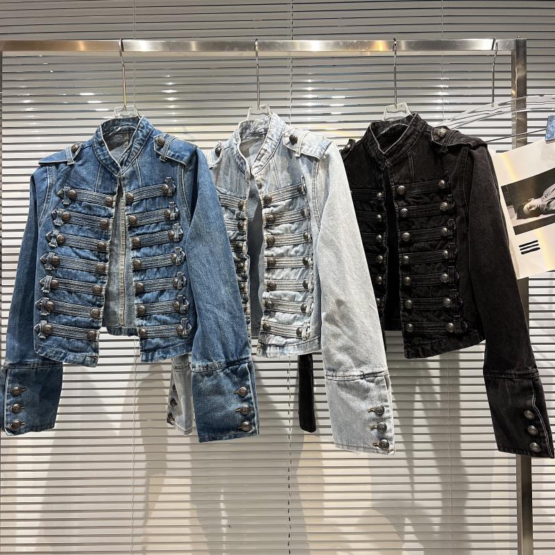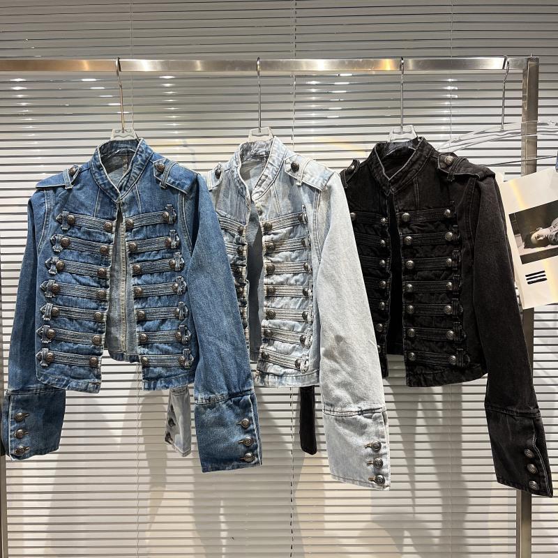 Модная джинсовая короткая куртка с классическим дизайном металлической пряжки на плечевом ремне, осень 2025 года