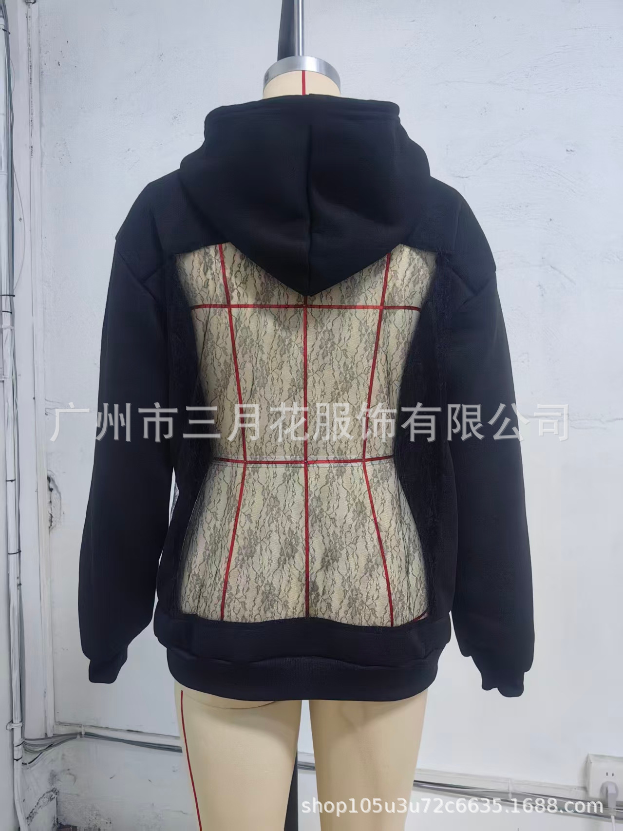 Женский худи с капюшоном, повседневный длинный пуловер, американский крой, сетчатый длинный рукав, толстовка для женщин, экспорт 2025 года
