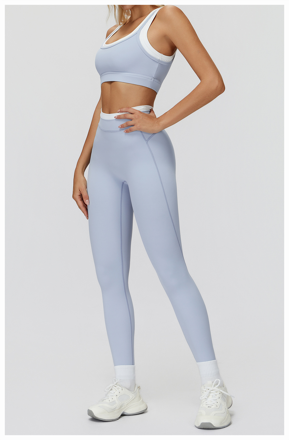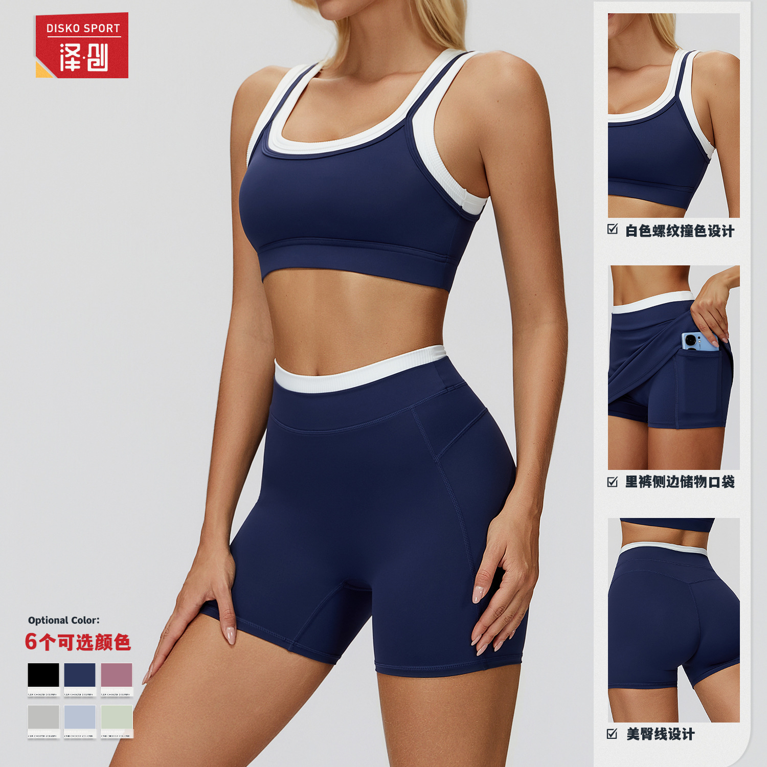 Спортивный комплект Zechuang для йоги и фитнеса, с цветными блоками, эффектом «второй кожи», ребристый, с высокой талией, для активного отдыха, универсальный, 3129
