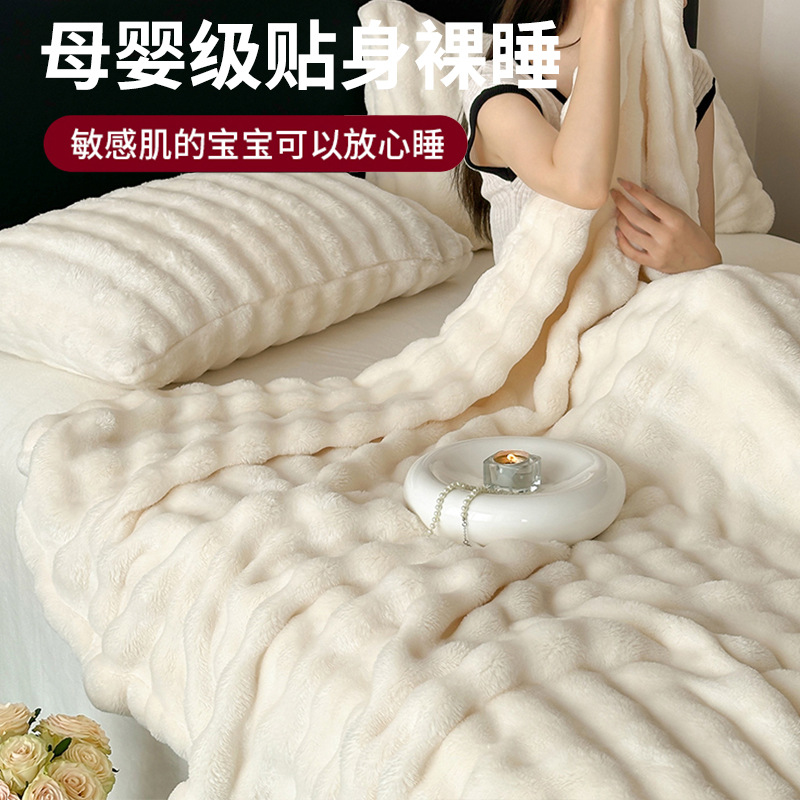 Молочный велюровый плед, толстый зимний утолщенный плед из плюша с кроликом, офисный плед для сна, коралловый велюровый плед для дома и дивана