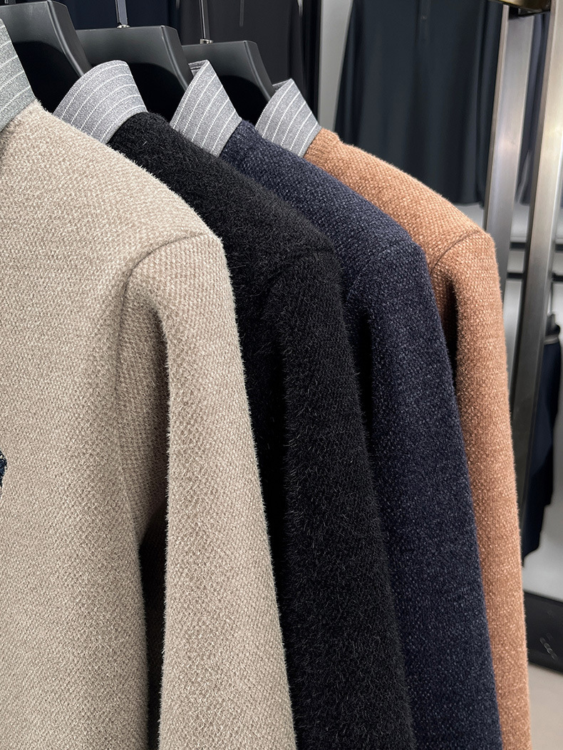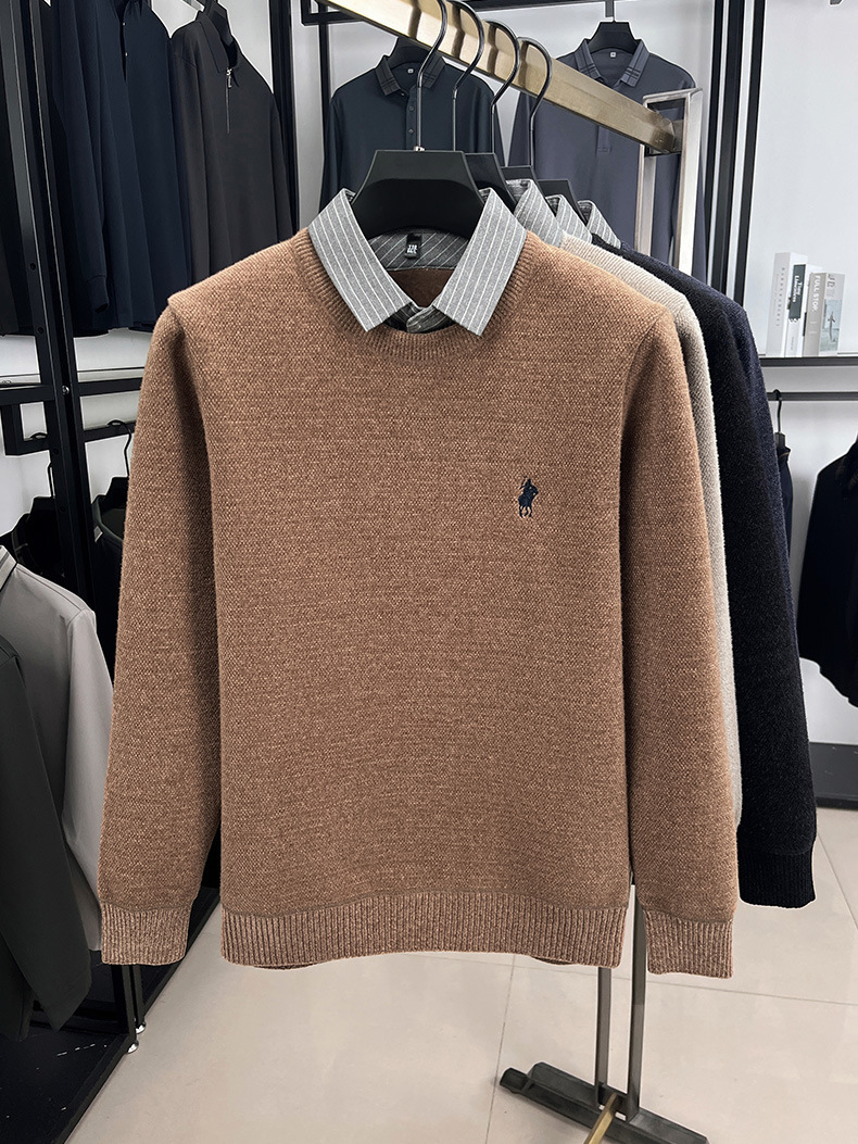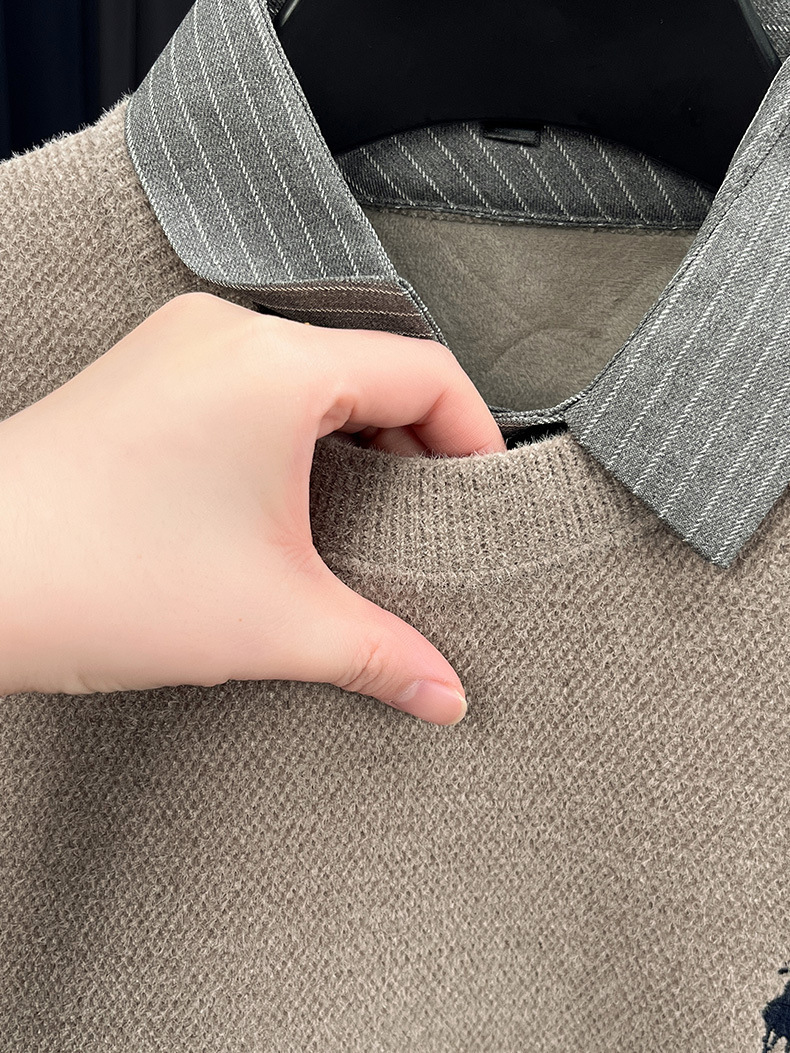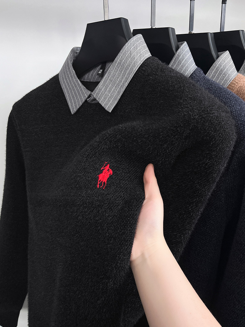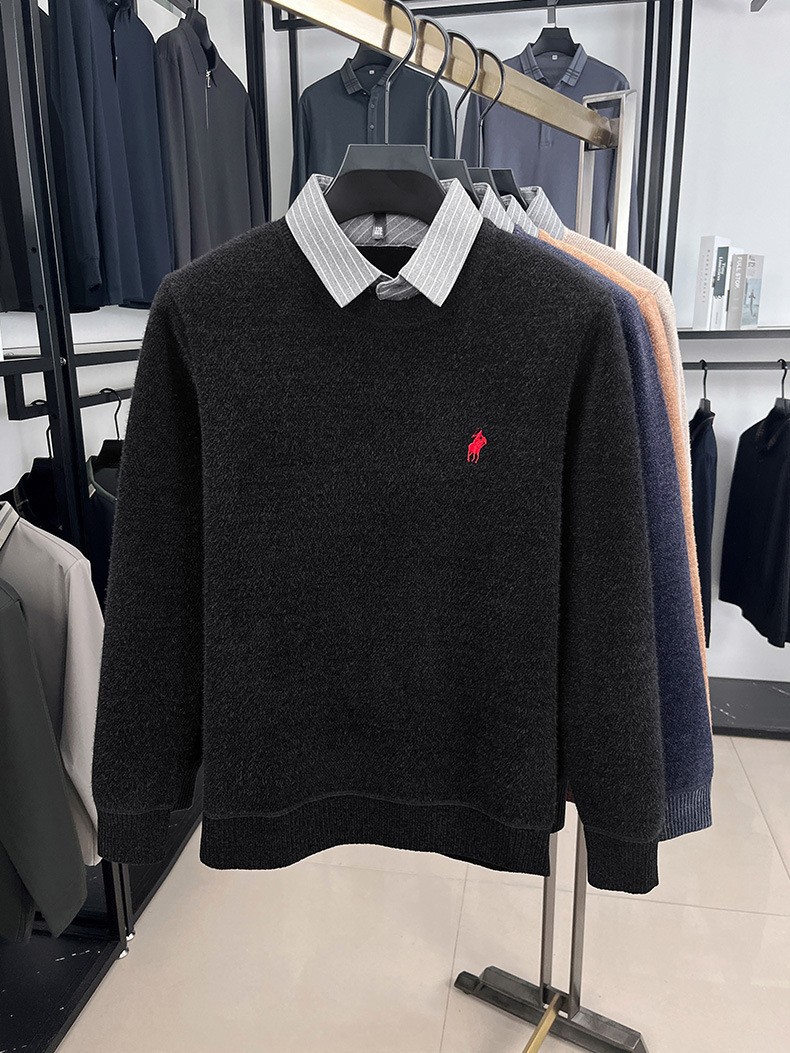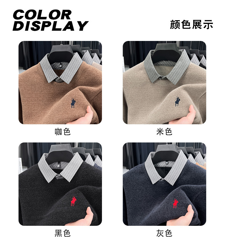 Вязаная нижняя рубашка, осенне-зимний мужской свитер, рубашка с воротником, искусственный топ из двух предметов, мужской зимний модный теплый длинный рукав