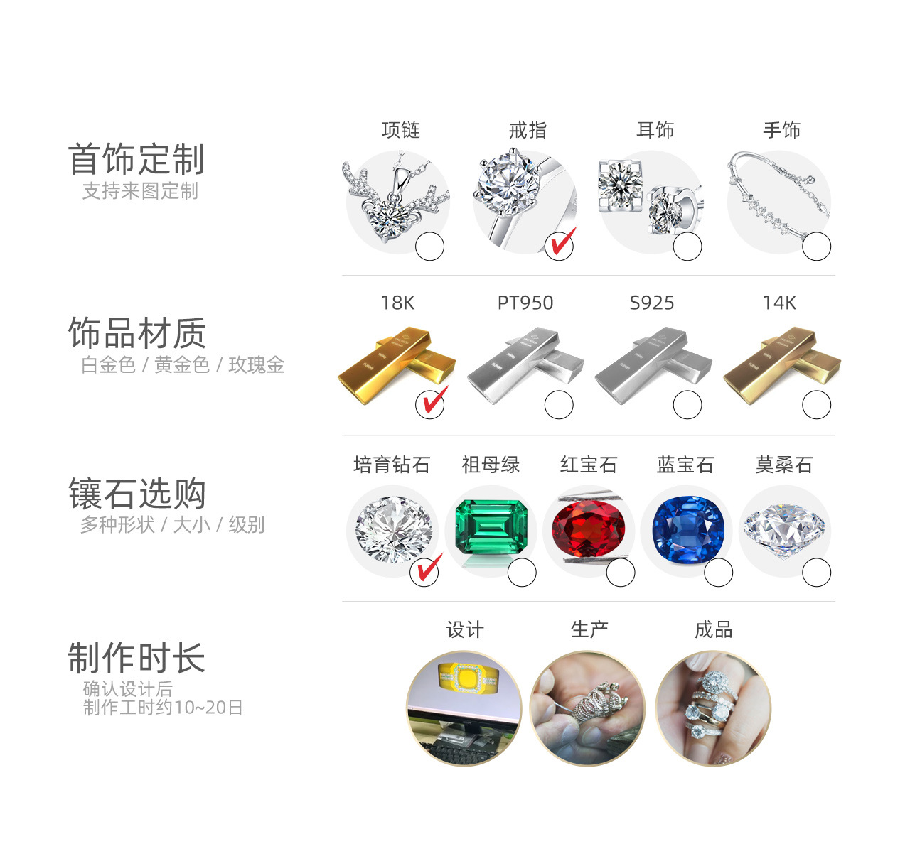 培育钻石饰品HPHT/CVD人工合成裸钻饰品项链定制女戒指定制18K金