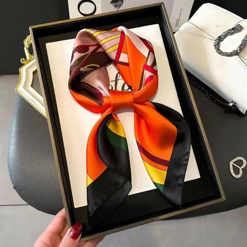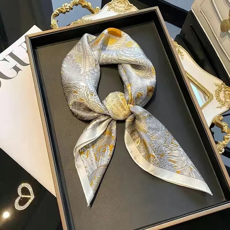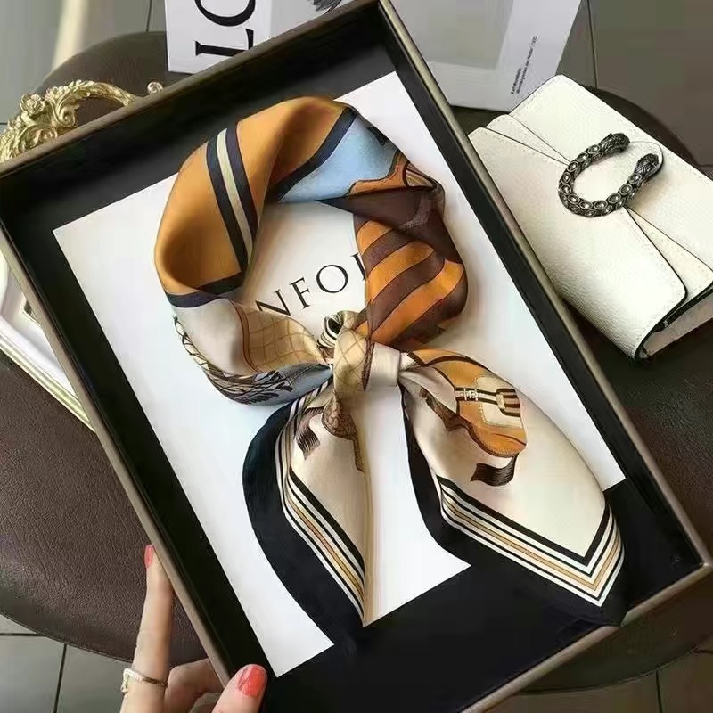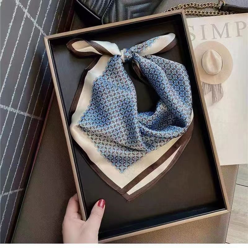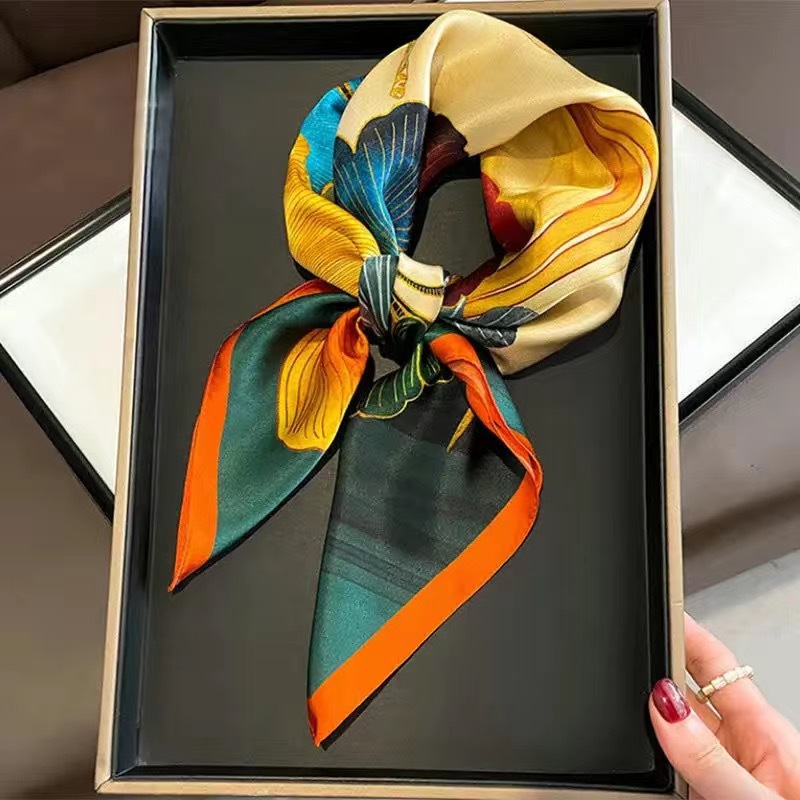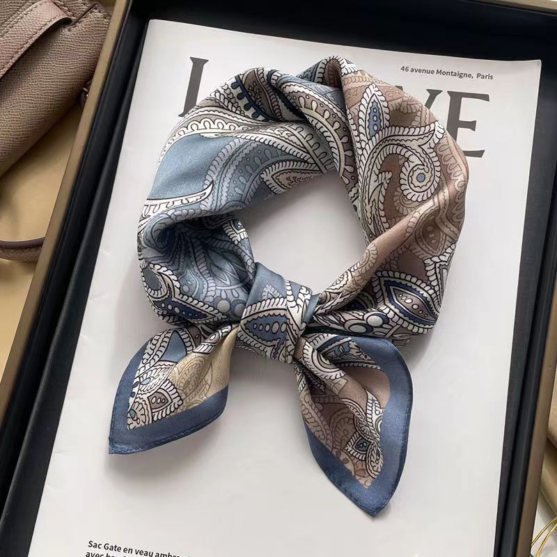 70 шелковый шарф квадратный шарф элитный корейский модный универсальный профессиональный маленький шарф из искусственного шелка шелковый шарф с принтом в стиле ретро для женщин