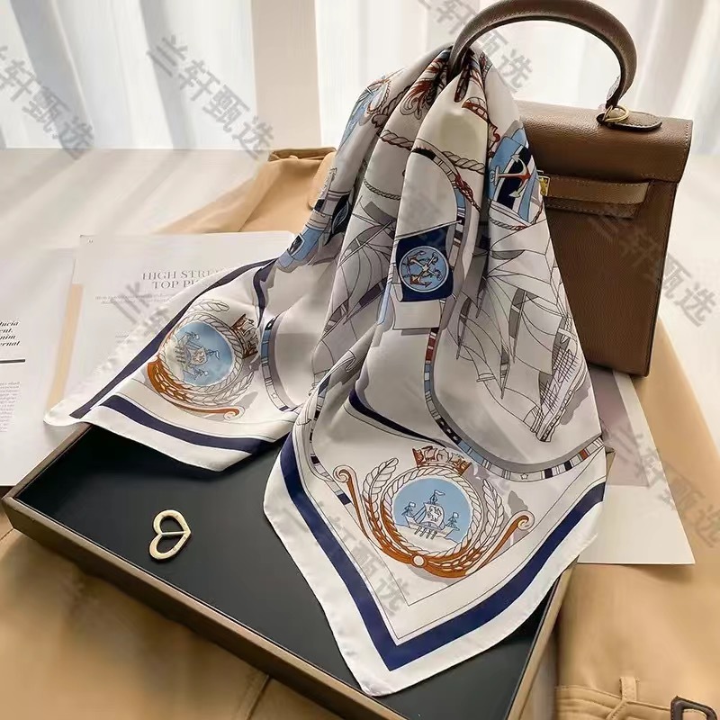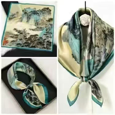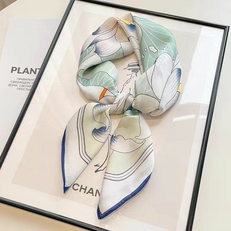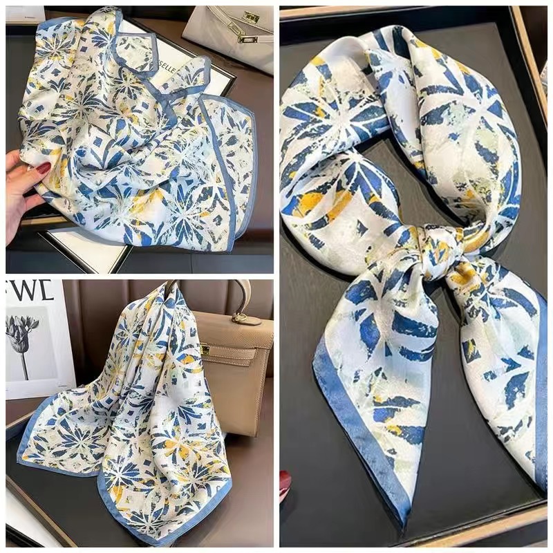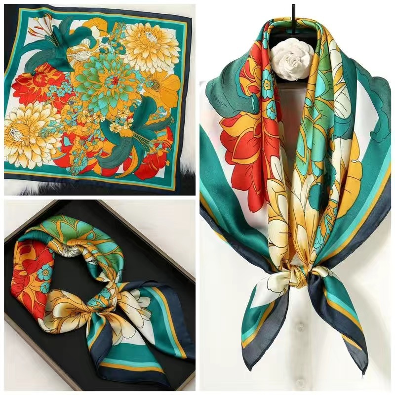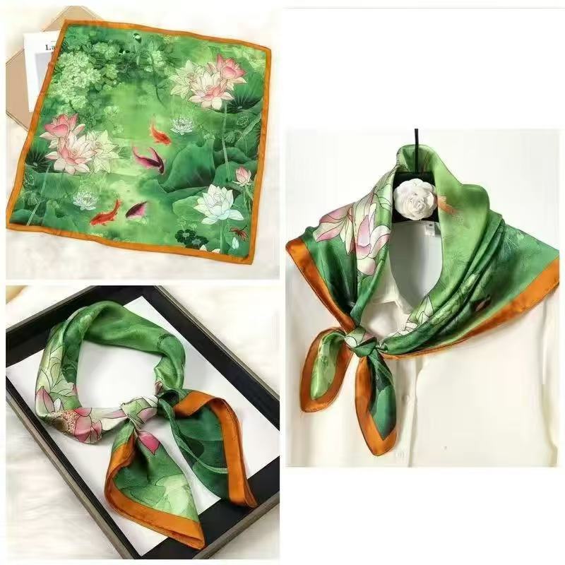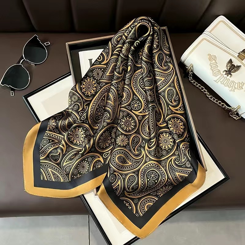 70 шелковый шарф квадратный шарф элитный корейский модный универсальный профессиональный маленький шарф из искусственного шелка шелковый шарф с принтом в стиле ретро для женщин