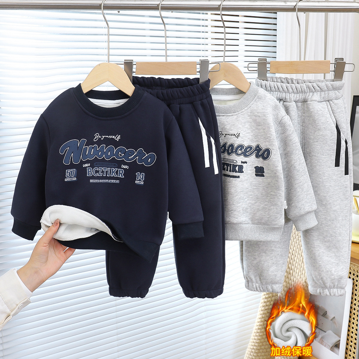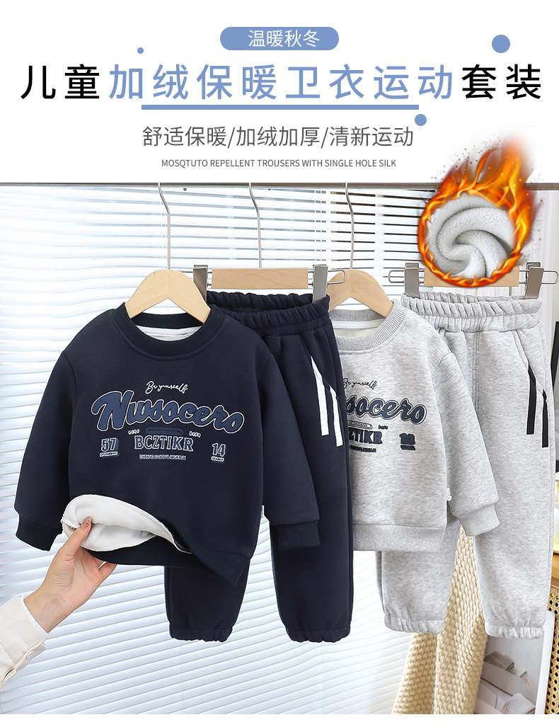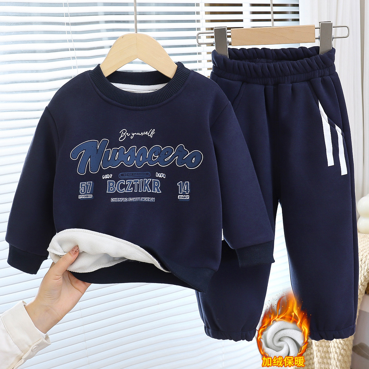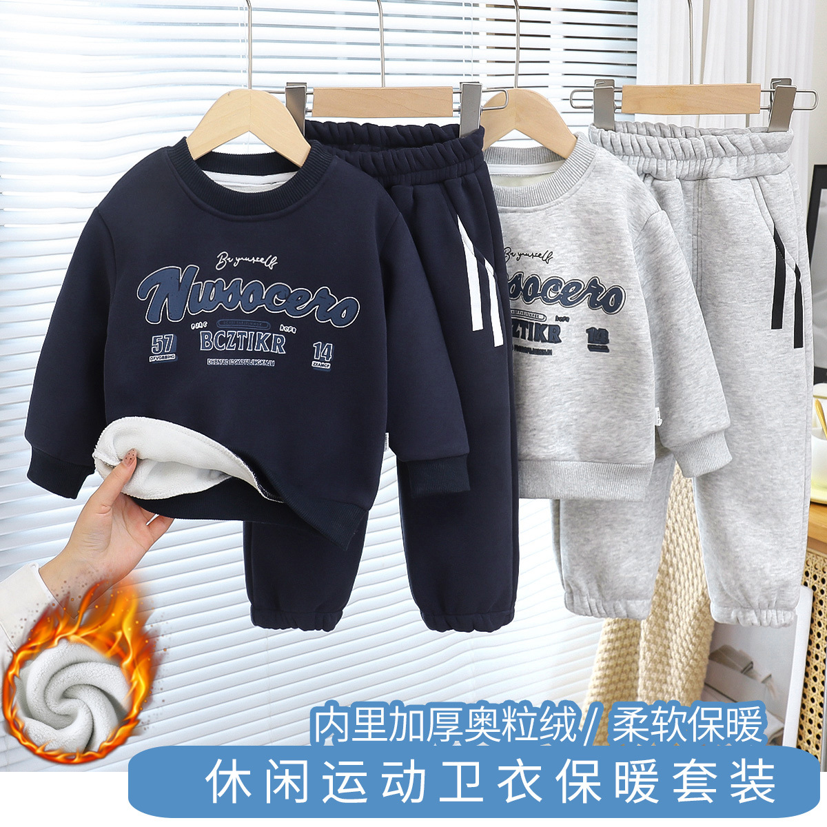 儿童卫衣套装冬季新款加绒加厚2025男童洋气运动两件套童装批发