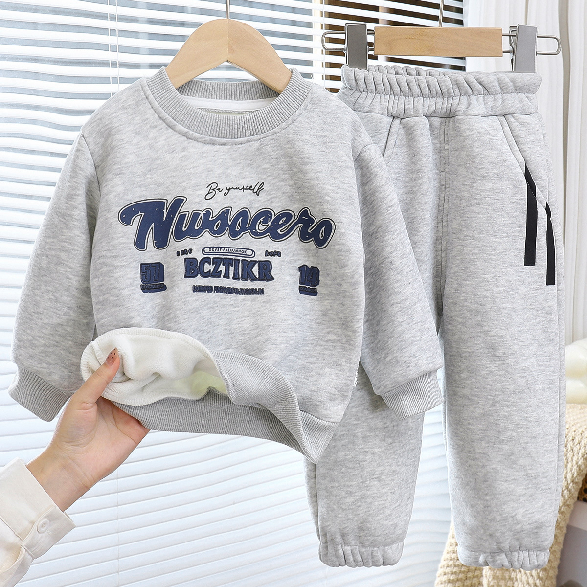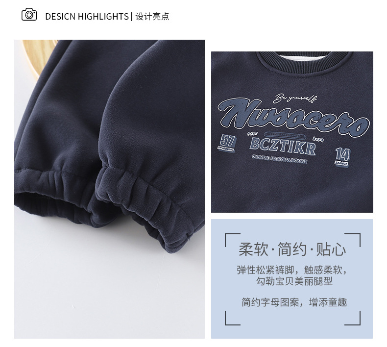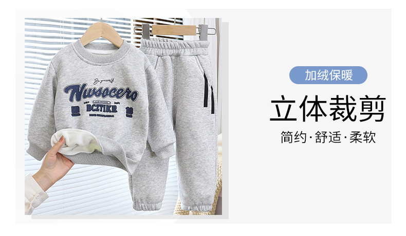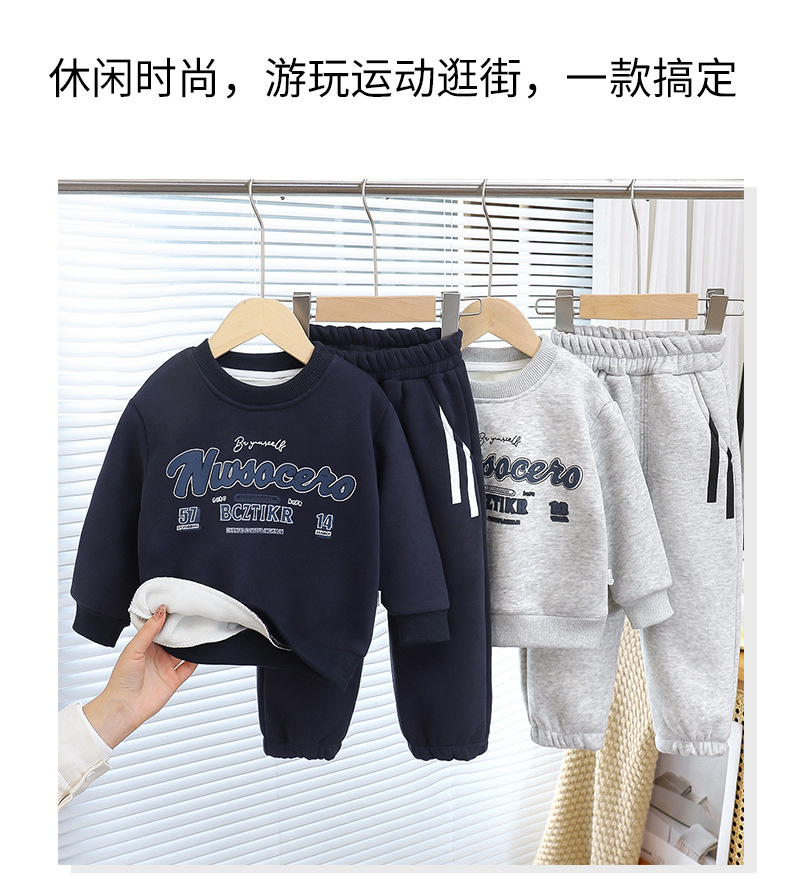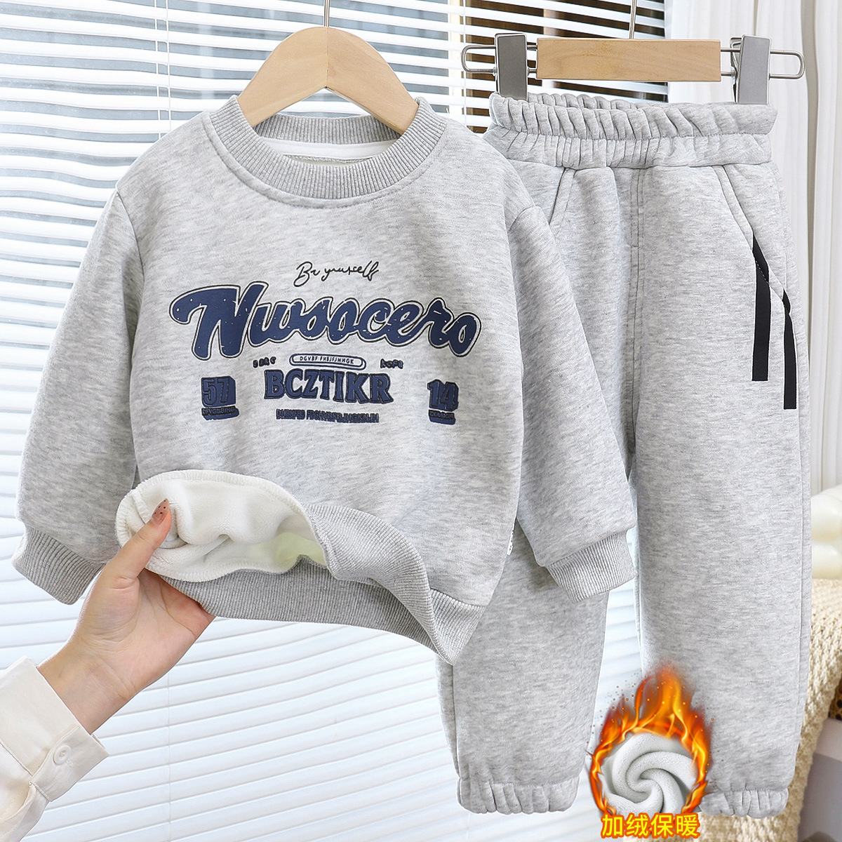 儿童卫衣套装冬季新款加绒加厚2025男童洋气运动两件套童装批发