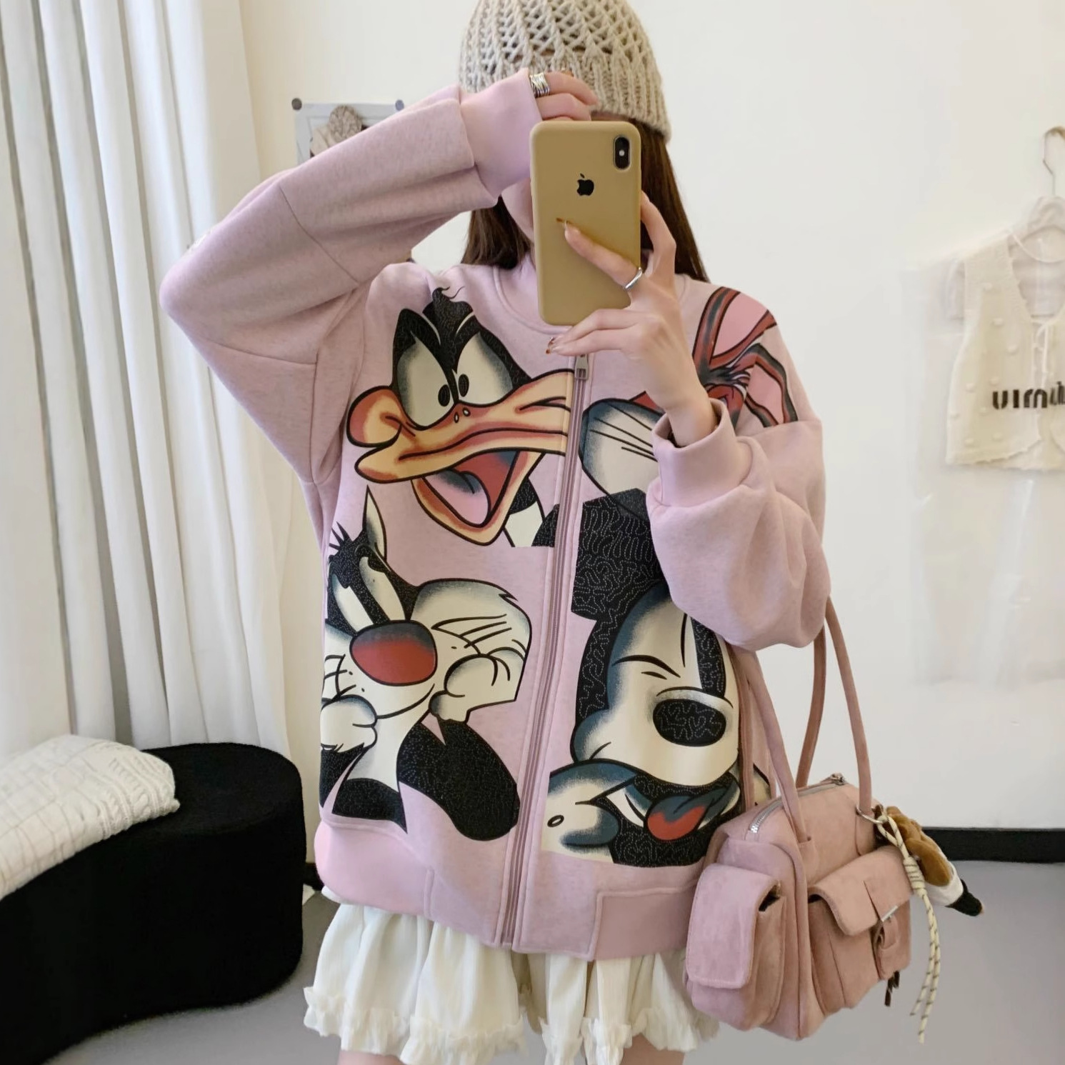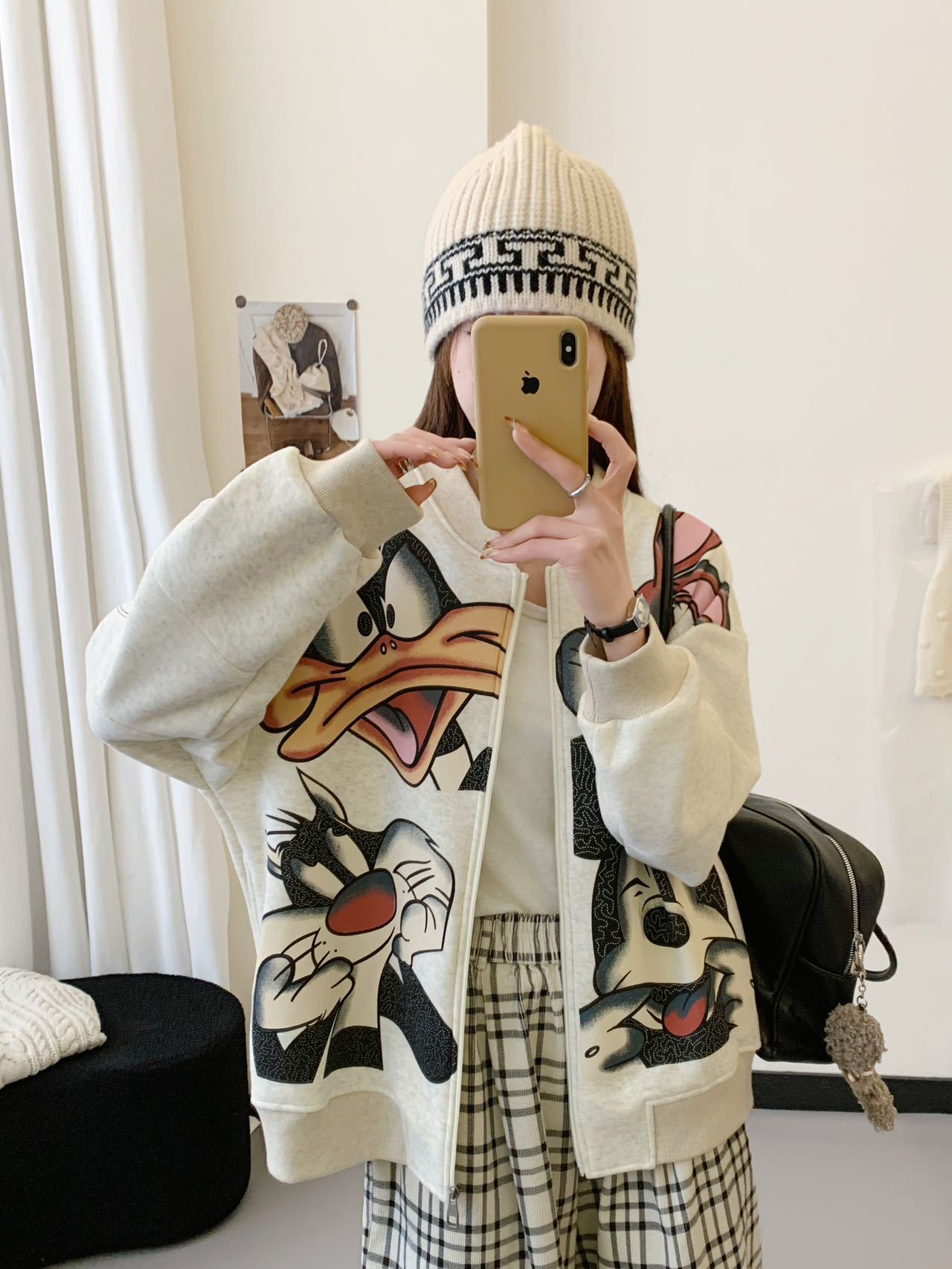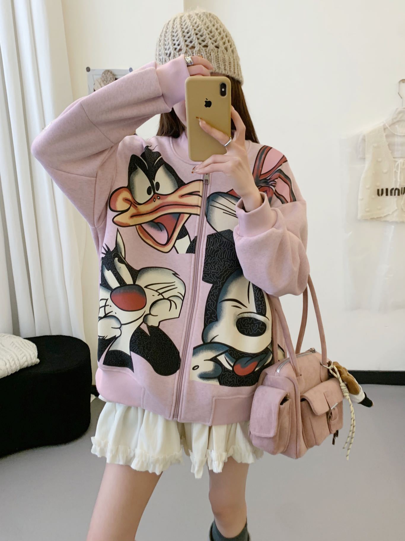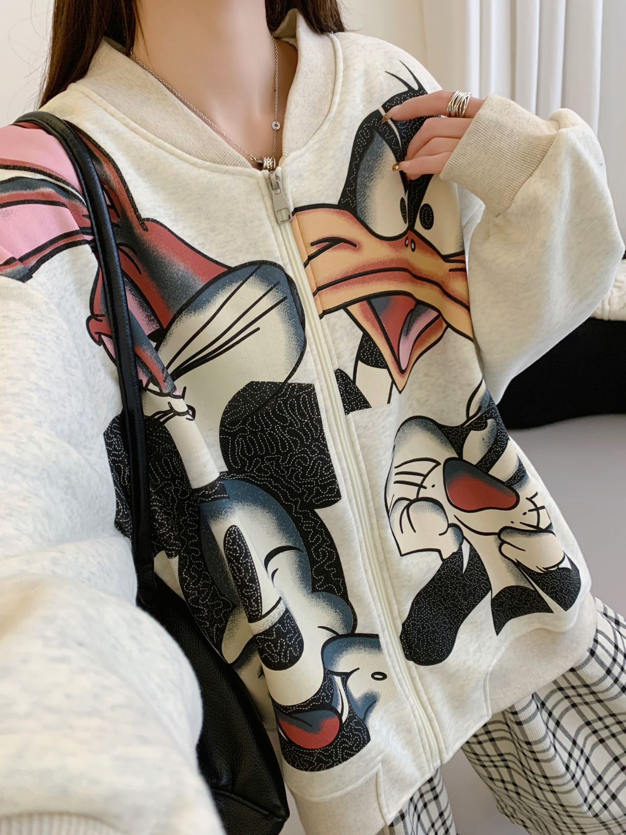 欧货潮牌刺绣卡通加绒棒球服无感印花2025冬季宽松百搭夹克女上衣