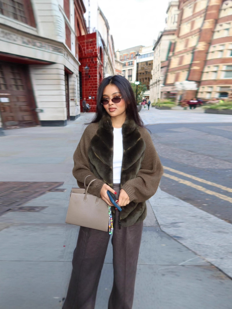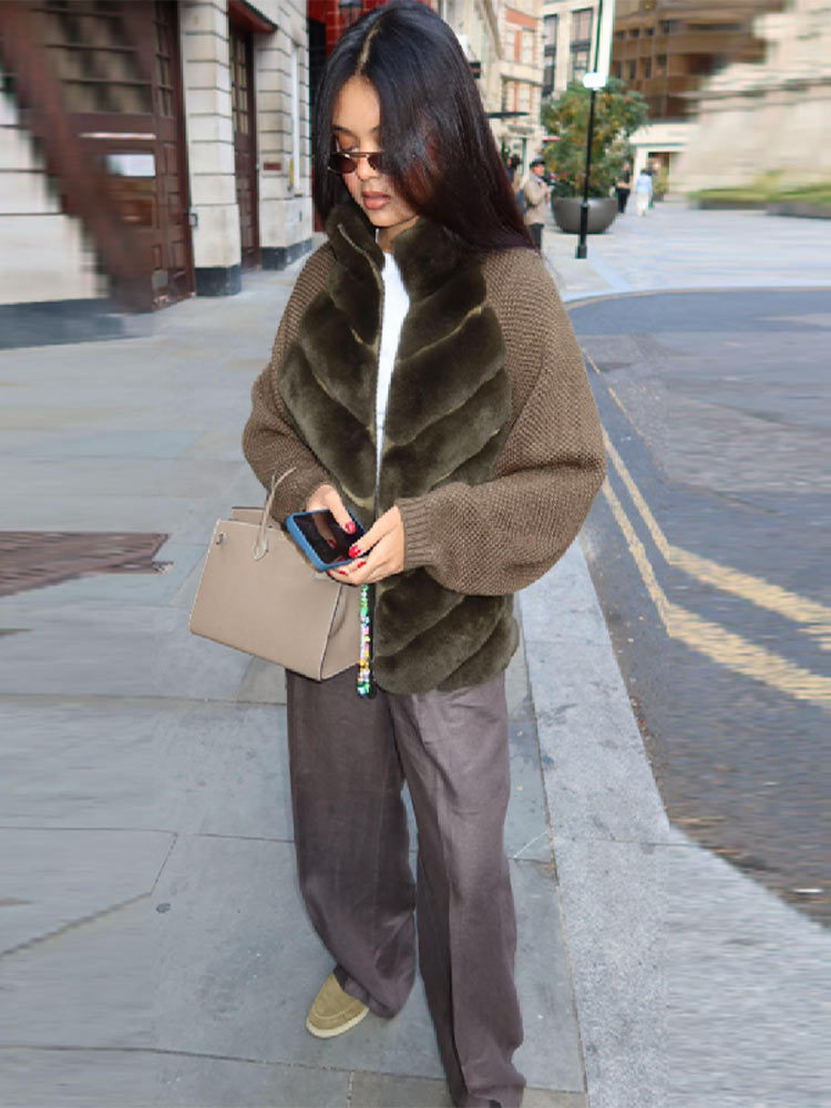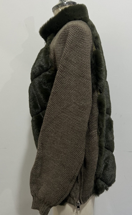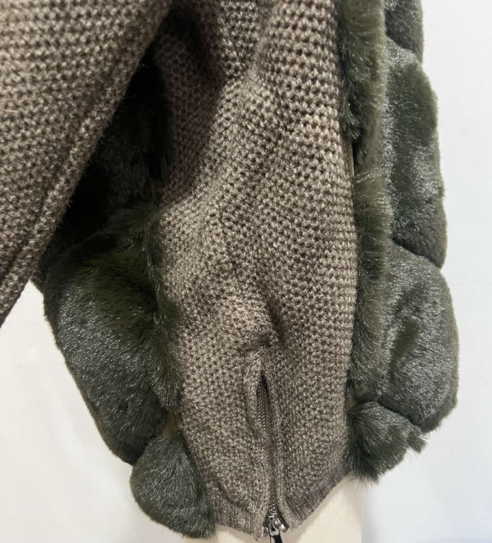 Реальный снимок - Куртка с длинным рукавом и вставками из искусственного меха - Зеленый; В наличии, реальные фотографии - Куртка с длинным рукавом и вставками из искусственного меха - Черная (без меховой подкладки); Куртка меховая лоскутная с длинными рукавами-серая (без меха на спине); Куртка с длинными рукавами и меховыми вставками - синяя
