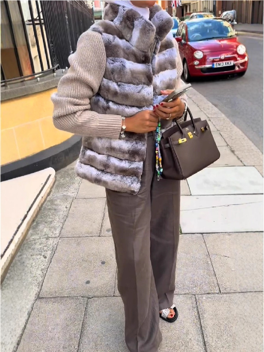Элегантное и теплое пальто с длинными рукавами и меховыми вставками, с меховым воротником, для женщин, в новом европейском и американском стиле, экологичное и универсальное.