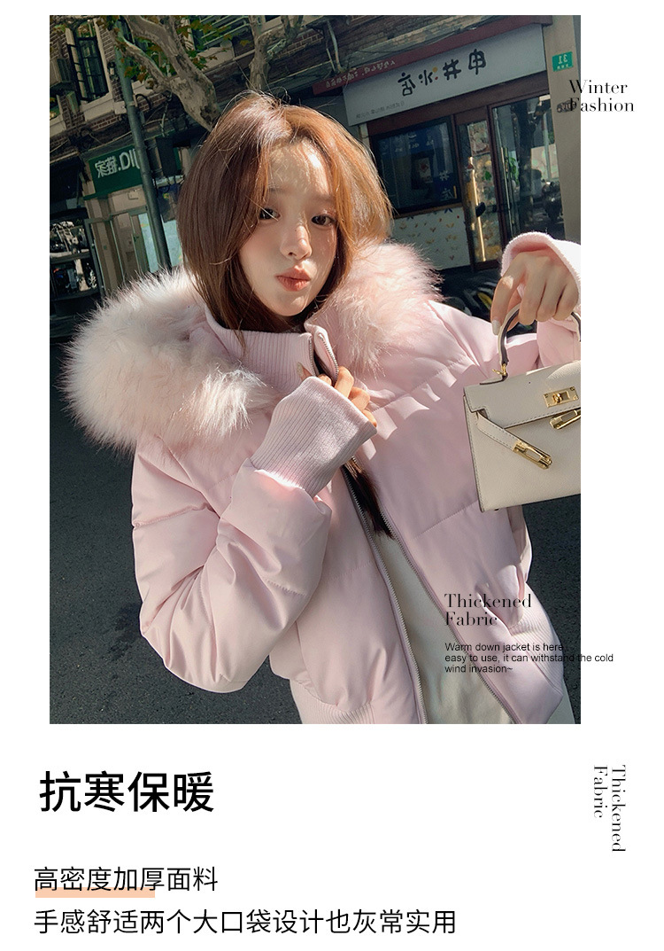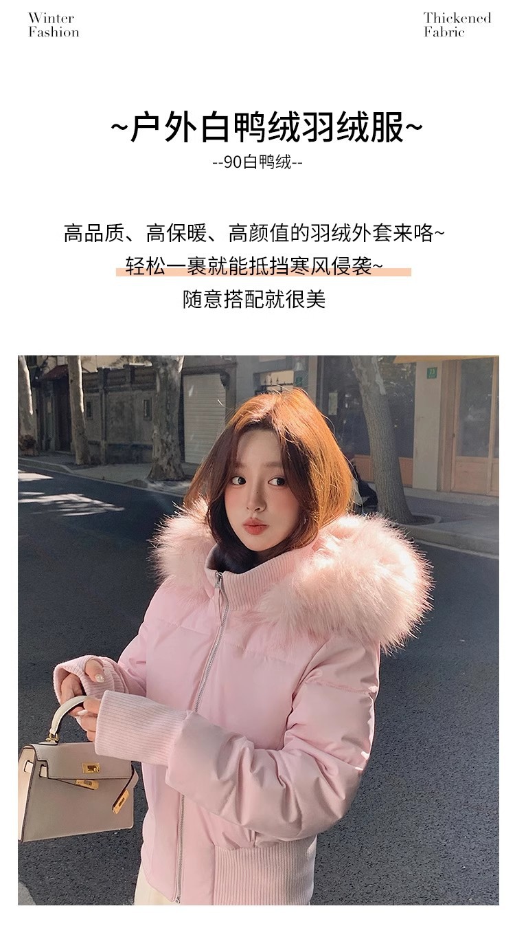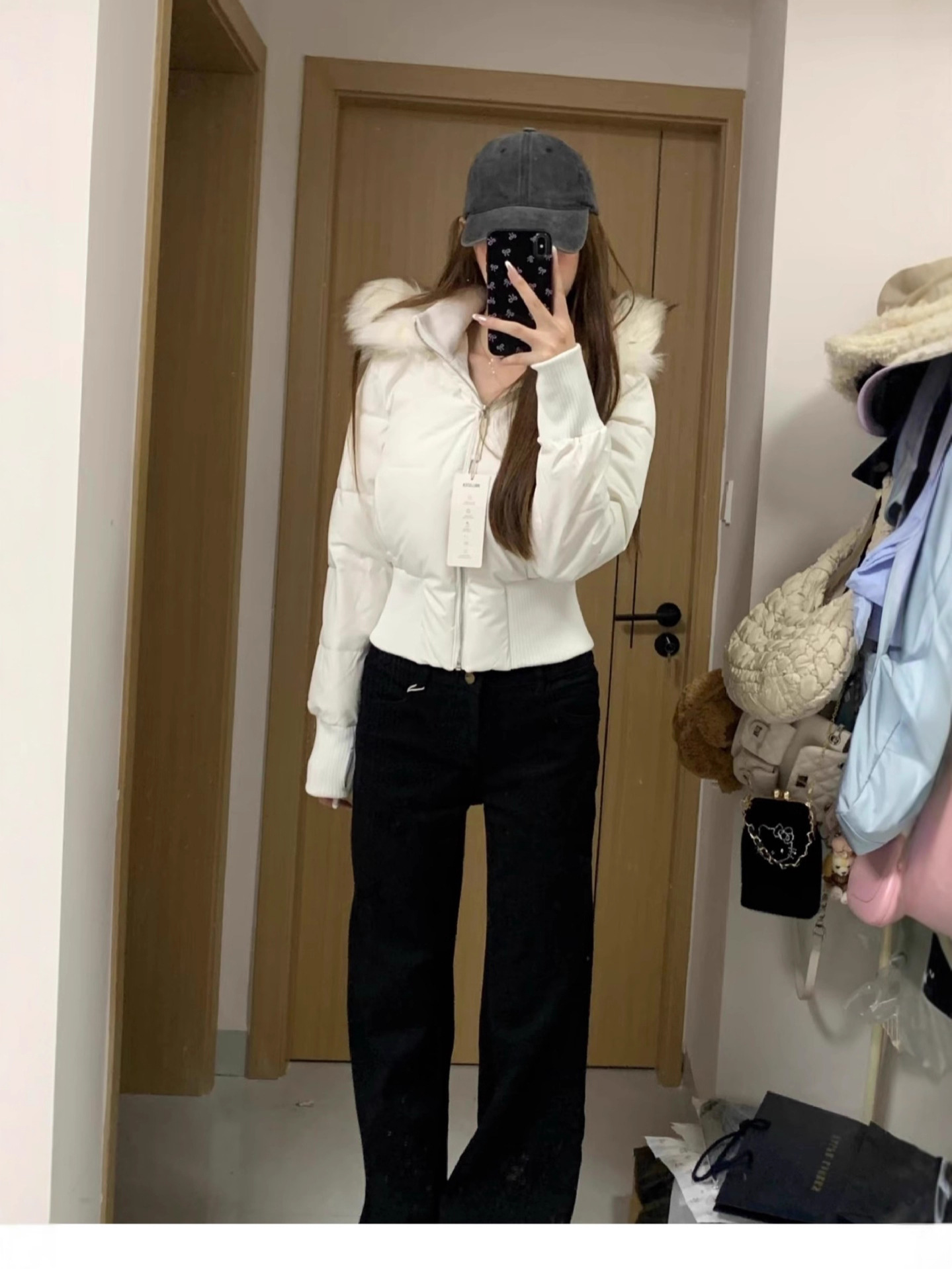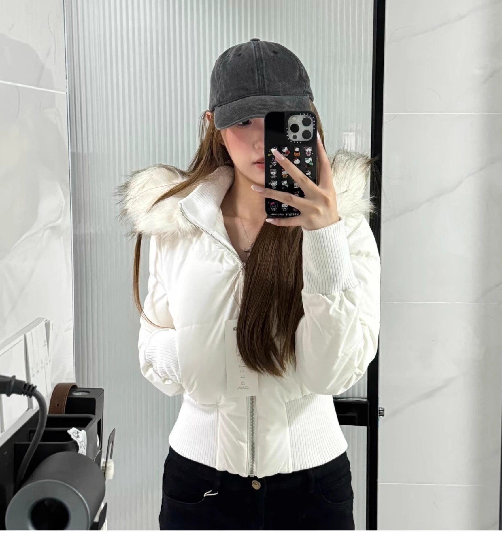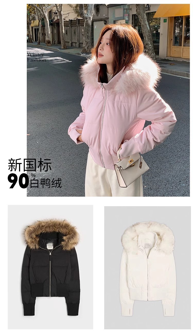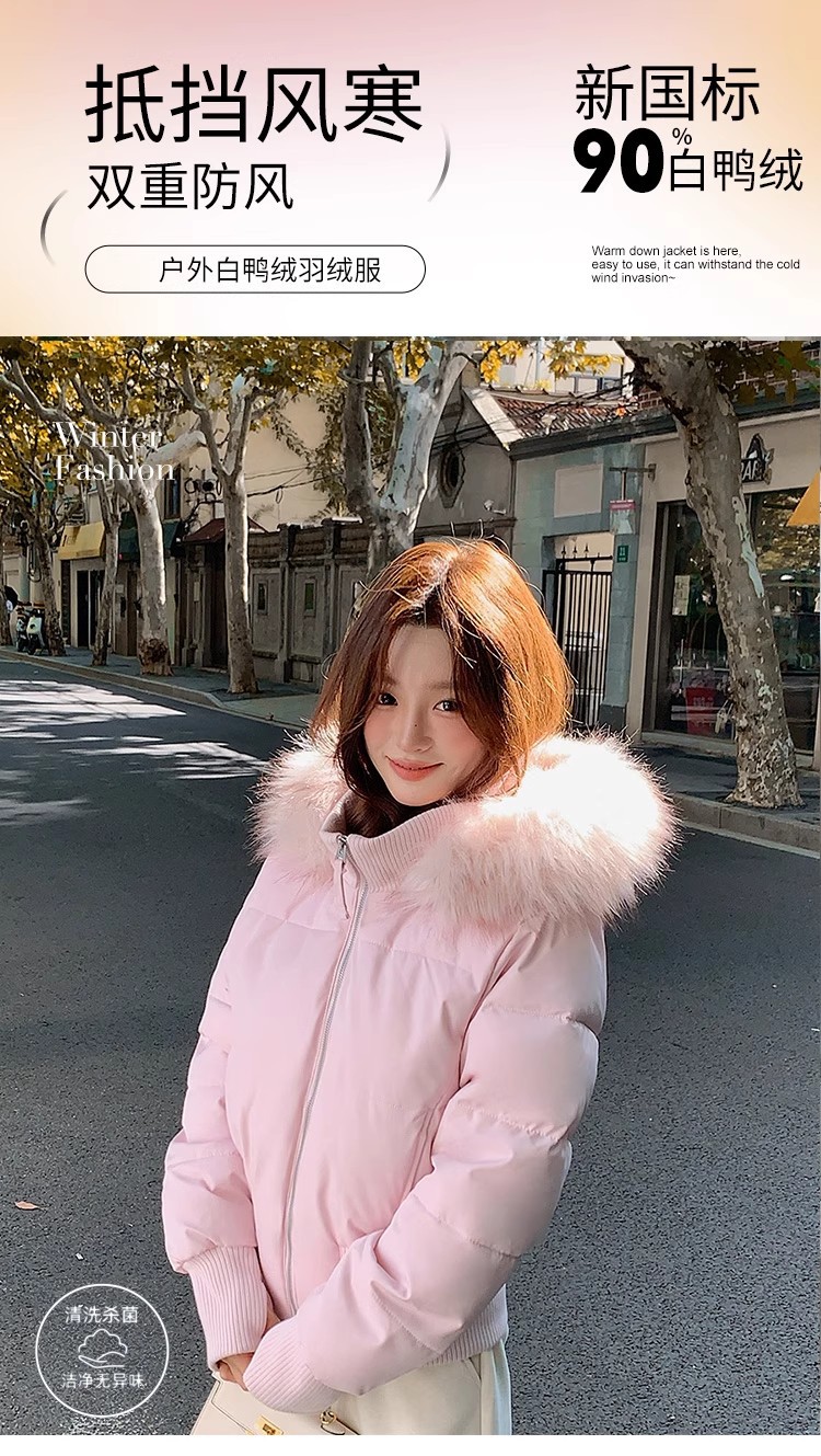 Элегантный короткий пуховик в стиле "Маленькая чайка" с большим меховым воротником для женщин, новая зимняя куртка с капюшоном 2025 года.