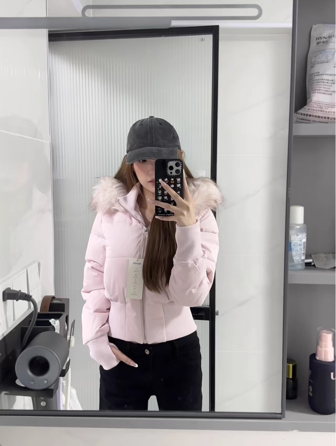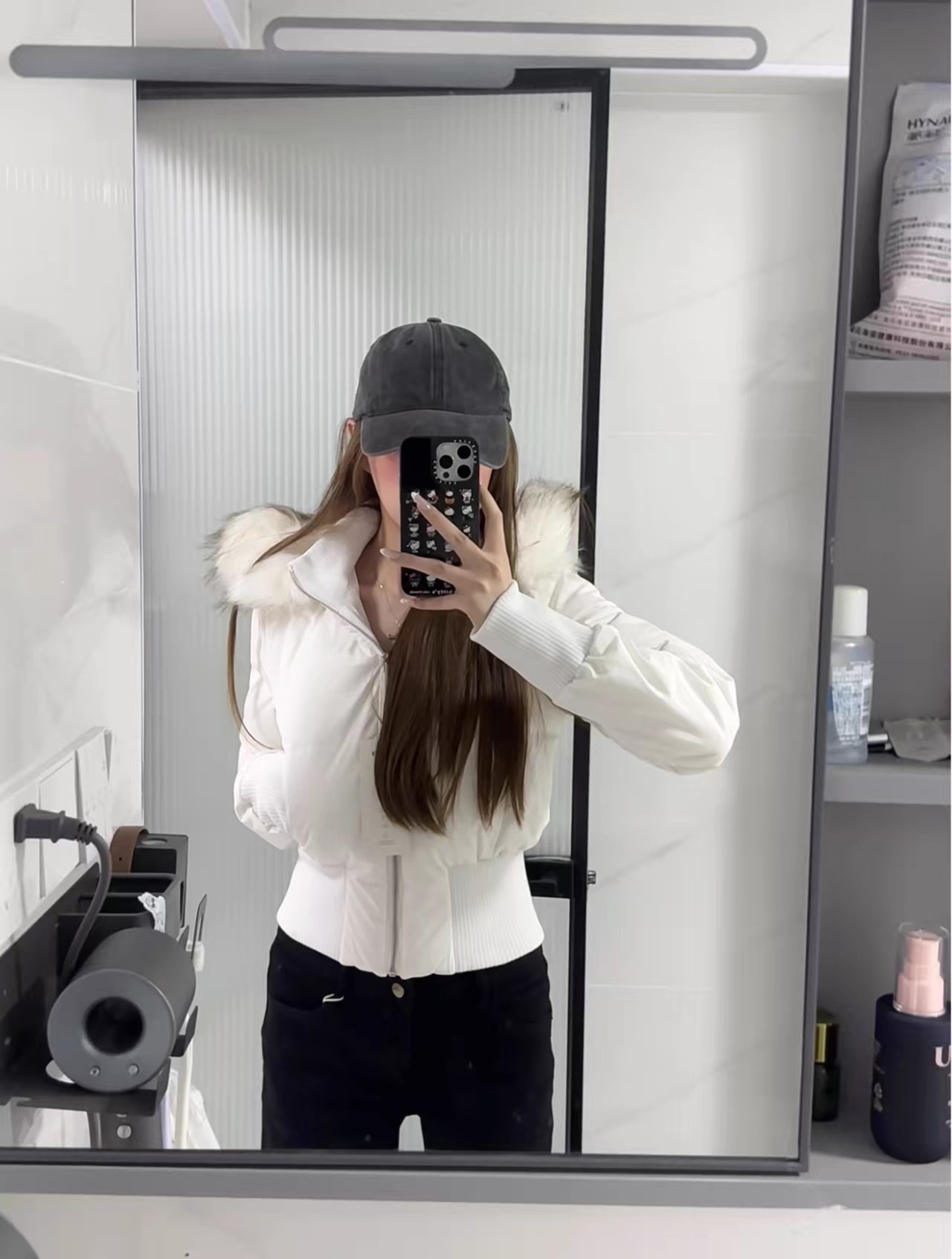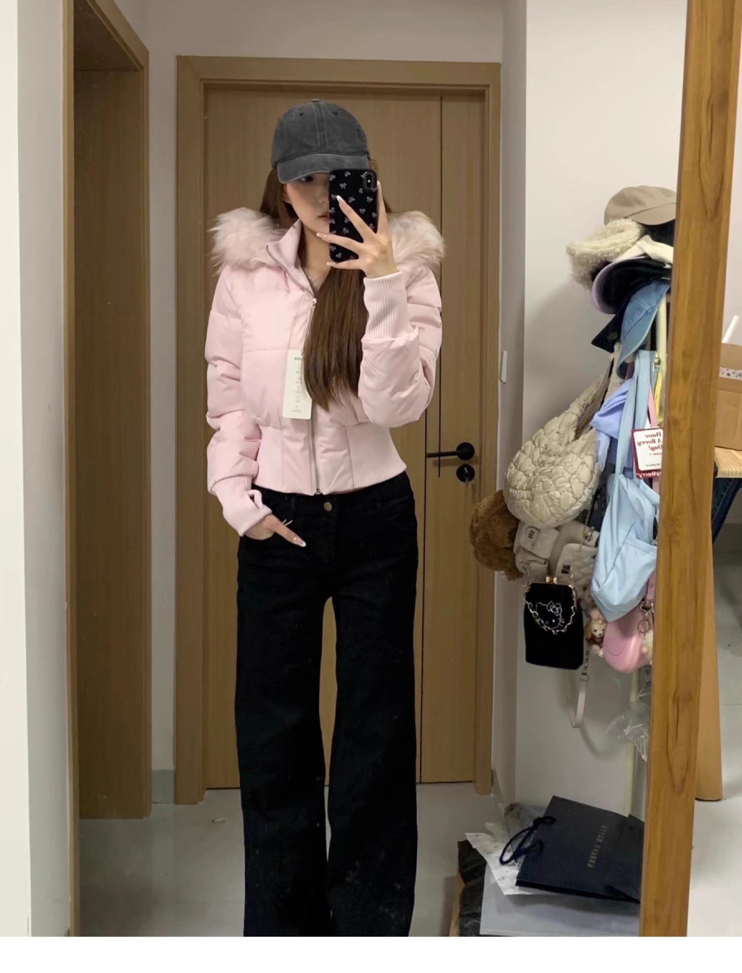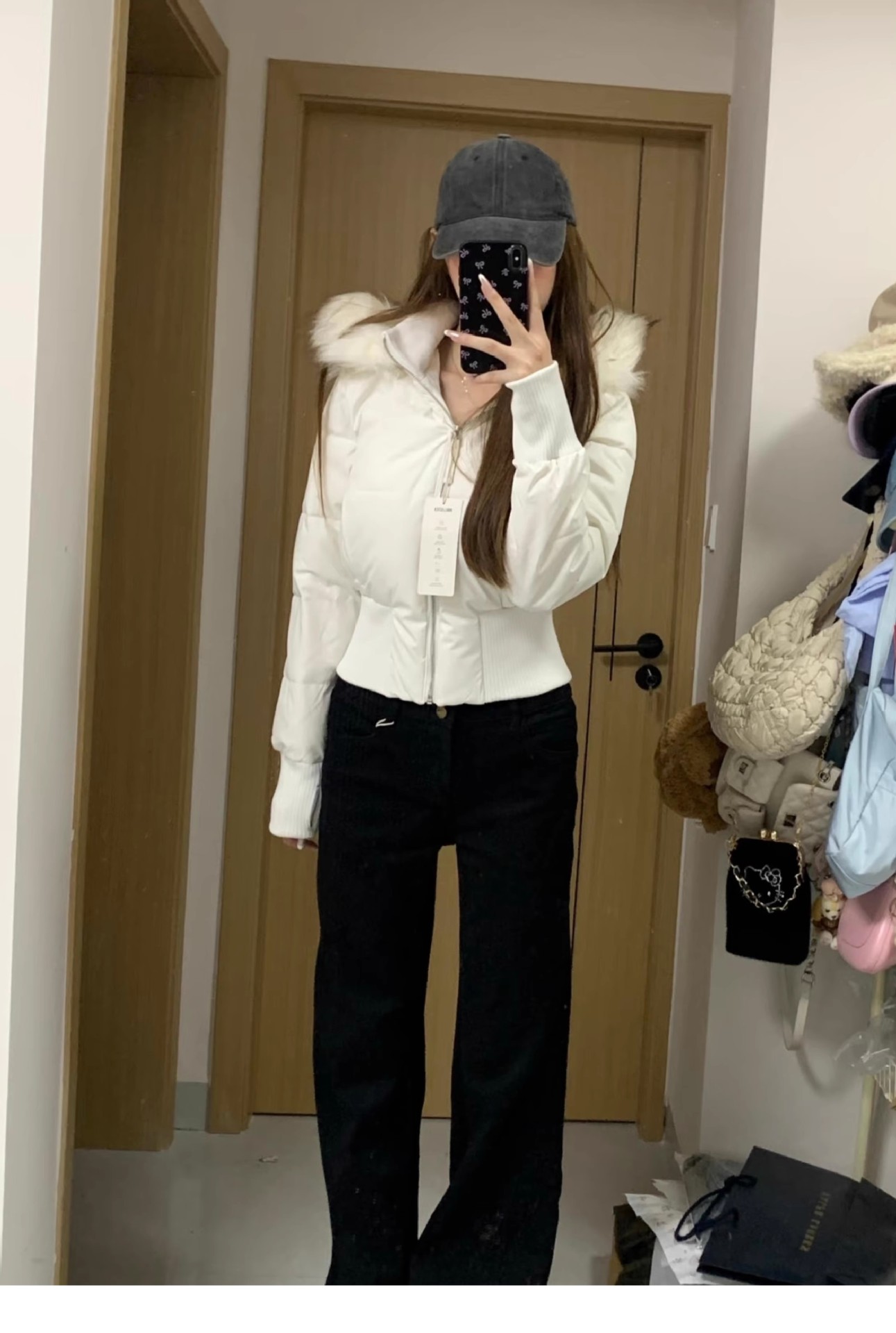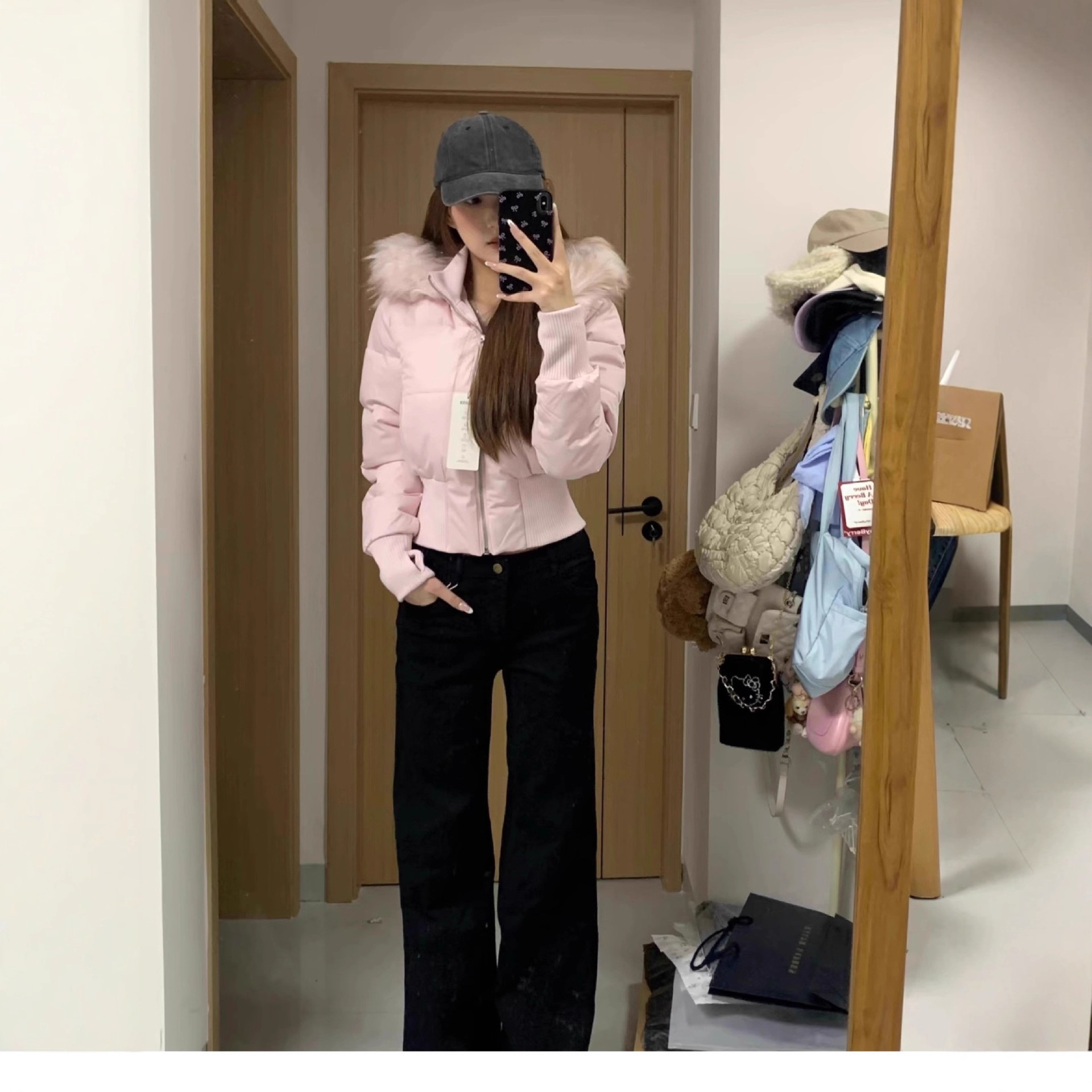 Элегантный короткий пуховик в стиле "Маленькая чайка" с большим меховым воротником для женщин, новая зимняя куртка с капюшоном 2025 года.