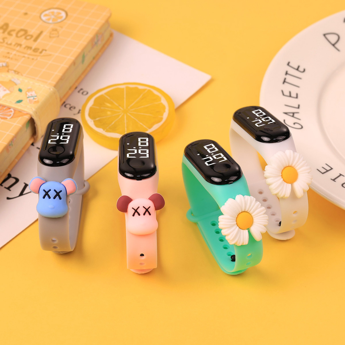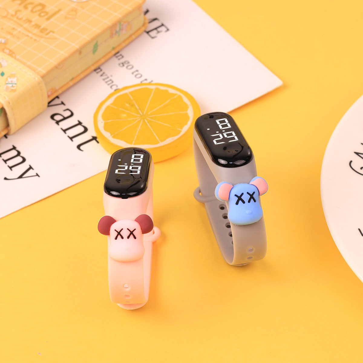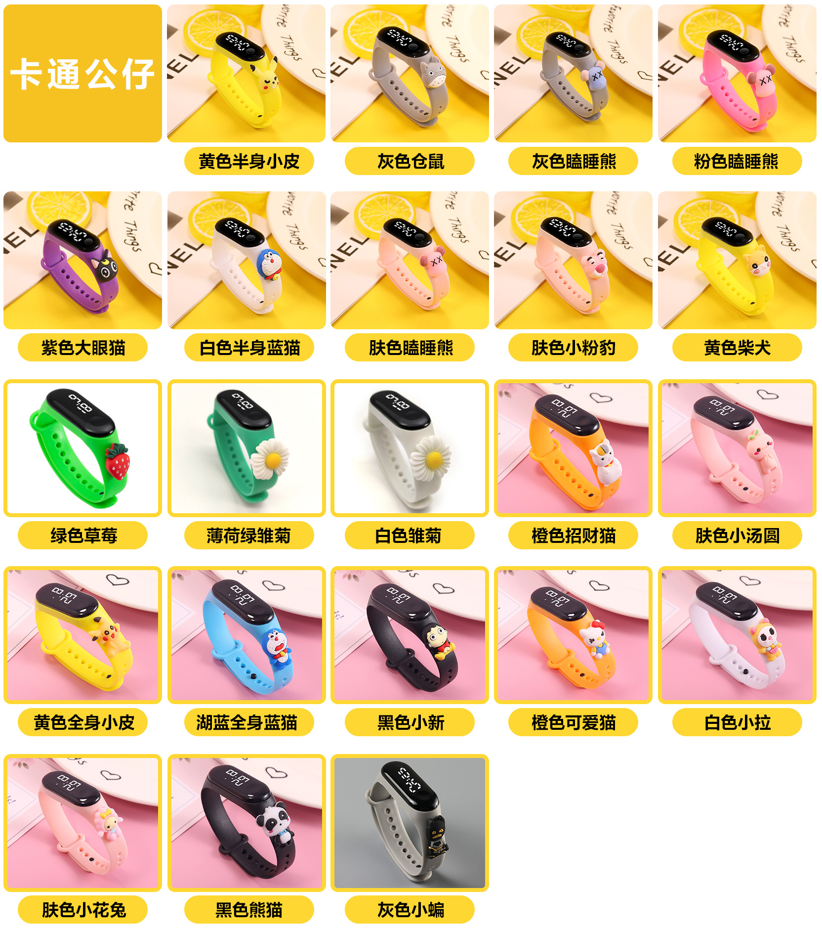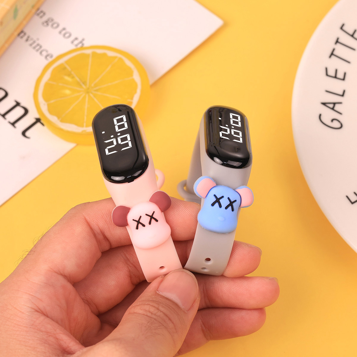Оптовая продажа, водонепроницаемые милые мультяшные белые светодиодные цифровые часы для учащихся начальной и средней школы, спортивные куклы, сенсорные часы-браслет