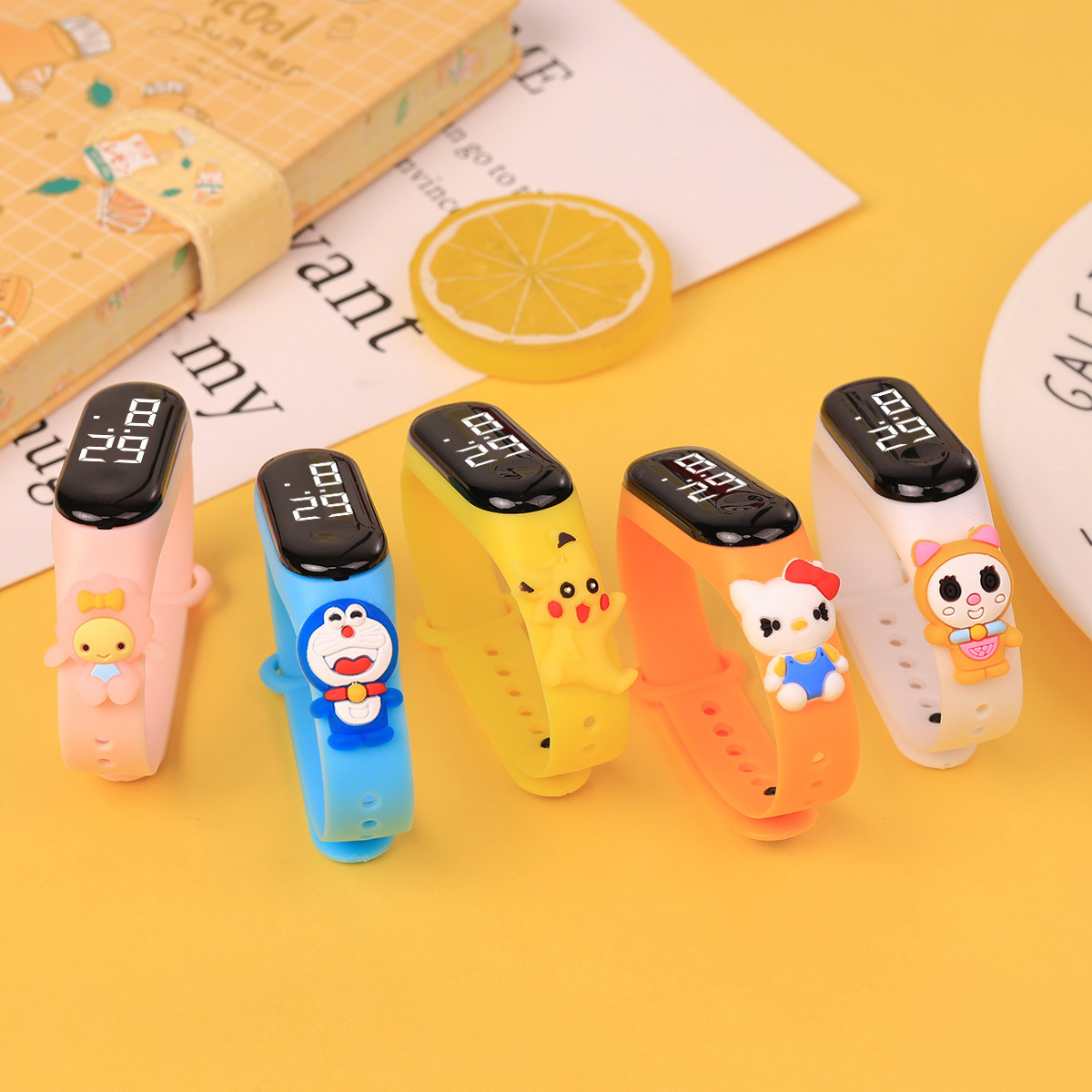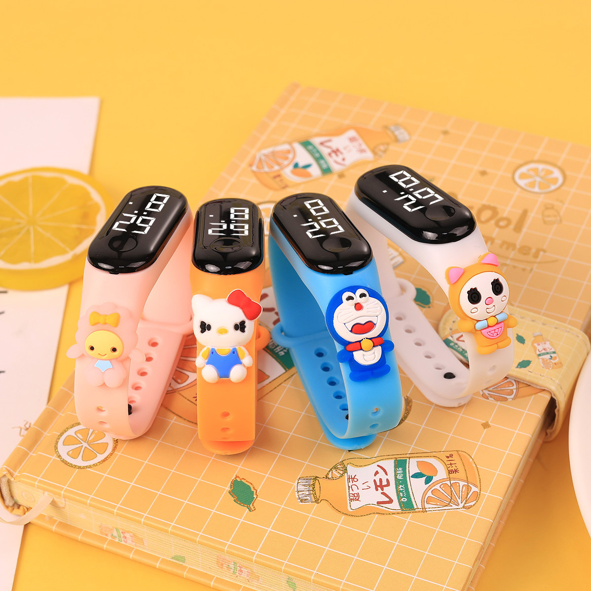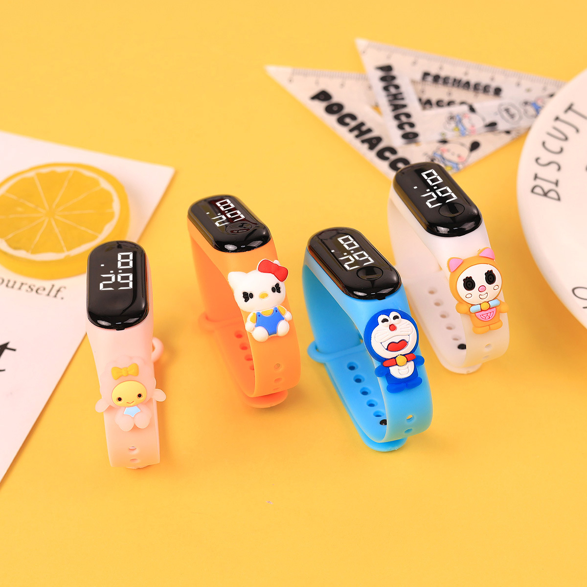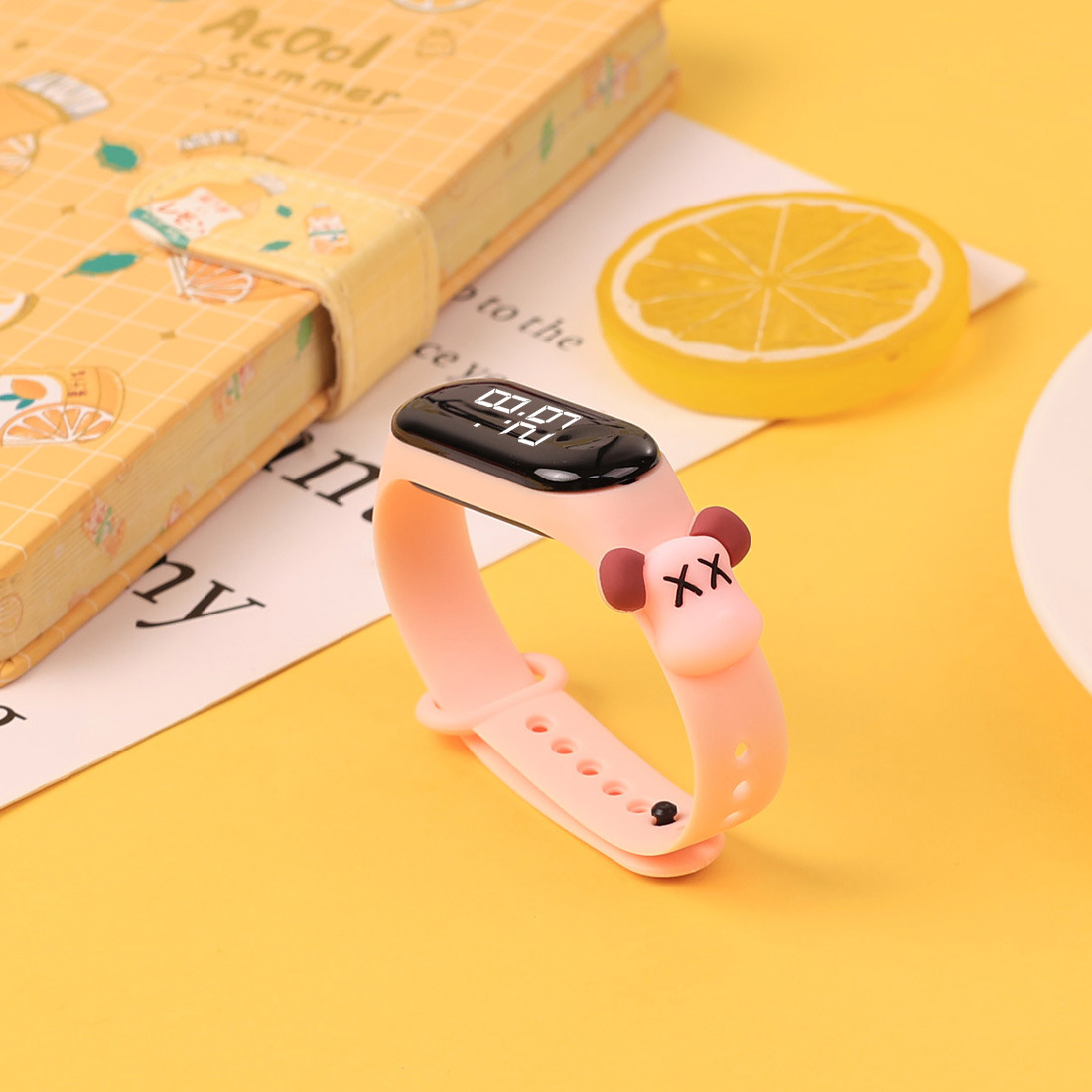 Оптовая продажа, водонепроницаемые милые мультяшные белые светодиодные цифровые часы для учащихся начальной и средней школы, спортивные куклы, сенсорные часы-браслет