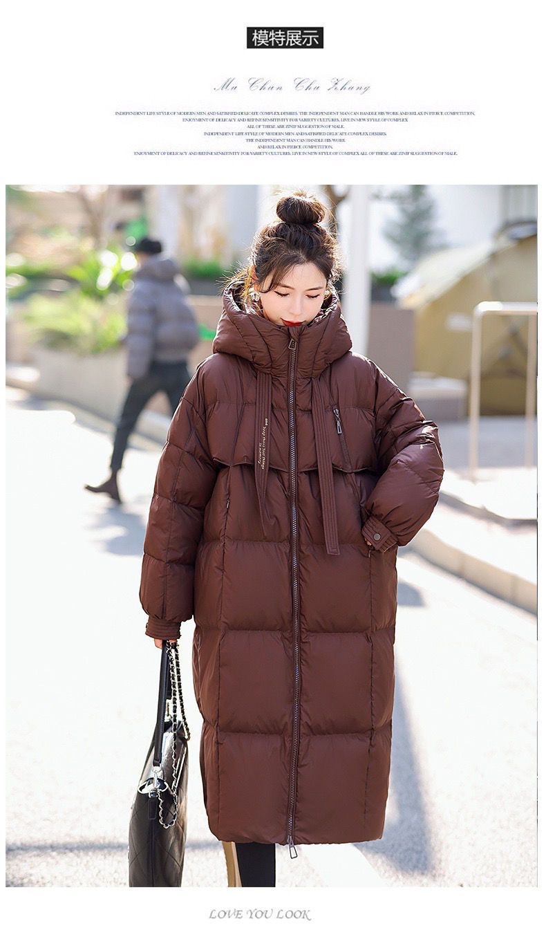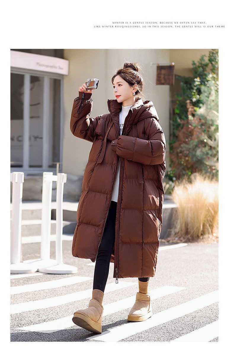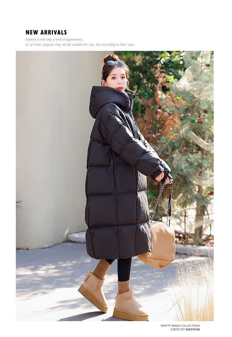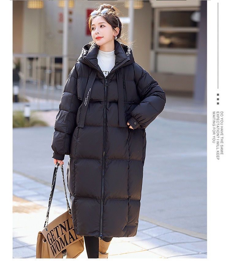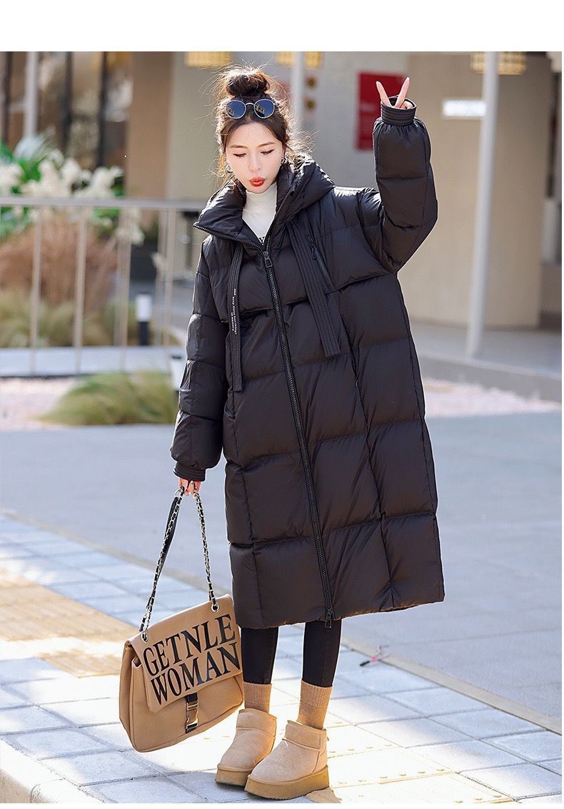 Зимняя куртка на хлопковой подкладке в корейском стиле, утолщенная куртка на хлопковой подкладке, свободная длинная куртка 2025 года, новый стиль, пуховая куртка с капюшоном выше колена