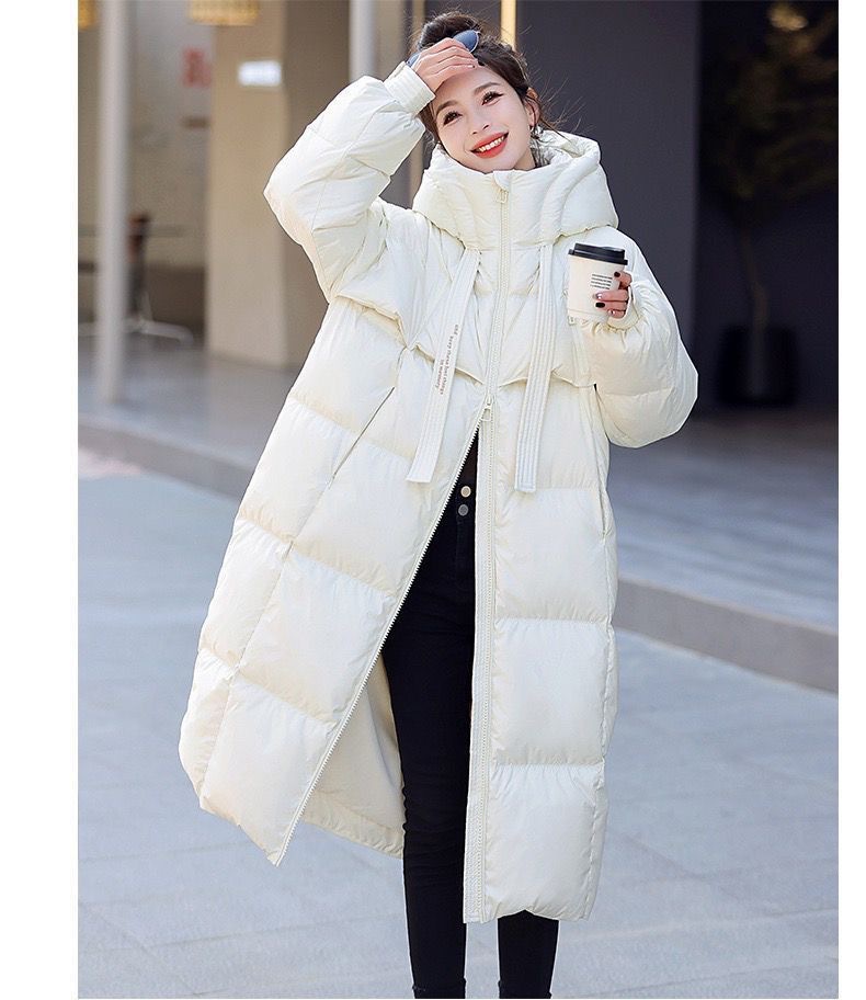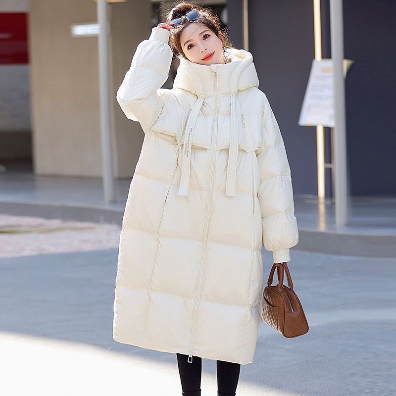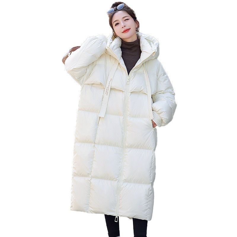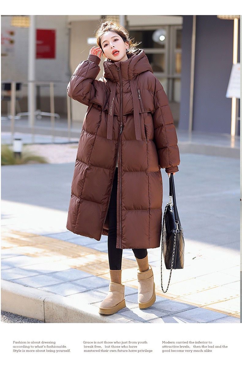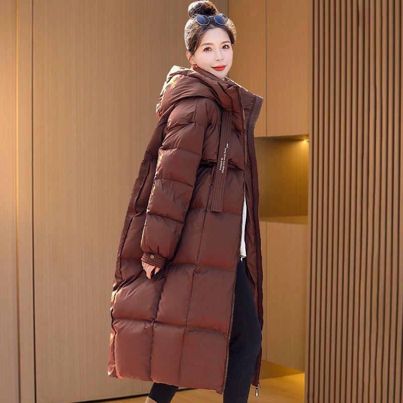 Зимняя куртка на хлопковой подкладке в корейском стиле, утолщенная куртка на хлопковой подкладке, свободная длинная куртка 2025 года, новый стиль, пуховая куртка с капюшоном выше колена