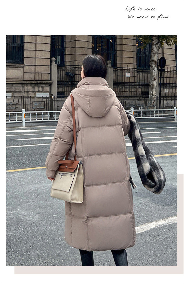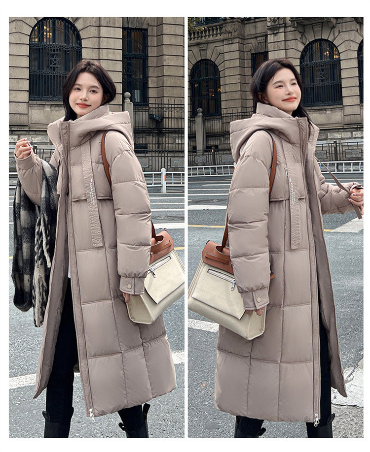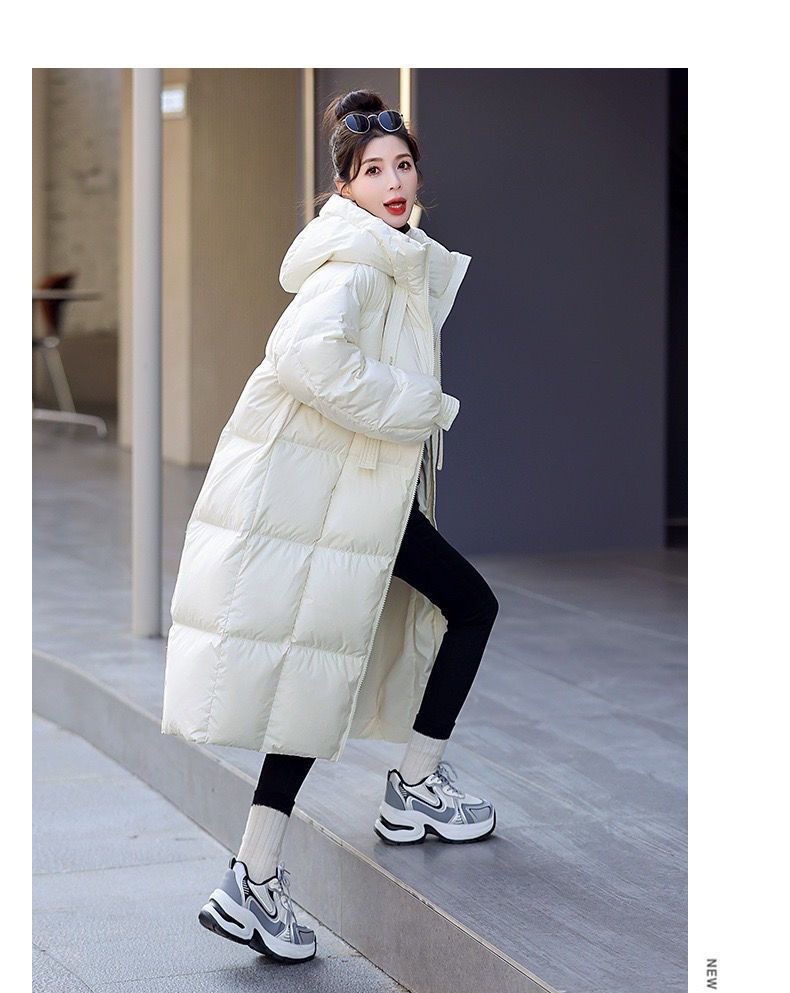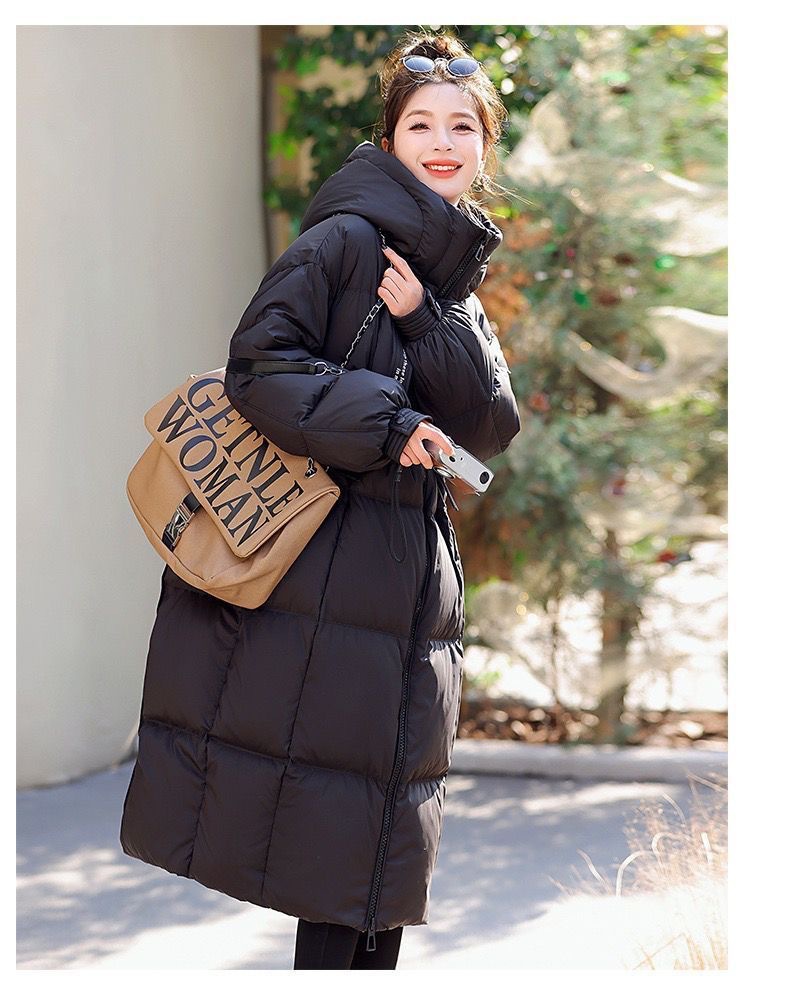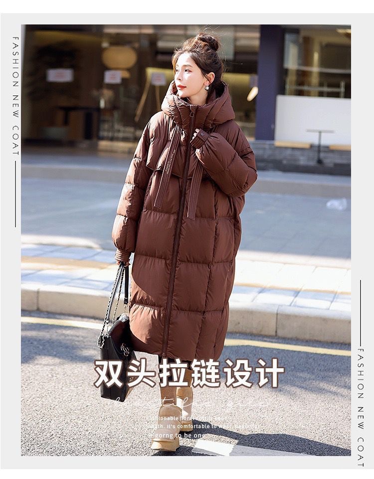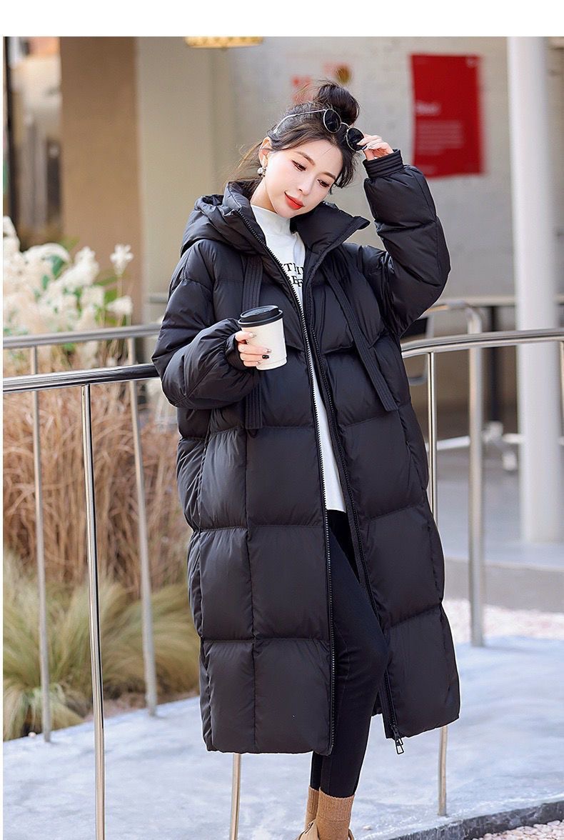 Зимняя куртка на хлопковой подкладке в корейском стиле, утолщенная куртка на хлопковой подкладке, свободная длинная куртка 2025 года, новый стиль, пуховая куртка с капюшоном выше колена
