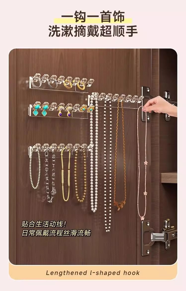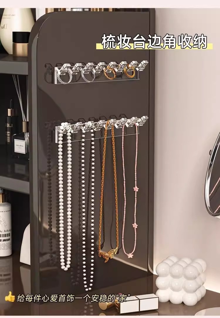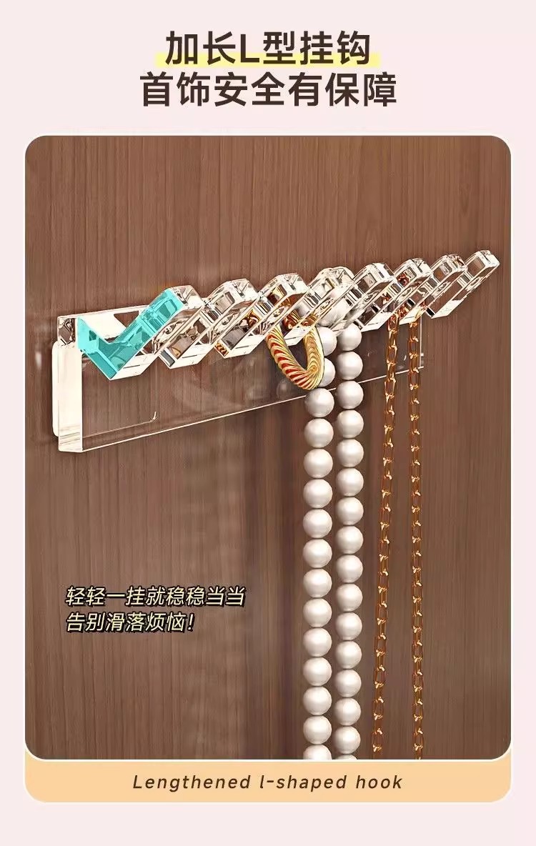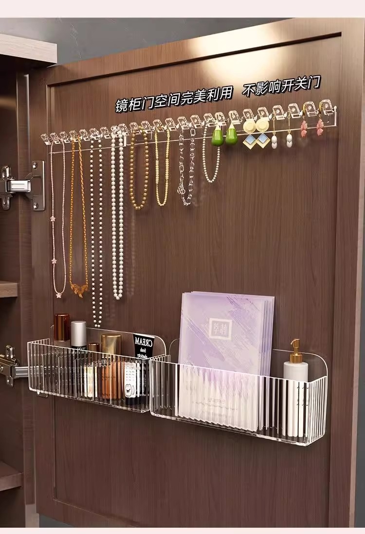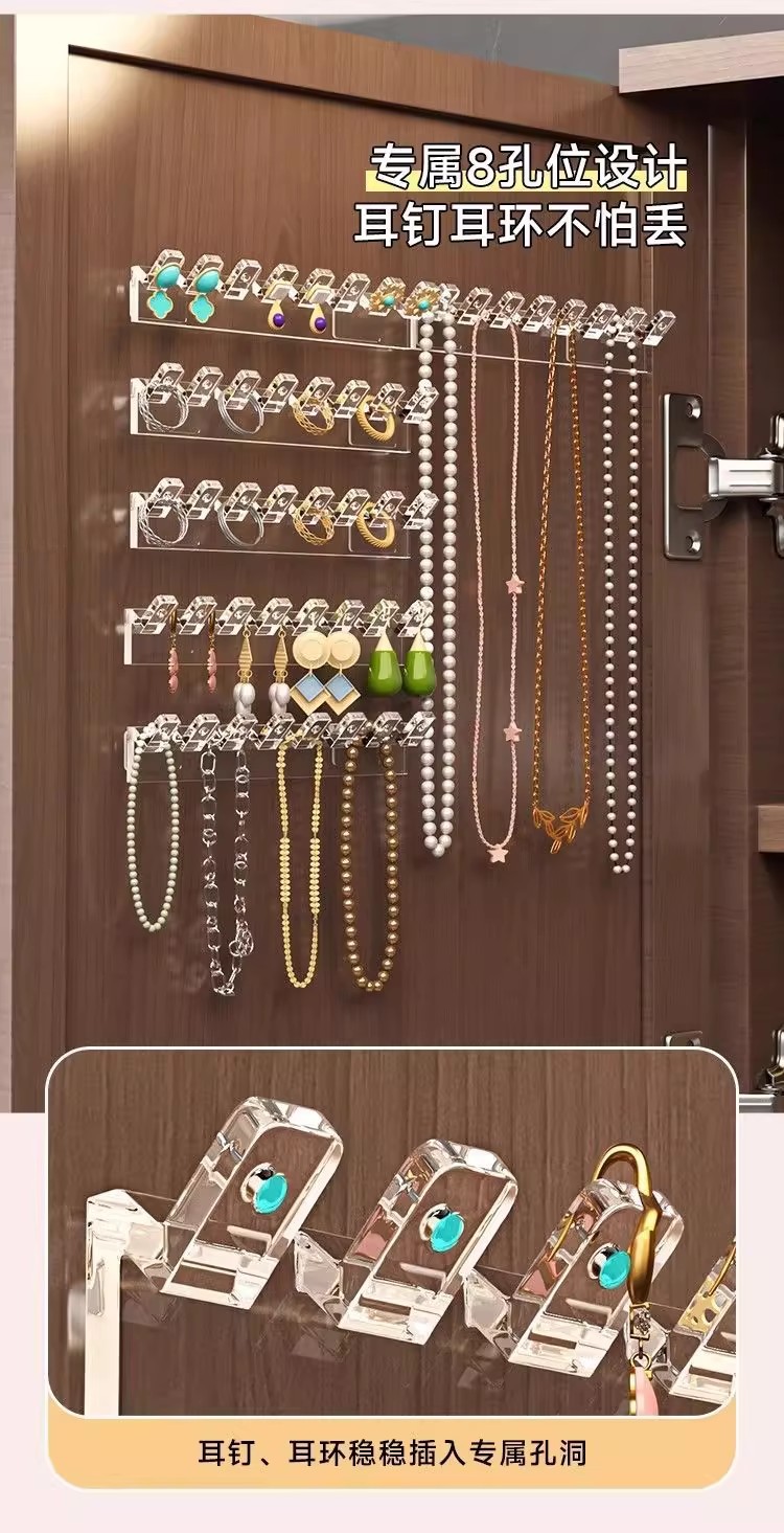 Настенная вешалка для ювелирных украшений с зеркальной дверцей в стиле лёгкой роскоши, для хранения ожерелий, браслетов и сережек