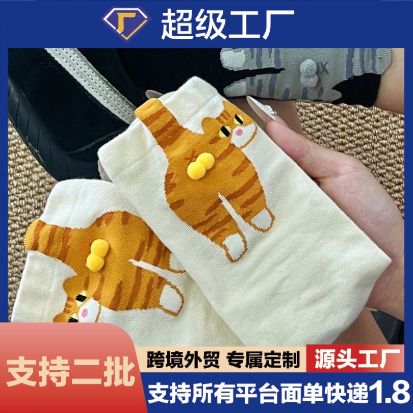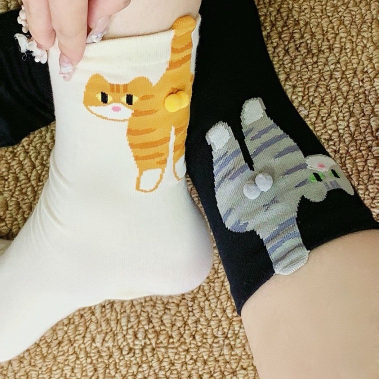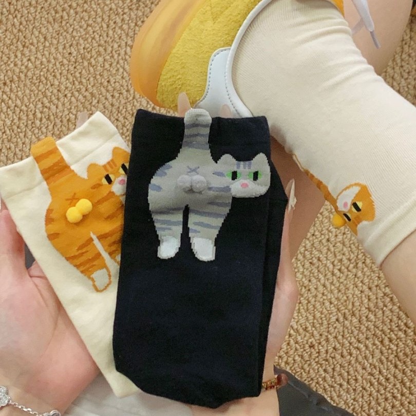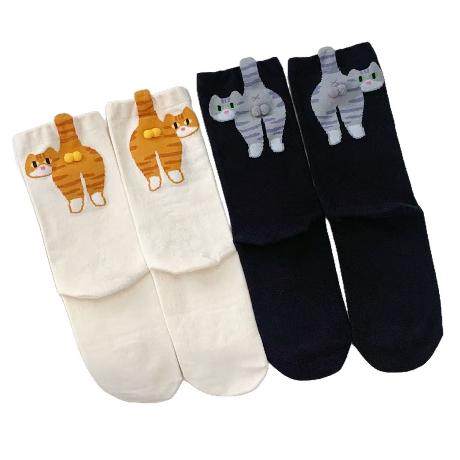 Новые осенние универсальные милые белые носки с рисунком кошачьего яйца для верхней одежды, забавные чулки в японском стиле
