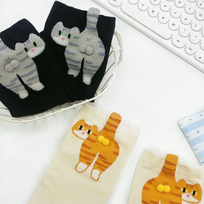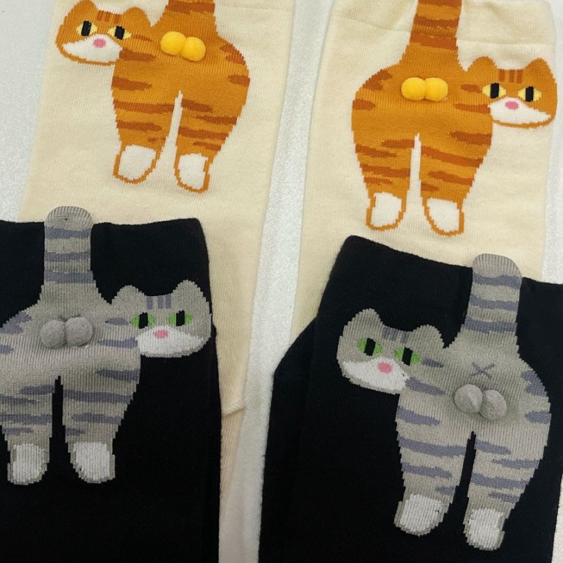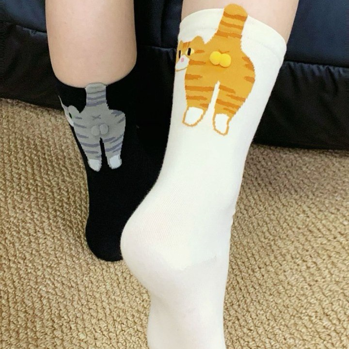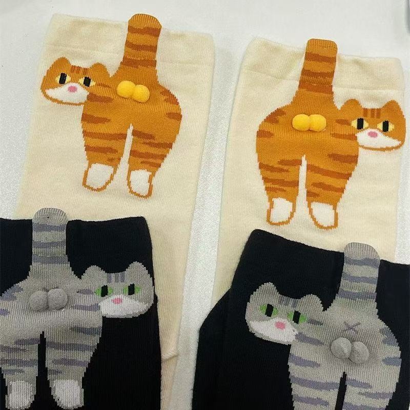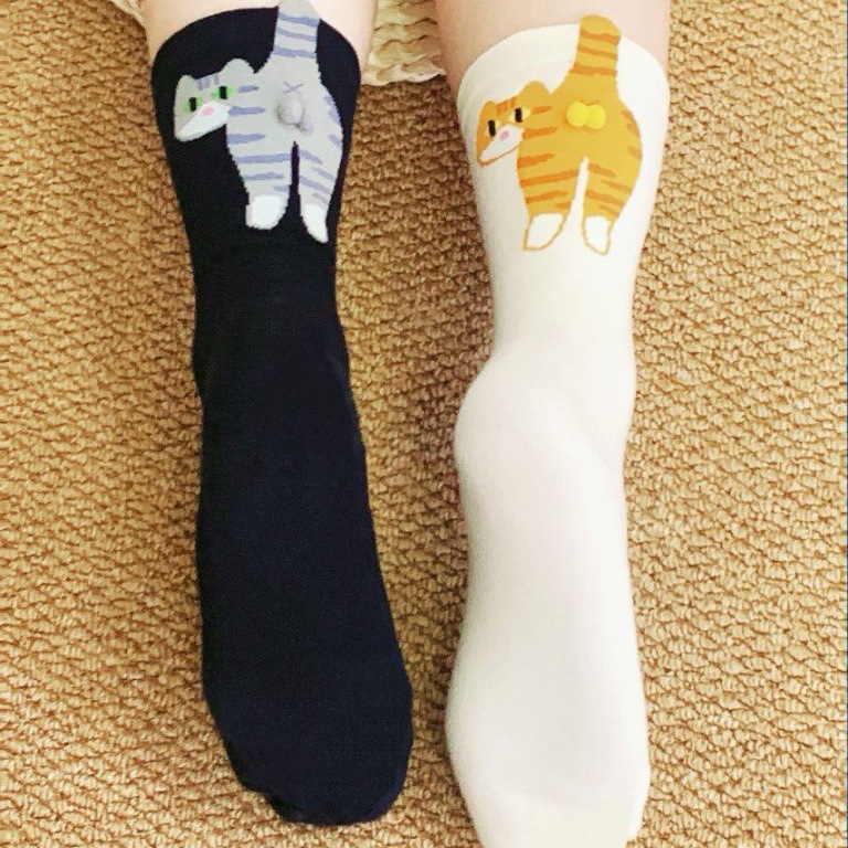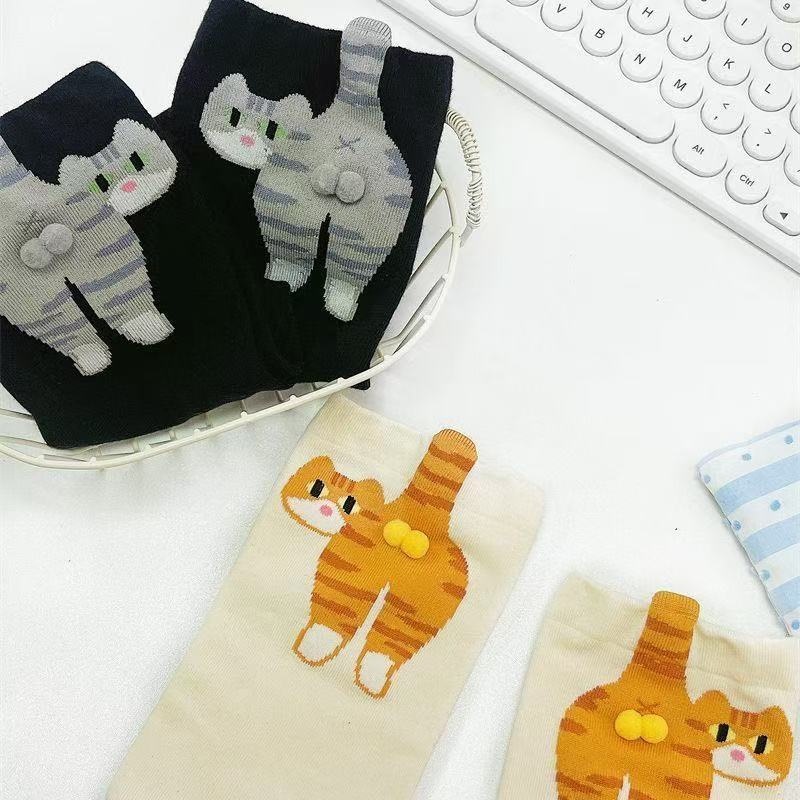 Новые осенние универсальные милые белые носки с рисунком кошачьего яйца для верхней одежды, забавные чулки в японском стиле