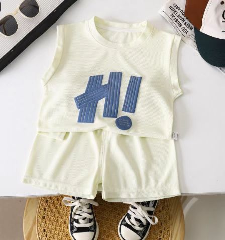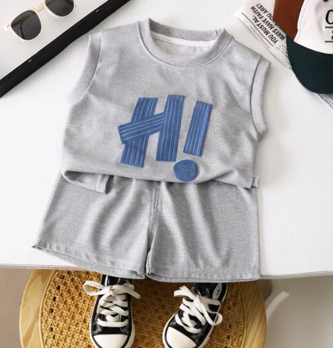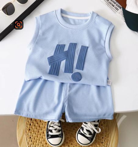 Новая детская одежда летние детские повседневные костюмы свободная одежда для мальчиков с коротким рукавом вафельная летняя оптом