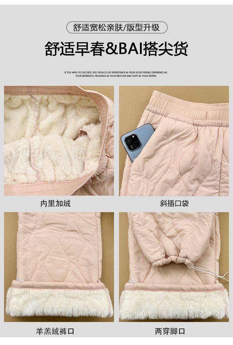 Женские брюки из шерсти ягненка и хлопка, осень-зима 2025, новый стиль, очень теплые флисовые брюки с плюшевыми манжетами, широкие штанины.