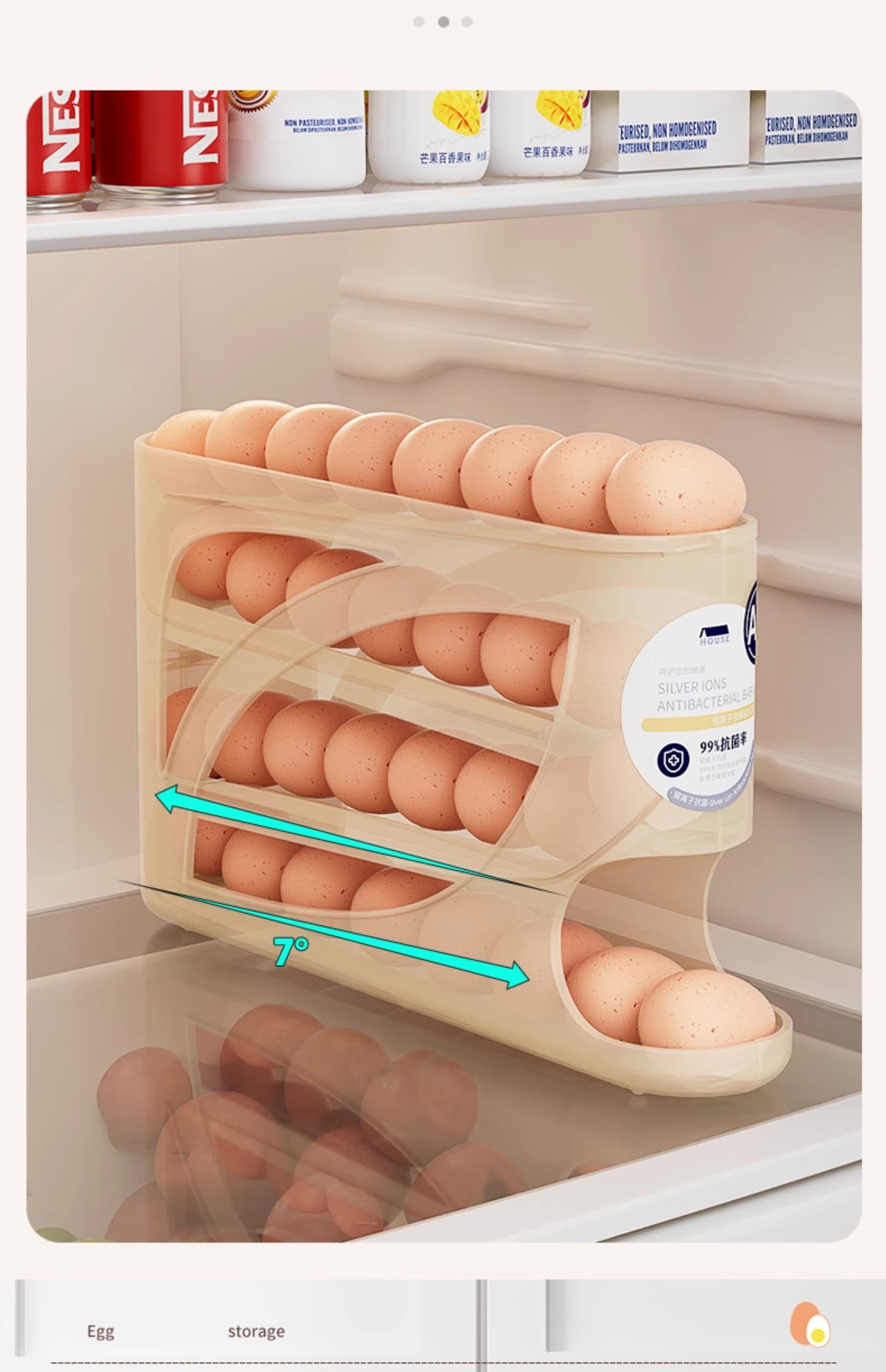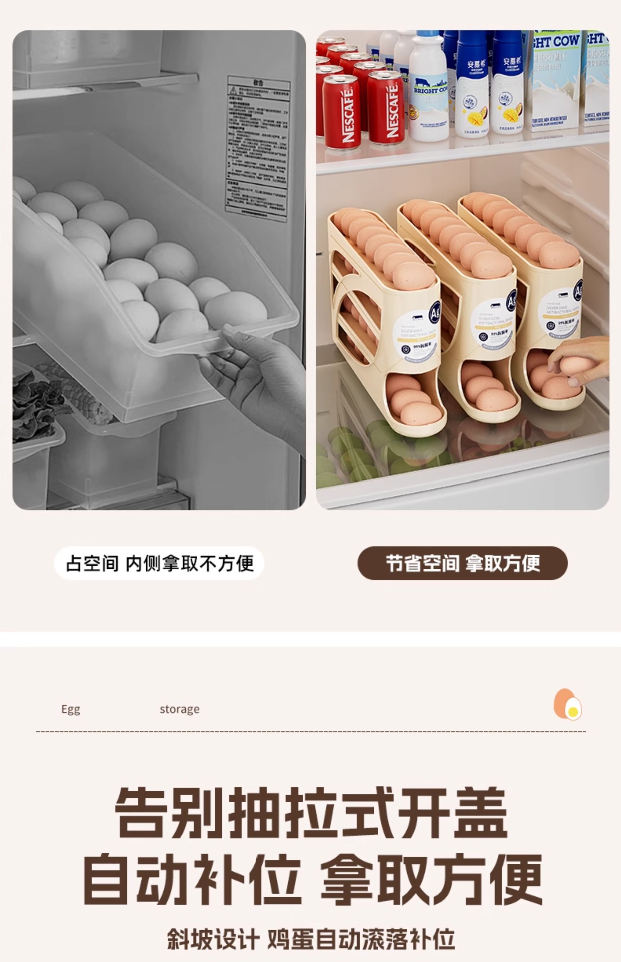 Коробка для хранения яиц на колесиках для холодильника, держатель для яиц на боковой двери, коробка для хранения пищевых продуктов.