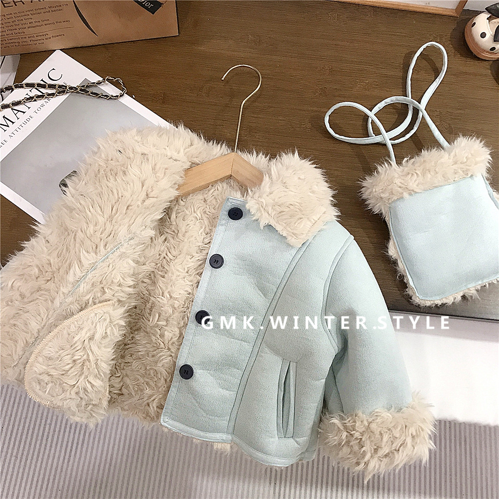 女童皮毛一体外套韩版儿童羊羔毛上衣秋冬季宝宝休闲保暖大衣外贸