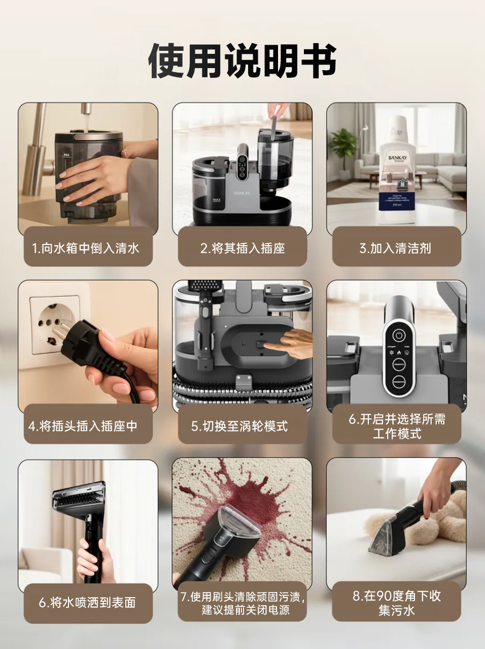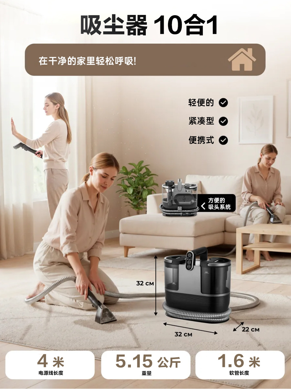 Трансграничная высокотемпературная паровая стерилизация, машина для чистки ткани, проводная, с большим всасыванием, многофункциональная машина для чистки ковров, штор, диванов