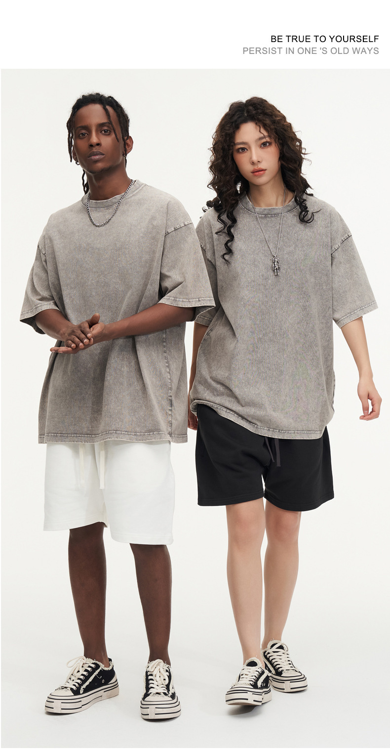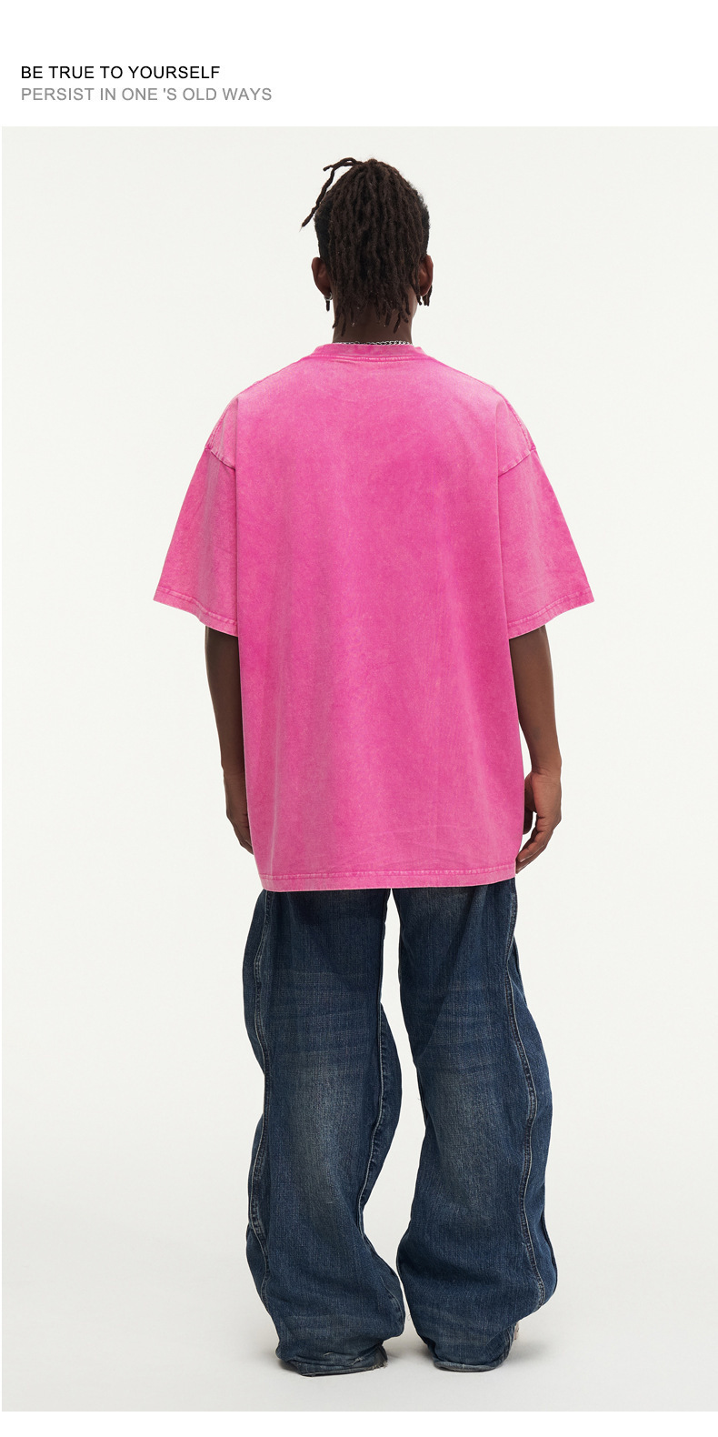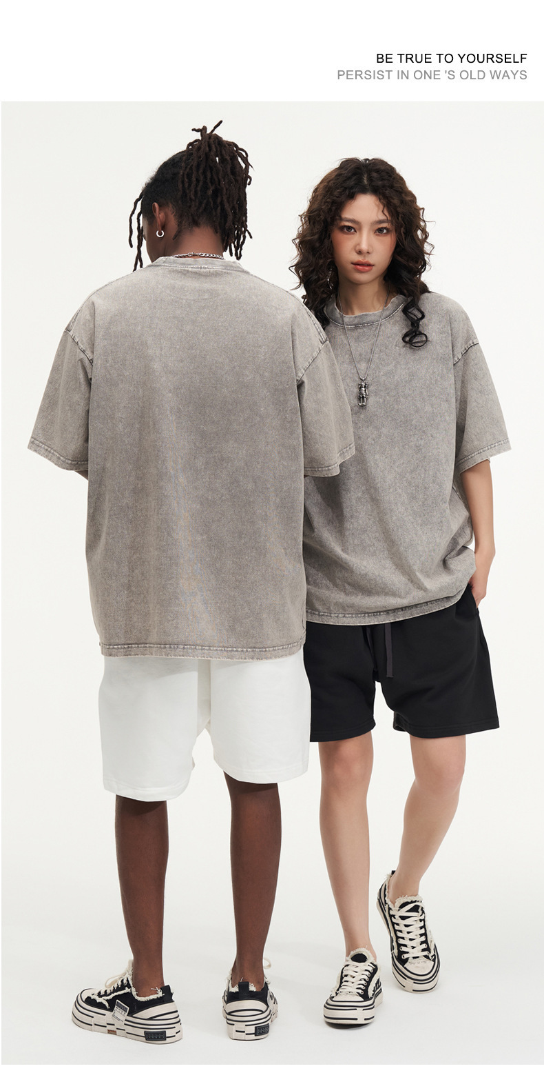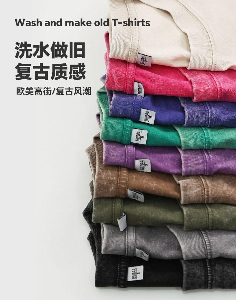 Футболка оверсайз в винтажном стиле, с эффектом потертости, с узором «снежинки», из чистого хлопка, для экспорта, европейско-американский стиль.