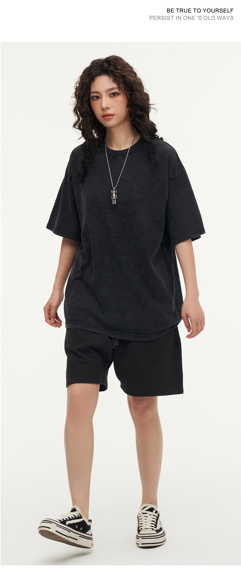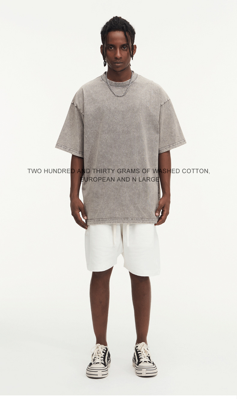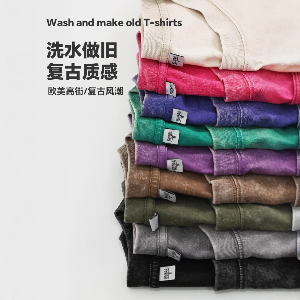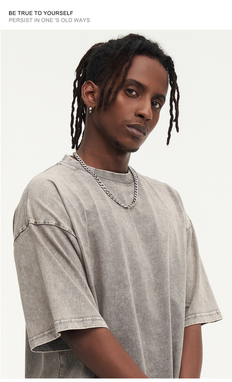 Футболка оверсайз в винтажном стиле, с эффектом потертости, с узором «снежинки», из чистого хлопка, для экспорта, европейско-американский стиль.