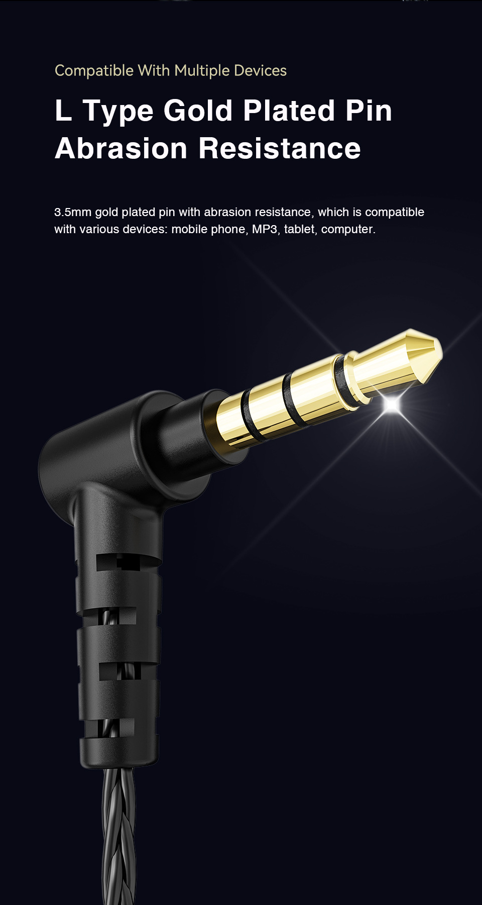 Головка для наушников, провод, 3 пары силиконовых накладок.