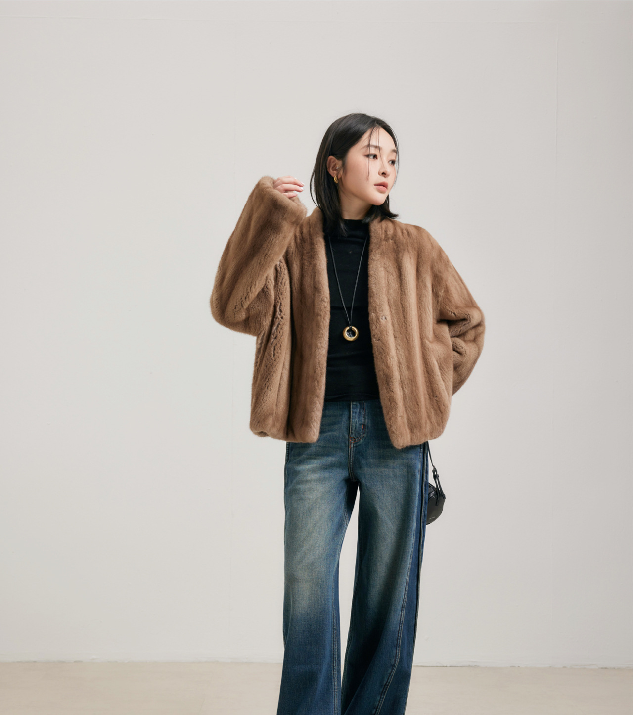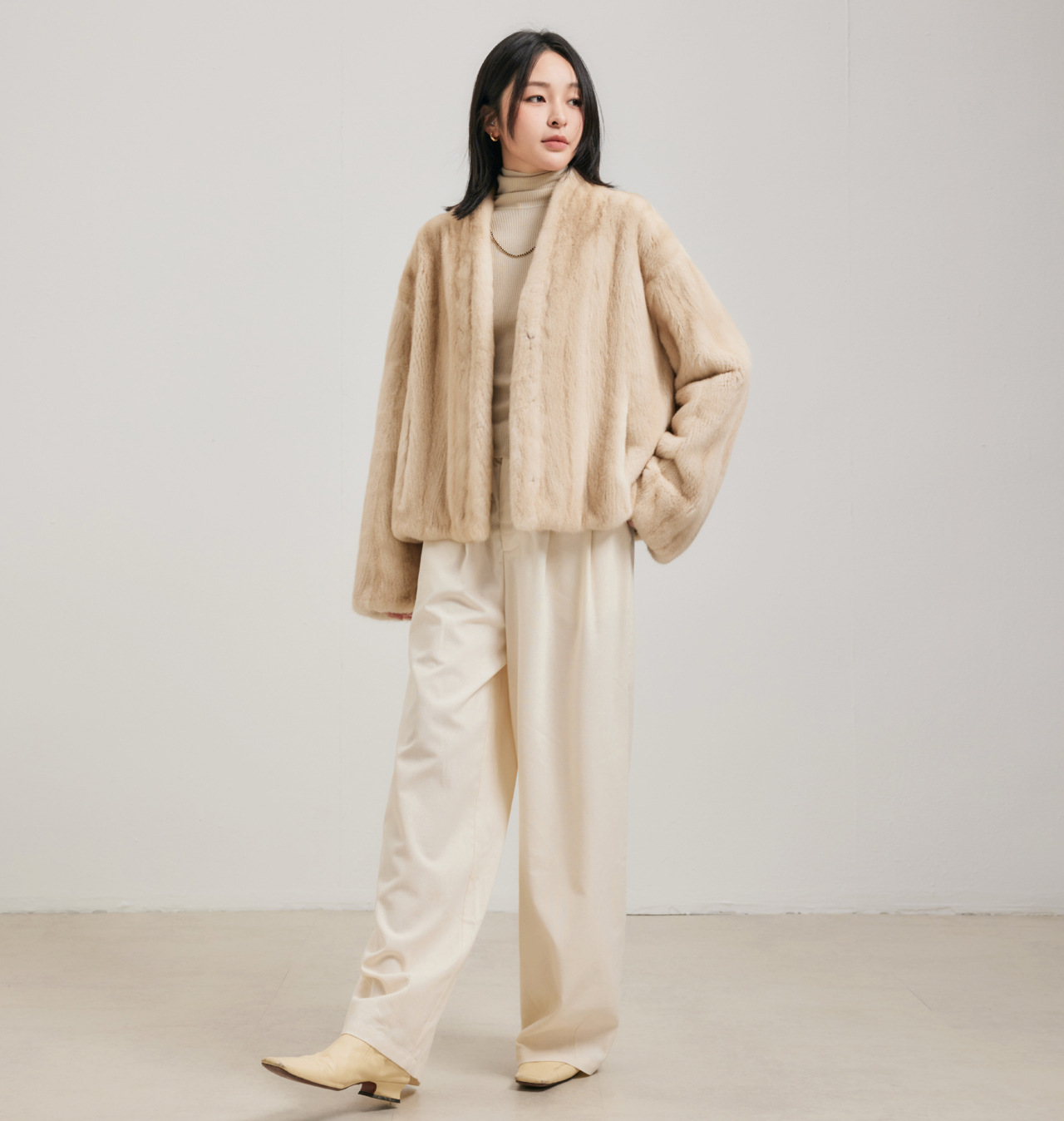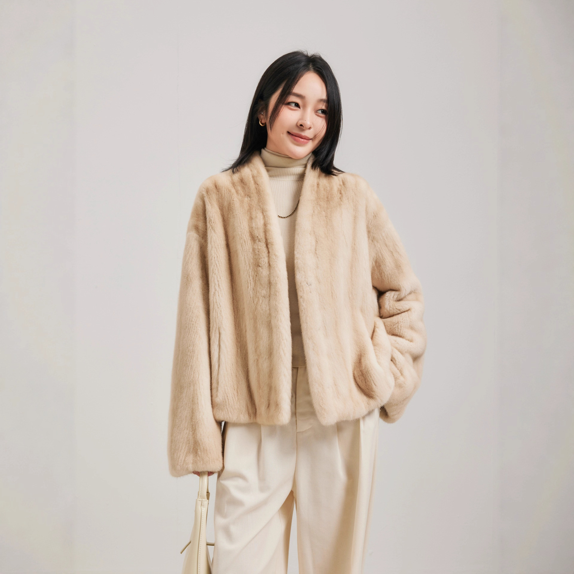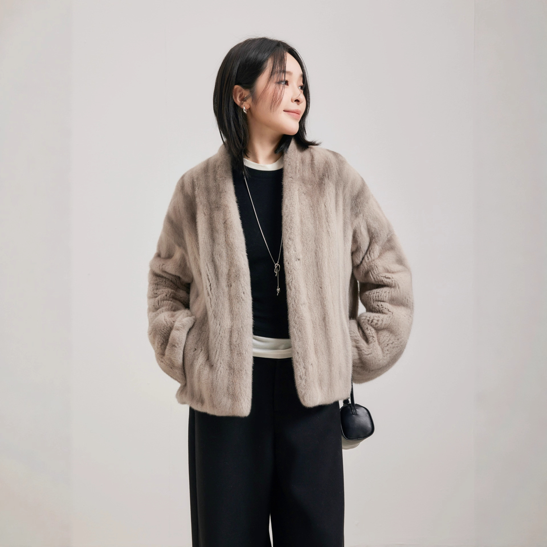 Baiyi Fuguang Sequel, импортное маленькое женское норковое пальто с V-образным вырезом, полностью покрытое мехом норки, цельная норковая куртка