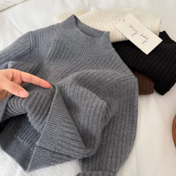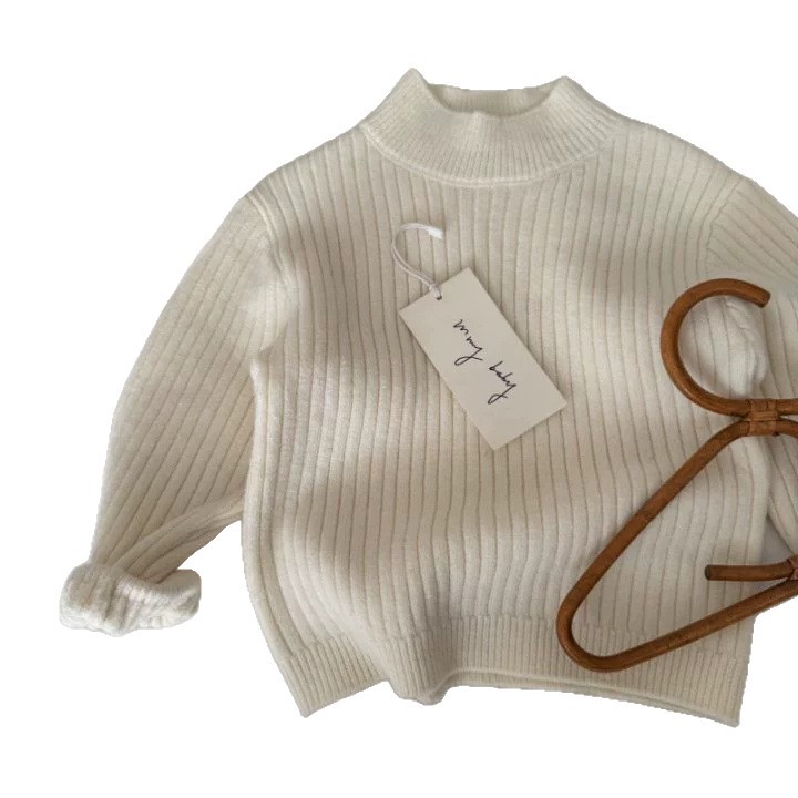 Детский толстый вязаный свитер, новинка зимы 2025, однотонный топ для малышей и детей младшего возраста, базовый свитер для девочек, теплый.