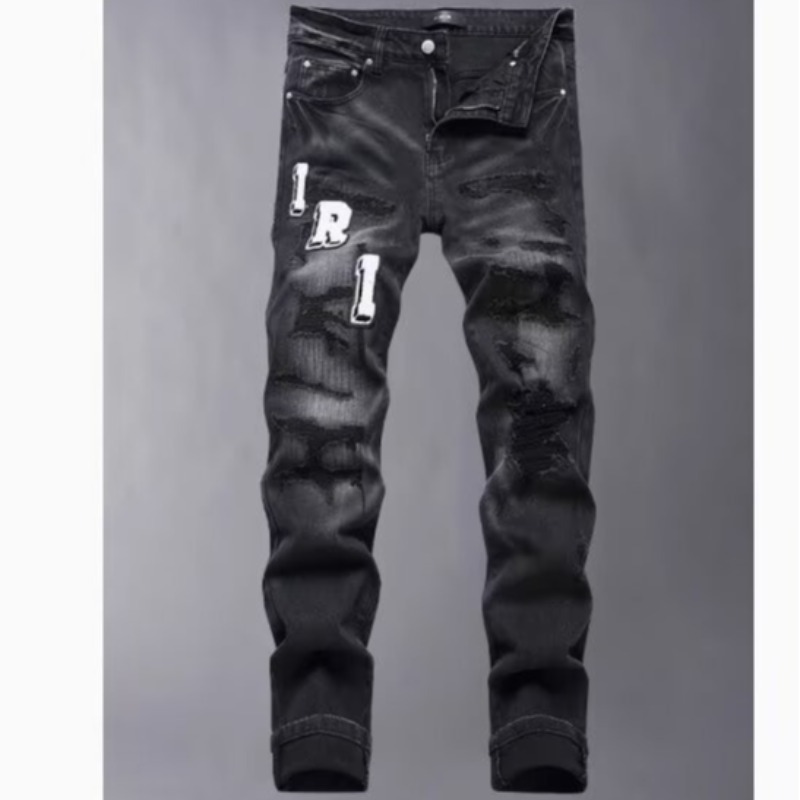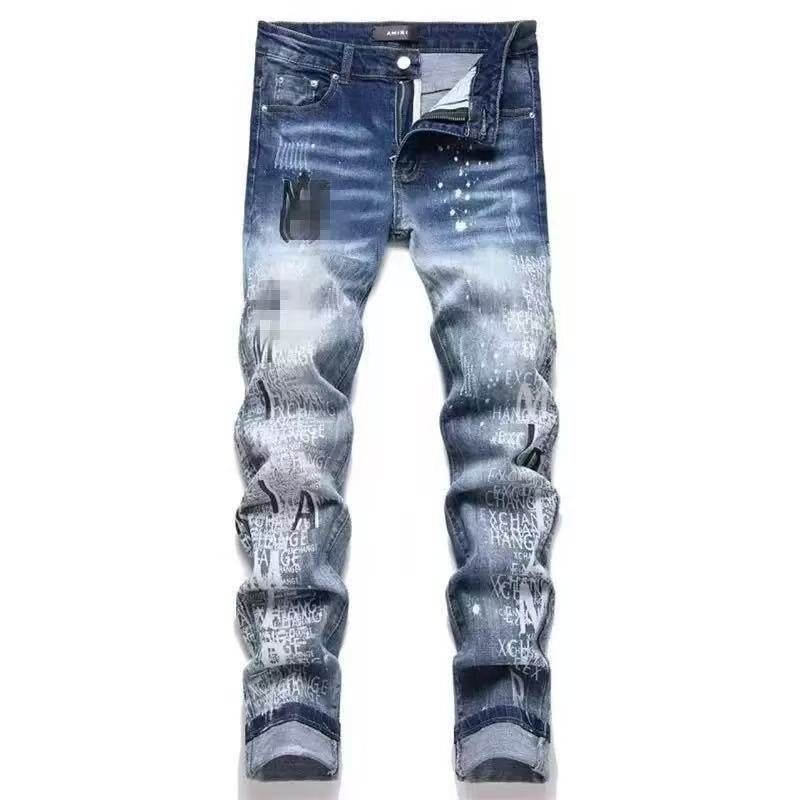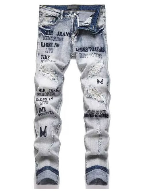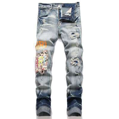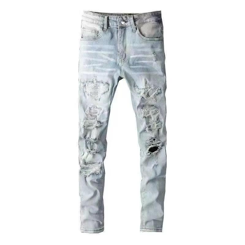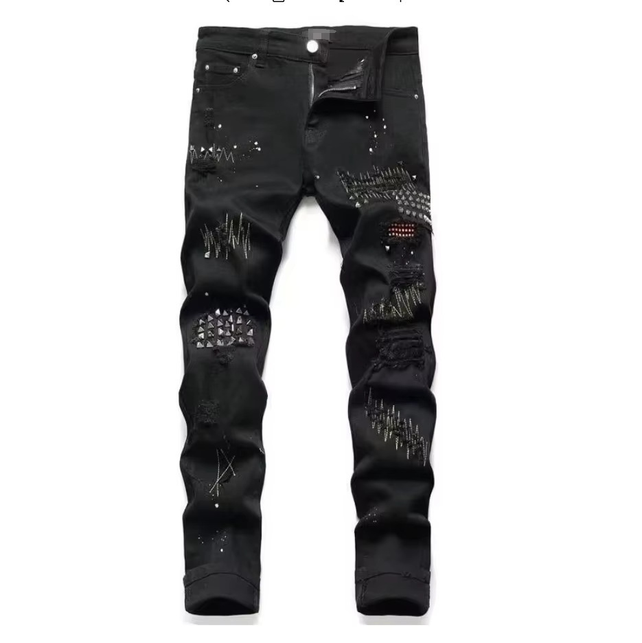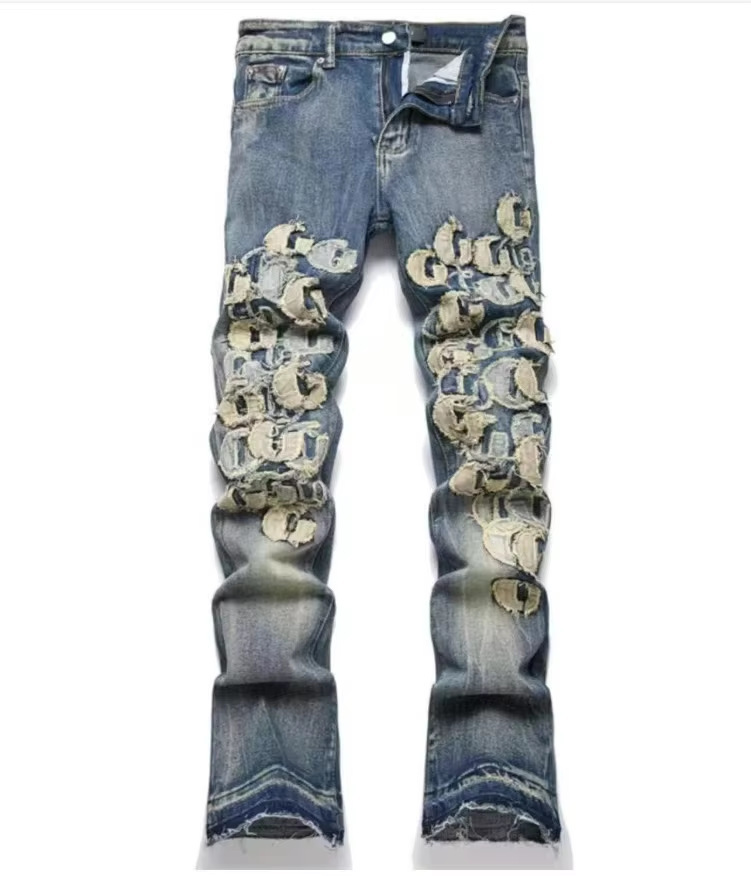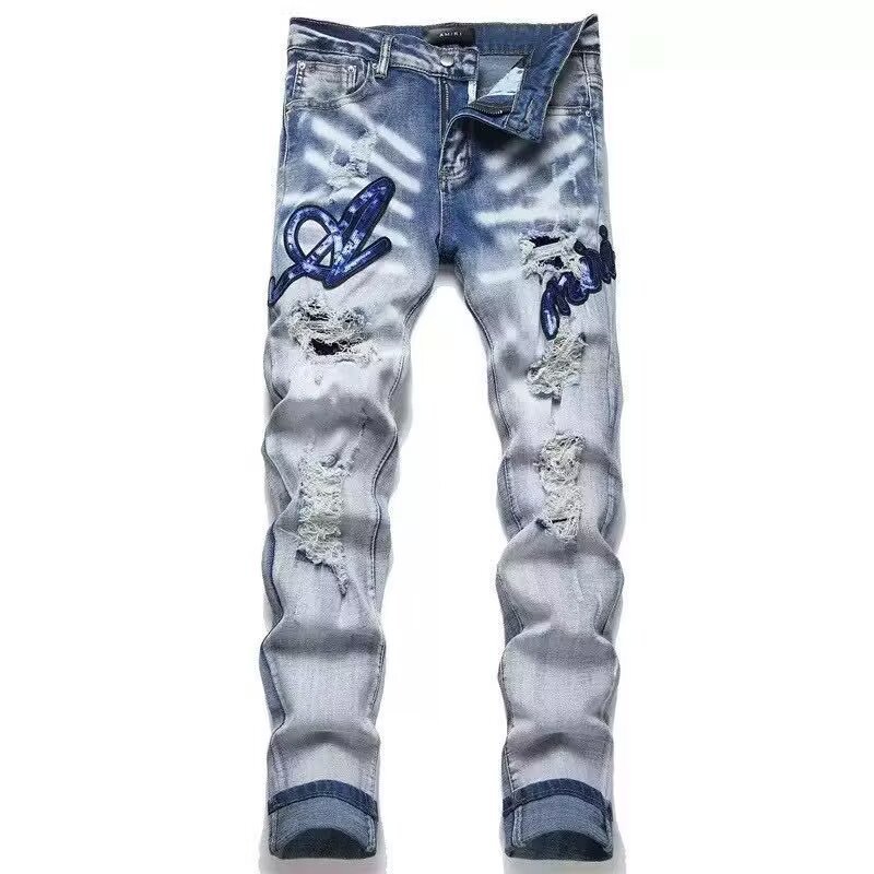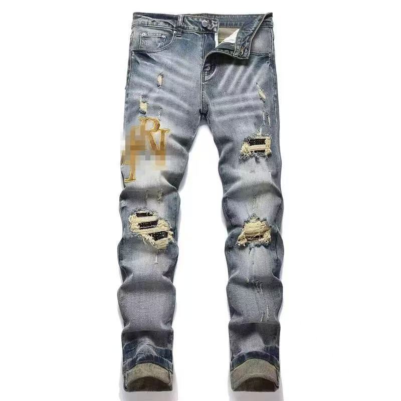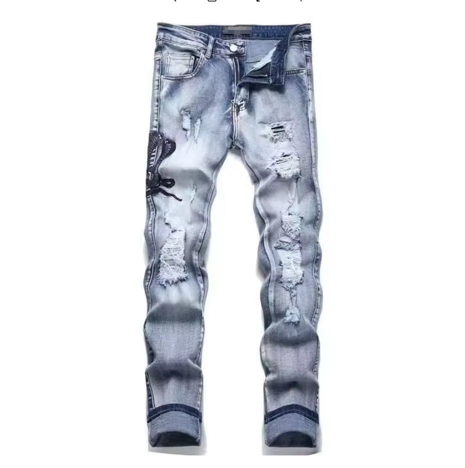Мужские джинсы-скинни в стиле пэчворк, модные, с характером, новый стиль, рваные, с вышивкой, прямые штанины
