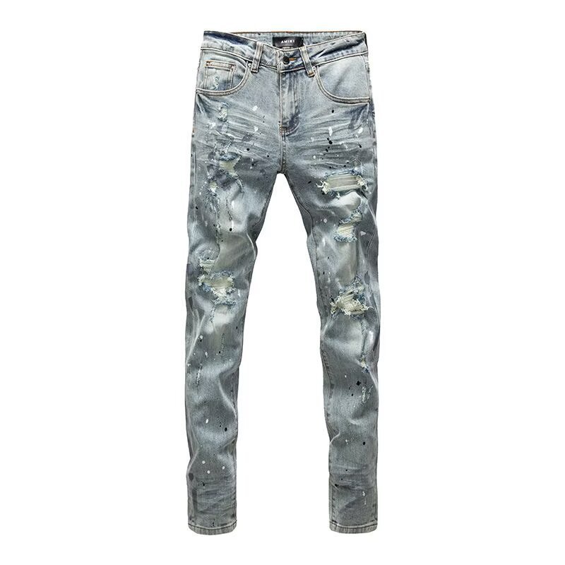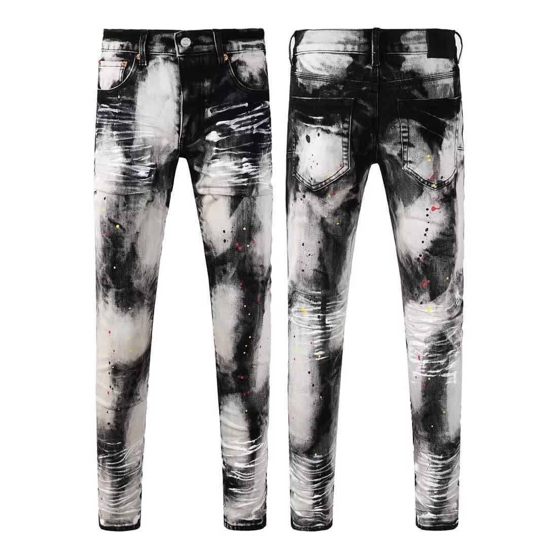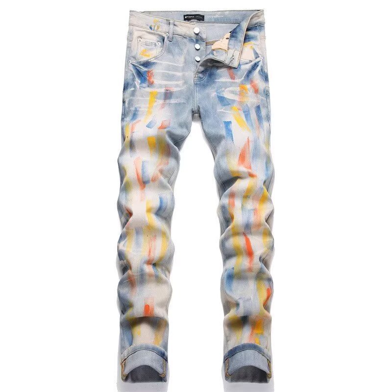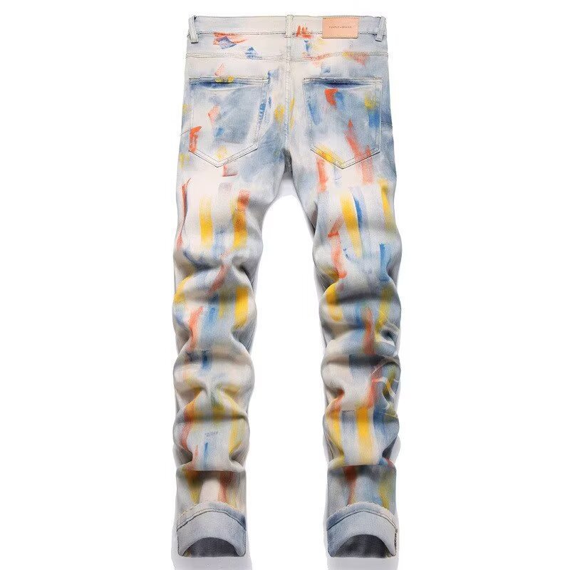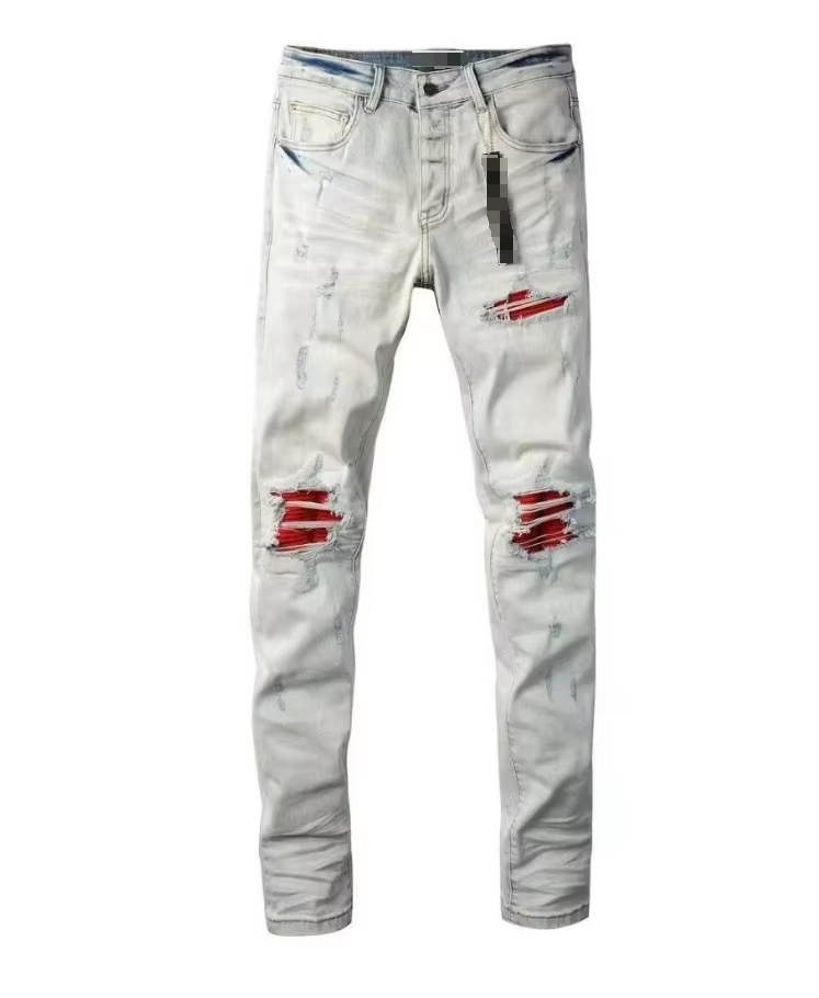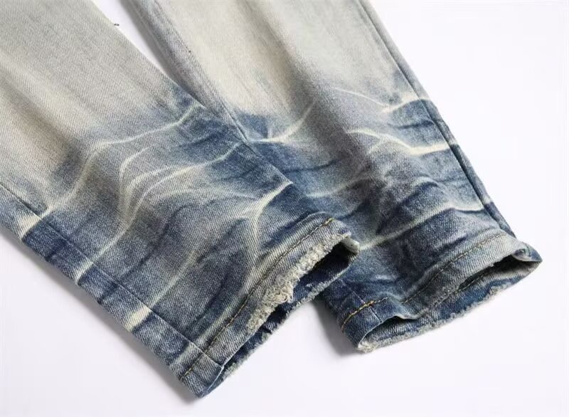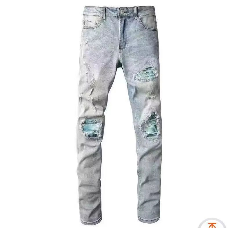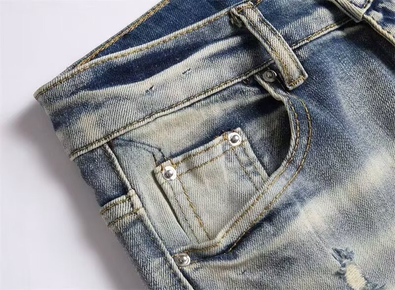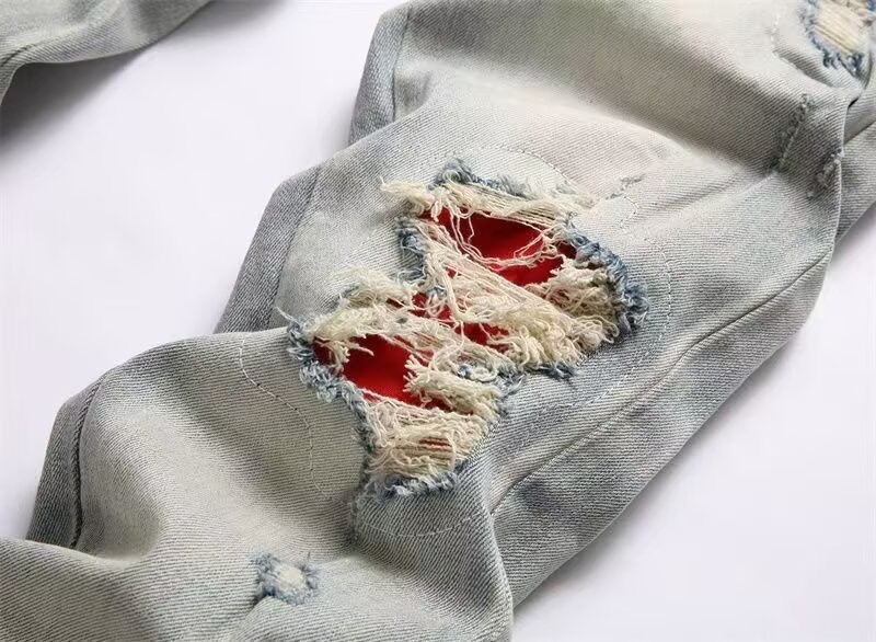 Мужские джинсы-скинни в стиле пэчворк, модные, с характером, новый стиль, рваные, с вышивкой, прямые штанины