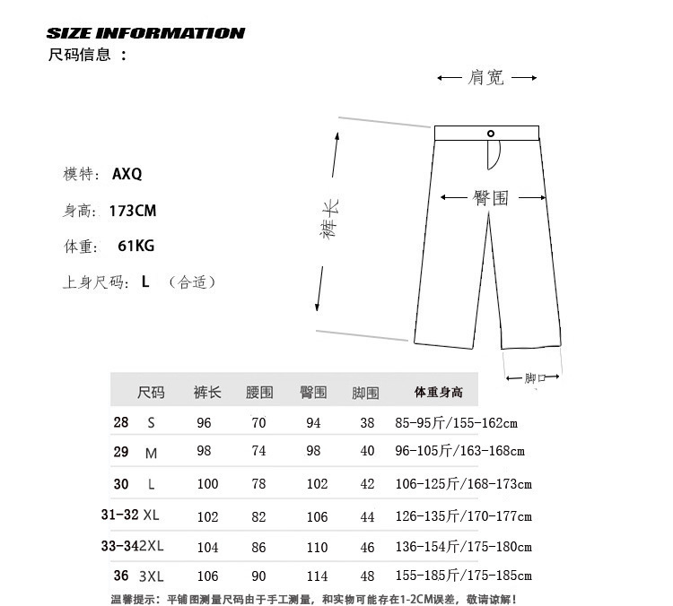 S(28); М(29); Л(30–31); XL(32–33); 2XL(34); 3XL(36)